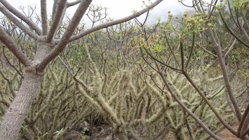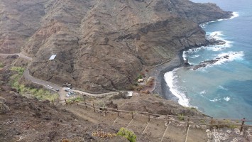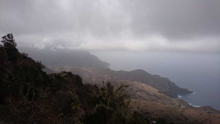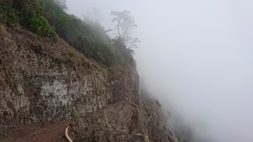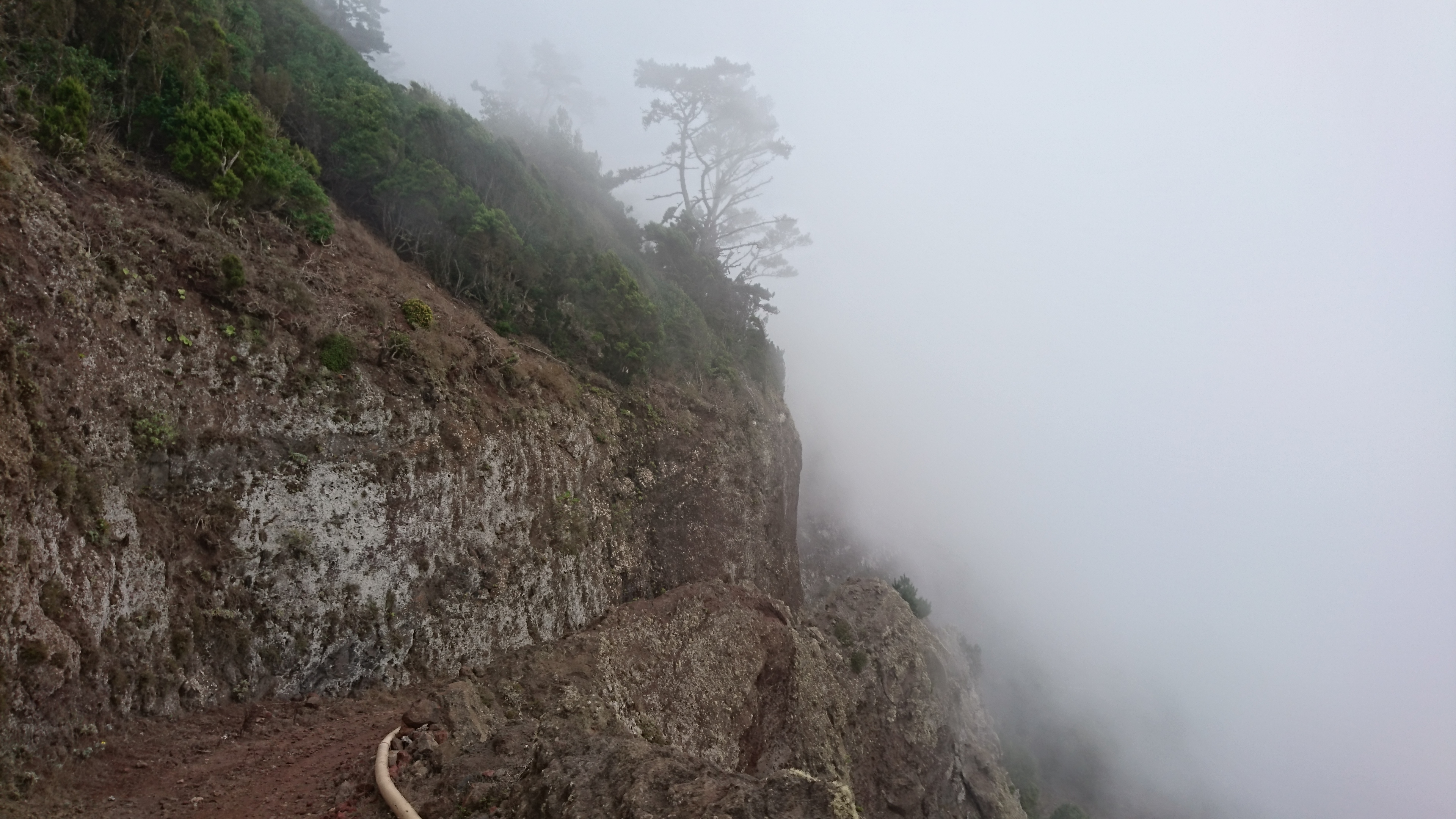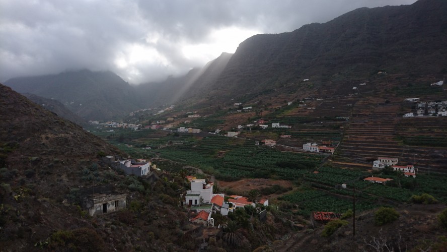 La Gomera macht Wetter in Mikrokosmen. Und das wird schnell klar. Die Hauptstadt liegt noch in der Wüste und es geht auf Hochebenen gesäumt mit Kakteen und Palmen. Überall rascheln Echsen. Der Weg ist ne Bombe. Hier wollte wer, dass gewandert wird. Let's GOmera wortspielt ein Slogan von 2004, den man hin und wieder liest. La Gomera als Hikerparadies. Ob das hier funktioniert hat? Bis Hermigua wandere ich gänzlich allein. Zwei überraschte Jogger kommen mir auf einem Abschnitt entgegen. Einer klatscht in die Hände. Hay es un hombre! Dabei hat schon die erste Etappe viel zu zeigen. Jede Kammüberquerung bedeutet einen Klimawechsel von Wüste zu Dschungel und umgekehrt. Es geht rauf bis auf 800 Meter. Auf den Lufseiten der Berge sammeln sich Wolkenschwaden, um leewärts sofort zu verdunsten. Die berühmten Wolkenfälle. Und ich mitten drin zwischen 0 und 100% Luftfeuchtigkeit. Herrlich. Puh, aber 28km rauf und runter sind zu viel. Es gibt keine Zwischenorte. Ich hab mit 2 Litern viel zu wenig Wasser für mich dabei und bekomme eine pulsierende Migräne. Aklimatisation und Wassermangel sind eine schlechte Kombination für den ersten Tag. Der halbe Weg führt entlang eines glucksenden Bewässerungsrohrs. Was für eine Folter! Jedes Ventil checke ich auf dem Weg, ob das Schloss der überdeckenden Metallkästen kaputt ist. Irgendwann dann ein Semierfolg. Notgedrungen fülle ich an einem Zulauf einer verfallenen Zisterne den Wasservorrat auf, zu der ich das Wasser tatsächlich umleiten konnte. Glück gehabt. Das hätte anders laufen können. Bis Hermigua brauche ich weitere 3 Liter. Gegen Abend steigen die Wolken bis in die Täler hinab und machen alles wieder schön, bis ich gegen 19 Uhr im zersiedelten Hermigua ankomme. Bananenplantagen und versprengte Häuser aus dem 19. Jhd. Ein paar Wohnklötzchen, ein ausgetrocknetes Flussbett. Tourismus kommt hier nur mit Mietwagen zum Hi sagen vorbei. Ich wohne in einem Privathaus in der Form eines Bentonpfostens zwischen zwei Häuser geklemmt, in einer doppelstöckigen Wohnung. 3m breit vielleicht. 10m lang. Eine Tür im Obergeschoss führt auf den nicht existierenden Balkon. Tjo, solange ists halt ein bodentiefes Fenster. Der Besitzer über mir singt seinen beiden Hunden Bob Marley vor. Kein Internet. Im Fernseher läuft nur Spanisch. Hmpf. Es ist zu früh zum Schlafen, obwohl ich hundemüde bin. Disney Channel. Dem kann ich mit meinem A2-Spanisch folgen. Vor allem, weil das Gezeigte simpel genug ist. Na mal sehen, was ich seit Disney Club auf RTL 1993 verpasst hab... Pato Aventuras. In aufgestyled. Tick Trick und Track haben jetzt Smartphones... und gendergerecht eine Schwester. Dann flimmert die gleiche reizüberflutende Scheiße an Werbung über den Bildschirm wie früher. Geox Schuhe mit LED-Laufbändern an den Versen, auf die man per Handyapp Lauftexte programmieren kann. Nintendo Switch Mario Cart 8 Deluxe Brottaschen für die Schule, damit man das Brot nicht anfassen muss. Dann eine Animeserie. Ein Schulmädchen, das sich in einen Marienkäfer verwandeln kann, um dann wie bei Street Fighter mit extra animierten Blödsinnswaffen gegen den bösen Schmetterlingsmanipulatormann in einem strikt vorgegebenen Erfolgsritus kämpfen zu können. Dabei hilft ein Jüngling im Katzenkostüm, den sie ewig aufs Neue vergeblich umschwärmt. Die wahre Identität bleibt verborgen. Drei Folgen später ist das Konzept durchschaut und ich bin reizagressiv. In 6 Monaten bekommen wir ein Kind. Wie schaffe ich es, dass es selbst erkennt, dass das überdrehte Kacke ist? Rumgrübelnd überkommt mich ein stechender Hunger. Es domingo. Der Spar hat zu. Quer durch den Bananendschungel ist laut Navi ein Restaurant. Also hin. Eine Deutsche. Vor 20 Jahren ausgewandert. Sie führt das Restaurant und serviert ein superleckeres Tunfischsteak auf der Dachterasse mit Blick aufs Meer durch salzverklebte Windschutzscheiben. Die Meeresbrandung ist enorm und hüllt das schmale Kerbtal in ein stetiges Donnern und Grummeln. Ein paar Surver surven. Unten bei der alten Fischfabrik. Ein paar Einheimische und einige einheimisch gewordene Deutsche essen bei LED Schein, das aus einem Gepflecht in alten Weinflaschen strahlt. Im Restaurant El Piloto nebenan unterhalten sich ein paar Männer in stakkatohaftem Spanisch vor laufendem Fernseher lautstark über Alltägliches. Es wirkt etwas komisch. Irgendwie seperiert. Hier ist gedämpfte Stimmung. Ist das der Traum vom Aussteigen? Hier?...