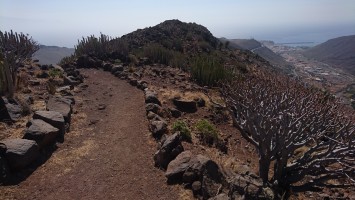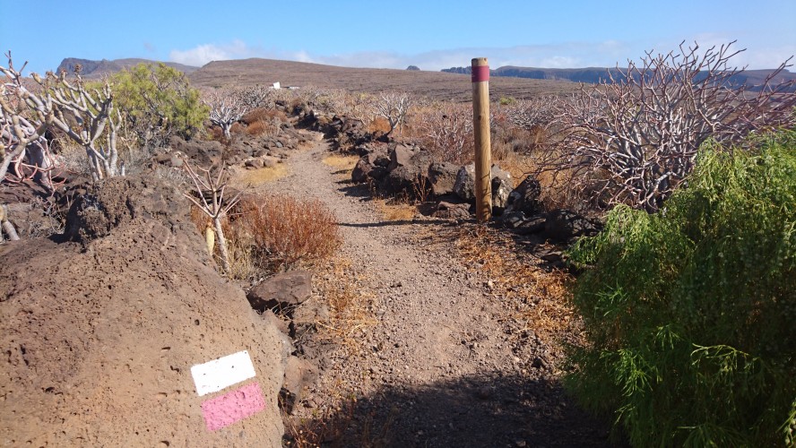 La Gomera bekommt keinen internationalen Flughafen. Das ist gut. Und der wachsende Kreuzfahrttourismus macht es noch unwahrscheinlicher. Das ist schlecht. Kreuzfahrttouristen sind unbeliebte Gäste und bringen, wie in Nuuk, der örtlichen Wirtschaft herzlich wenig. San Sebastián ist ein schnuckeliges Inselhauptstädtchen. Macht was her. Kein Vergleich zu Los Cristianos. Und erst recht kein Vergleich zu kretischen Städtchen. Hier lässt sichs leben. Unweit vom Hafen prangt auch eine uv-gegerbte Infotafel für Besucher wie mich: Der GR132. Mein Zu Hause für die nächsten zwei Wochen. Estás aqui. Und da gehts lang. Rauf in den Norden bis ins 28km entfernte Hermigua. 22 Grad. Sonne. Sonnencreme LF 50. Wichtig. 10 Std. brauche ich sicherlich. Und los.