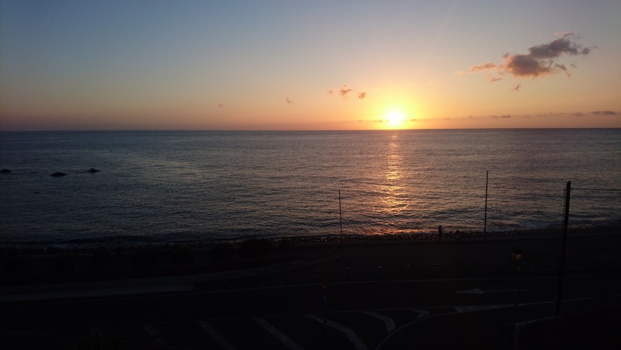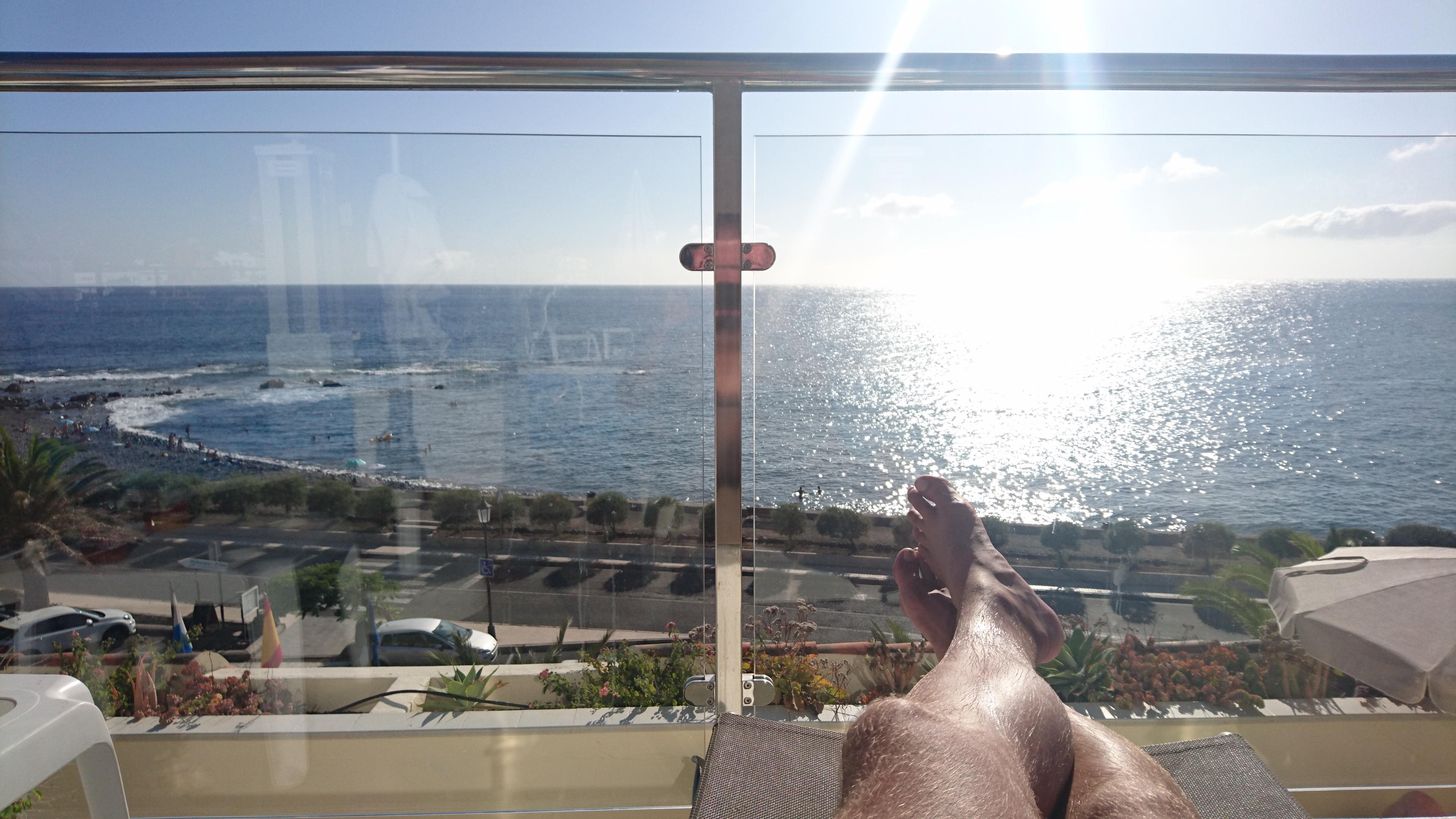 Im örtlichen Supermarkt hab ich mir Brötchen, Käse und Sangria gekauft. Buah, den sollte man nicht zum Durst löschen trinken. Egal, ich kann noch alle Tasten sehen. Sogar die leicht versetzten Backuptasten, falls man sie verfehlt. Und so liege ich meines Erachtens wohlverdient nach bislang 70km Weg und 5000 Höhenmetern auf dem Sonnendeck und damit im Solarium, hab Radar und schreibe meinen heutigen Text, bis die Sekunden ins blaue Meer fliegen und die Sonne mitsich nehmen.