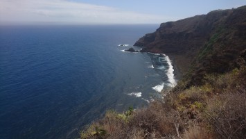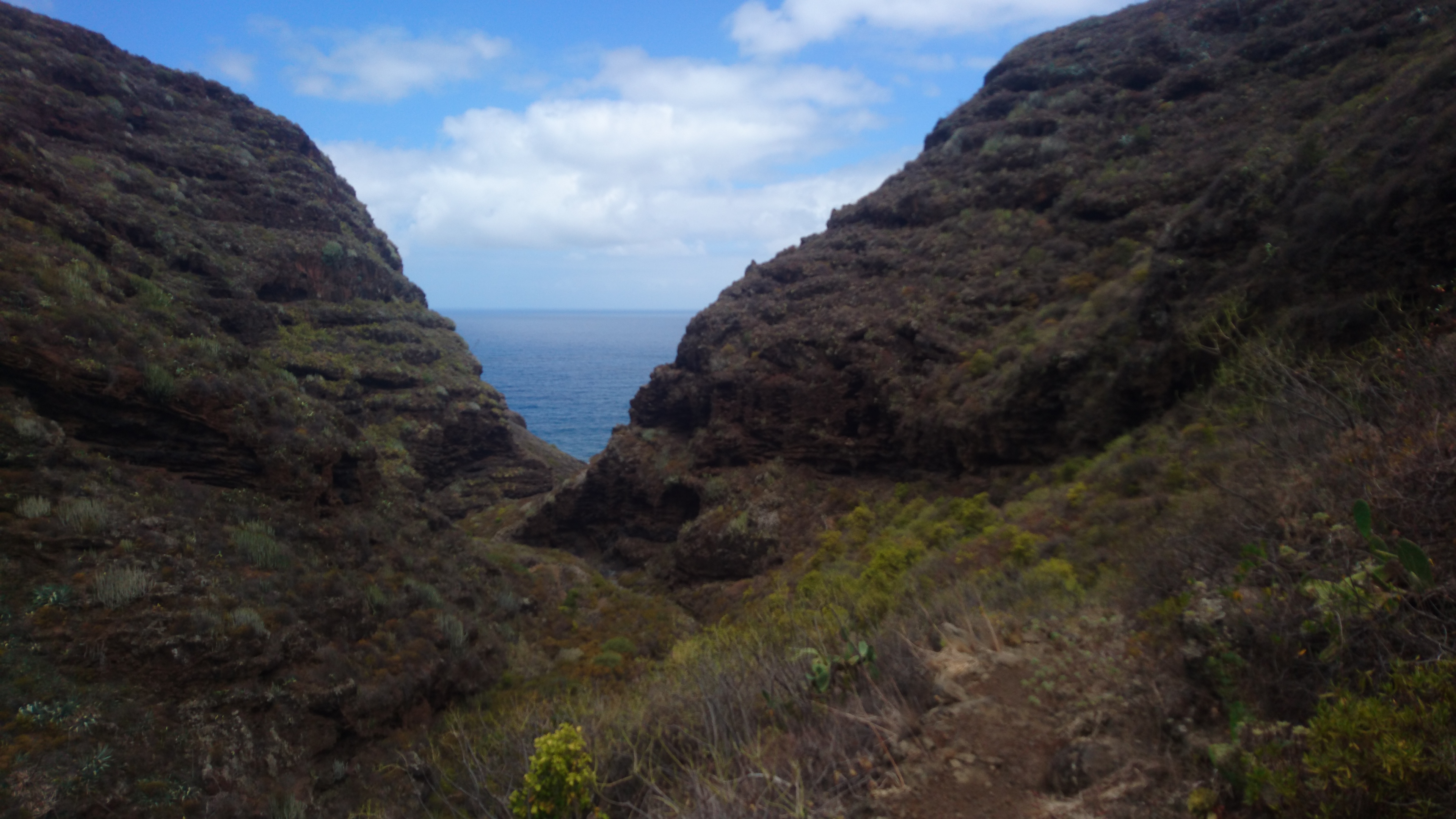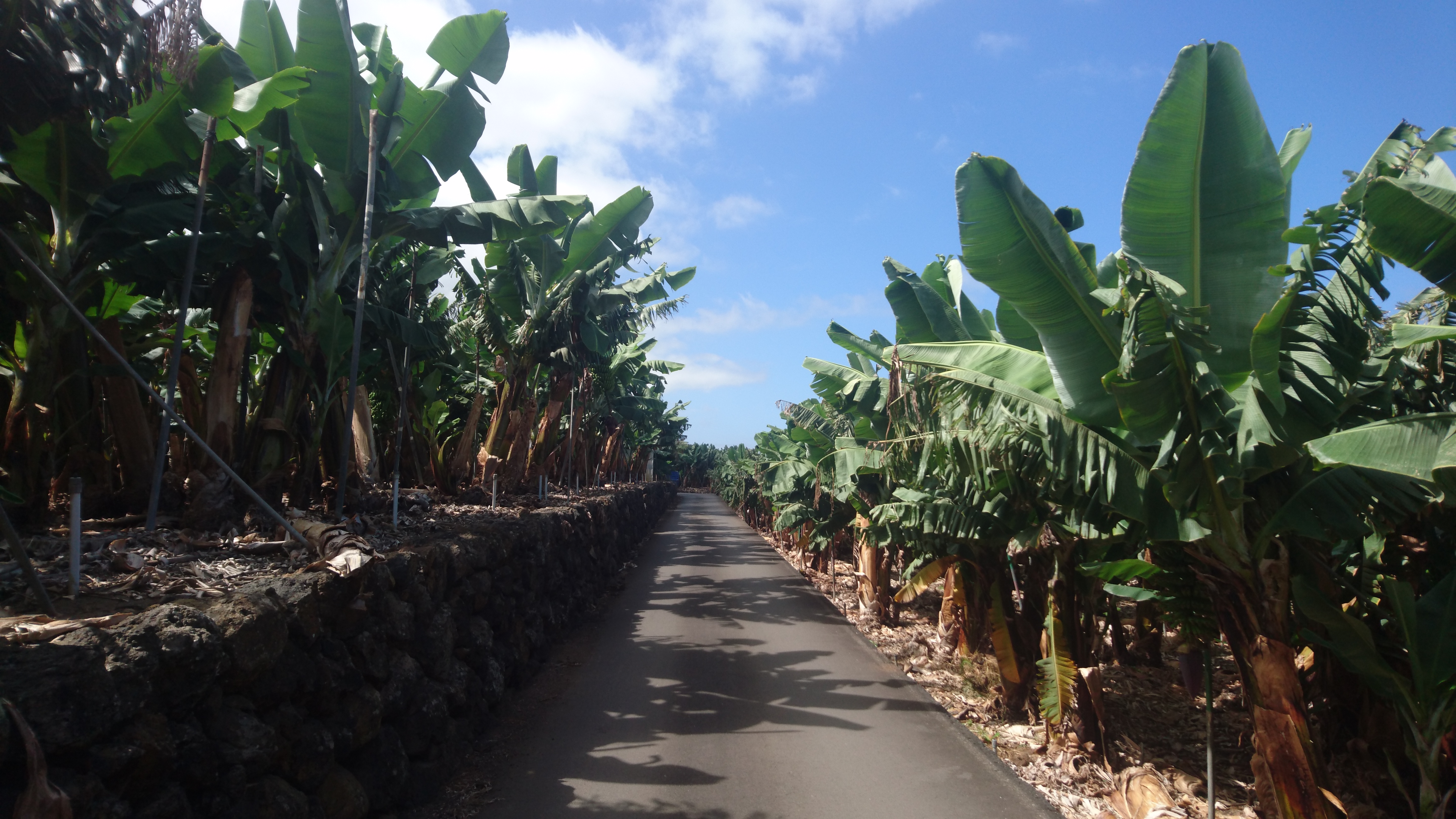 Die zweite Hälfte wird eh noch anstrengend genug und hier folge ich auch brav dem Weg. Er geht wunderschön an der Steilküste entlang und durch viele Bananenplantagen. Überall riecht es nach Fenchel. Hier wächst ein ganzes Frischhalteregal von Sachen... Mangos, Äpfel, Zitronen, Salatköpfe, Tomaten, überall Bewässerugsanlagen, die das Wasser von den Bergen in die Felder leiten... ich werde nass, sitt und satt.