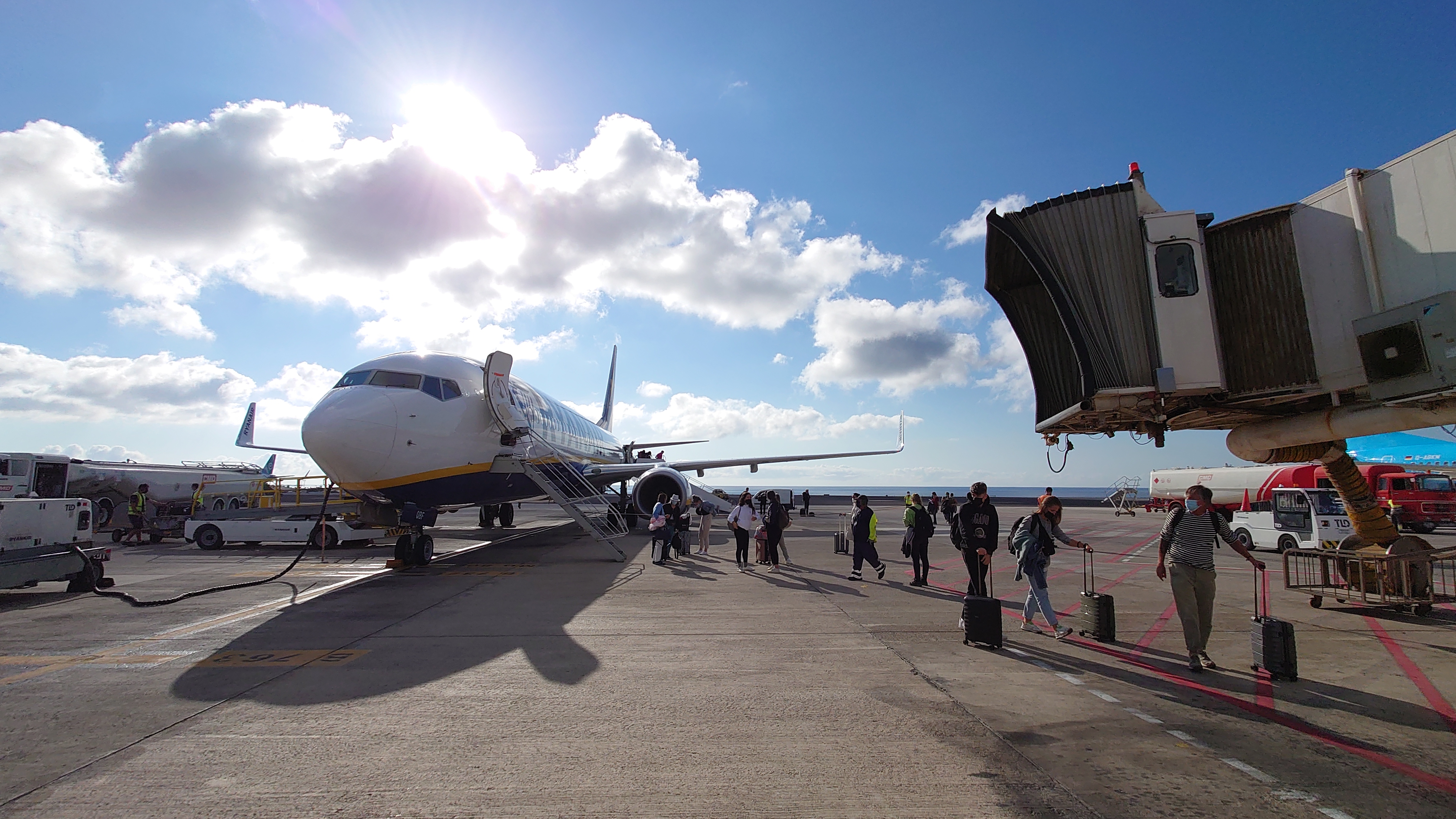 Der Anflug auf Lanzarotes Hauptstadt Arrecife ist, glaube ich, der schönste der Kanaren. Es gibt einen Flyby von Norden her mit Blick auf das gesamte Eiland, bevor in Form einer luftigen Autobahnausfahrtskurve das Rollfeld angesteuert wird. Es ist immer noch Corona, weltweit. Aber es hat sich verändert im Vergleich zum letzten Jahr. Die Leute fliegen wieder. FPP2-Masken sind selbstverständlich wie Armbanduhren griffbereit am Ellebogen vertäut. Alle wissen, was zu beachten ist. Provisorische, selbst ausgedruckte Zettel mit Hinweisen sind stilgerechten Schildern gewichen, die mit der selben professionellen Sachlichkeit wie Gate-, WC- und Baggage-Claim-Schilder die Richtlinien mitsamt neu erfundener Strichmännchensymbolik anzeigen und routiniert befolgt werden, als hätte es sie immer schon gegeben. SpTH-Einreisezertifikat. Selbstverständlich. Corona brachte einen gewaltigen Digitalisierungsschub mitsich. Kaum einer hat mehr physische Dokumente als den eigenen Personalausweis bei sich. Keine Unsicherheit, alles Reibungslos. Jeder scheint zu akzeptieren, dass wir bereitwillig ein deutliches Stück Privatsphäre zu Gunsten einer Eintrittskarte zu Sonne und Meer aufgeben. Warum sonst sollte man sich auch impfen lassen?! Ich habe einen Haken setzen müssen, dass ich mich verpflichte, bei jedem Hüstchen bloß das Flugzeug nicht zu betreten, sonst teuer. Und ich halte die Luft an. Pfff... Die Coronaschilder dürfen gerne auf vergänglicher Pappe bleiben, das macht mir ein bisschen Angst. Upgradet lieber das Schulstreikplakat von Greta mit hellen LEDs... sprachs, während wieder 1,1 Tonnen CO2 für meinen GR 135 dieses Jahr auf mein Konto gehen.