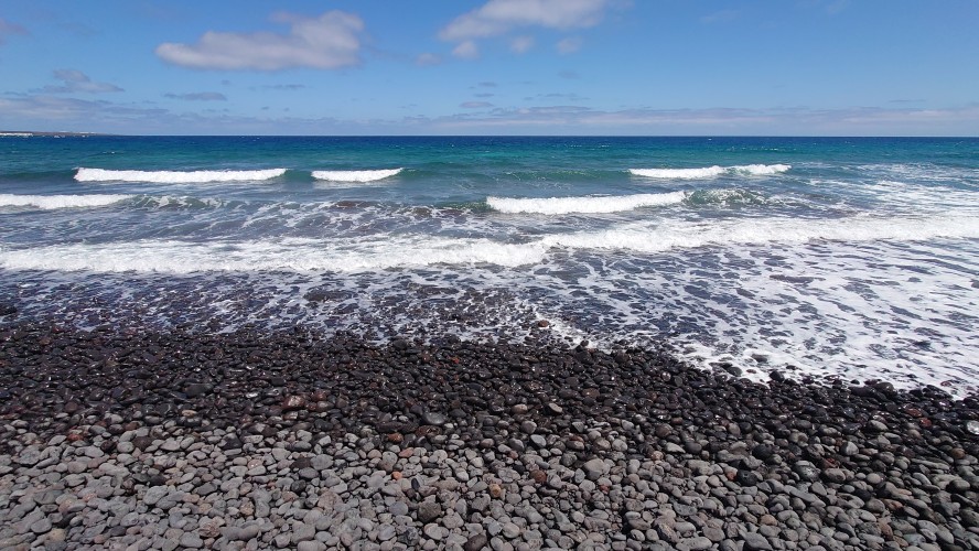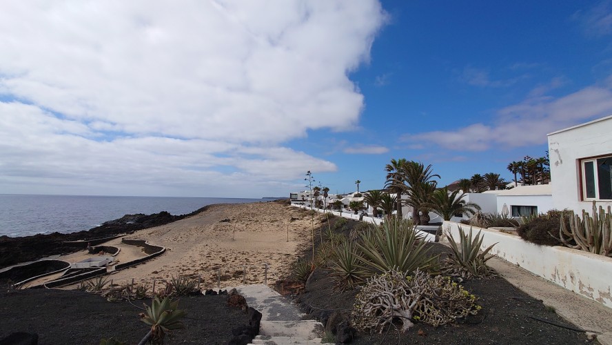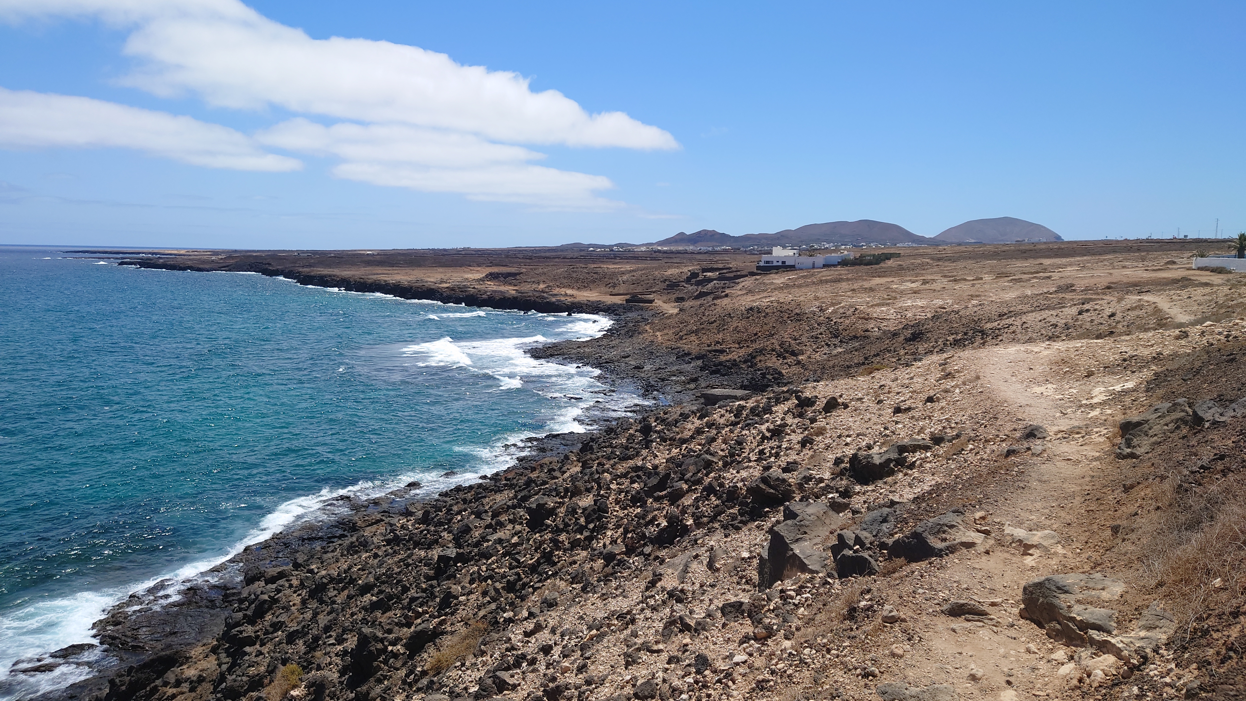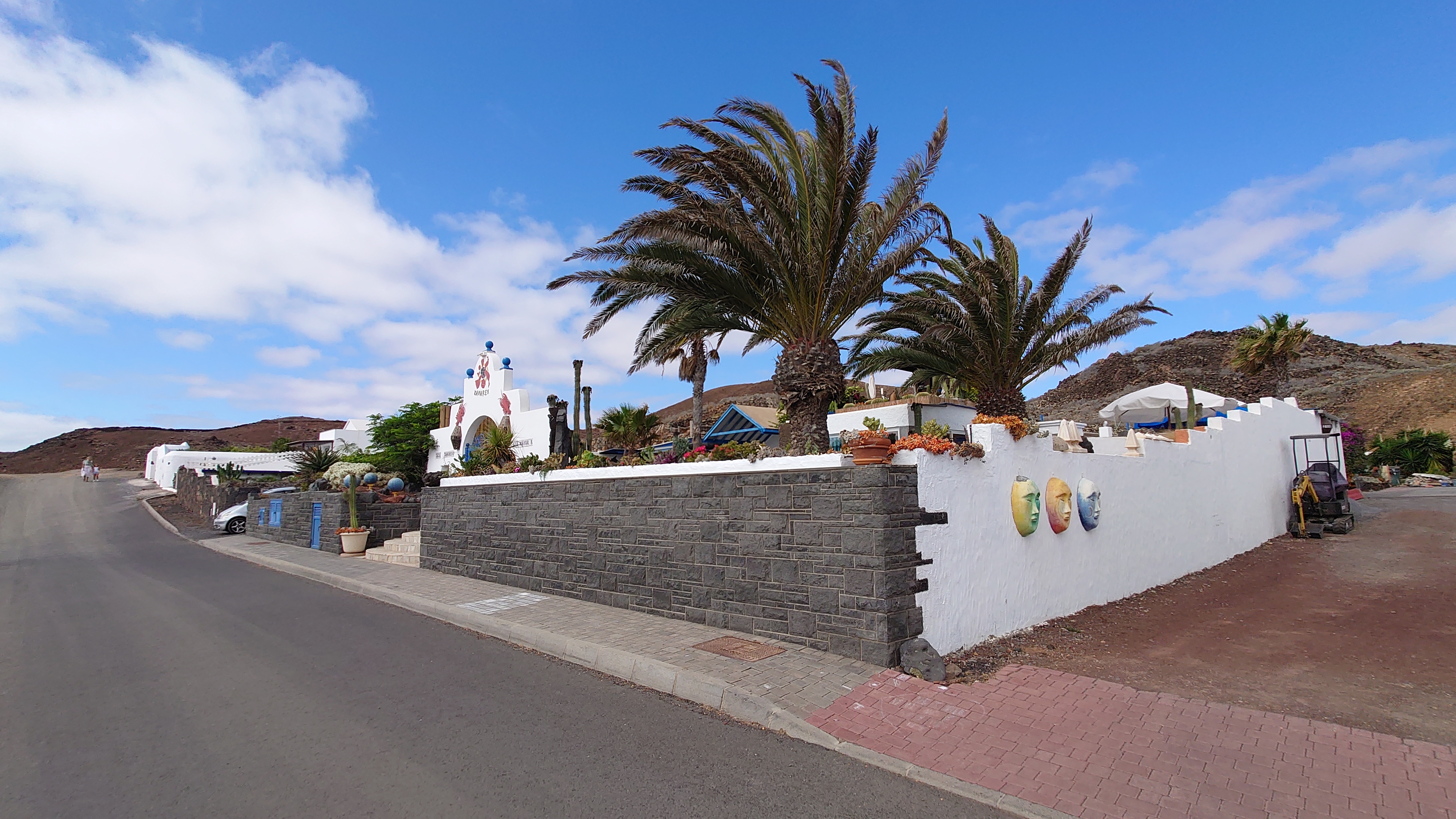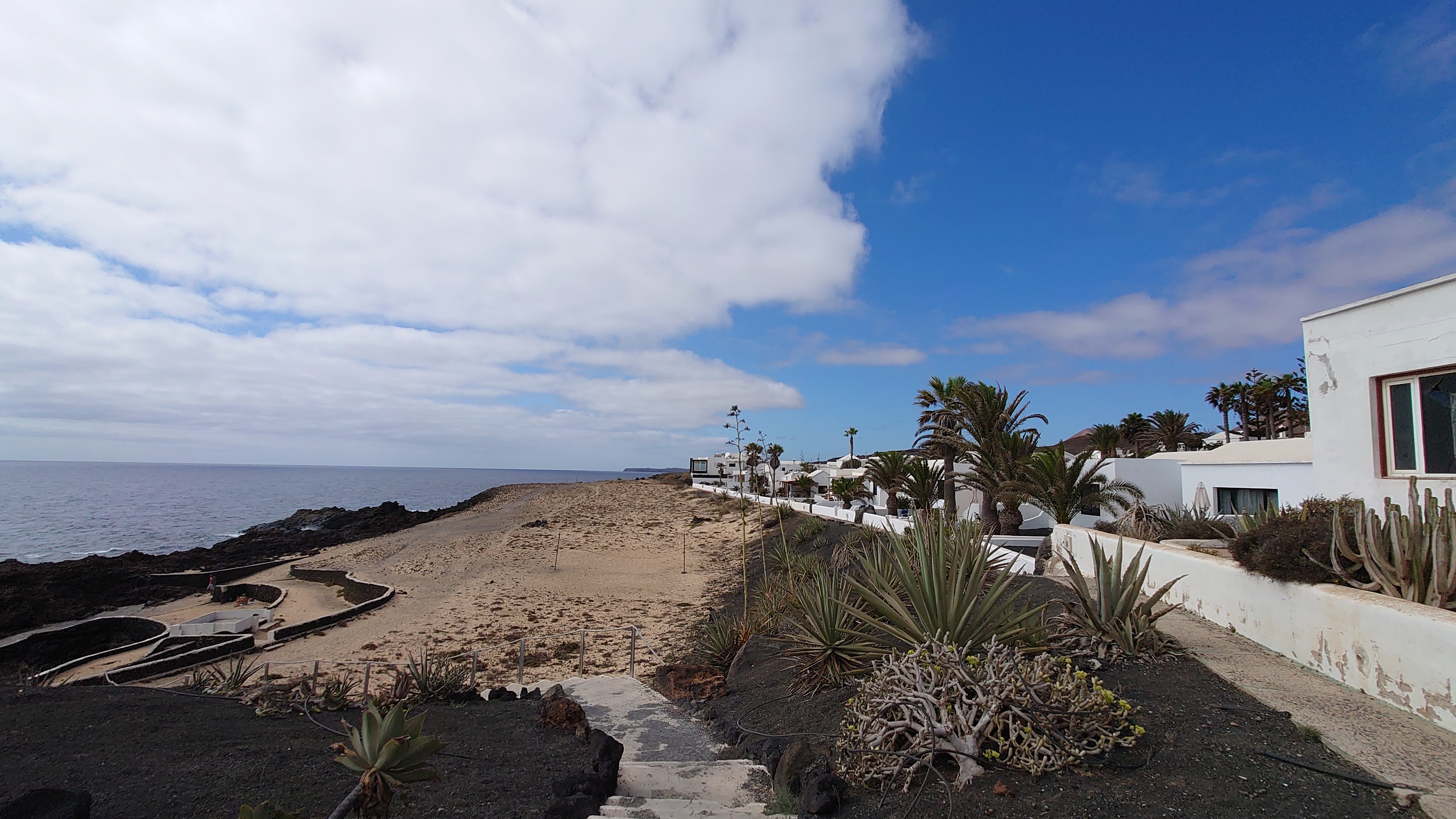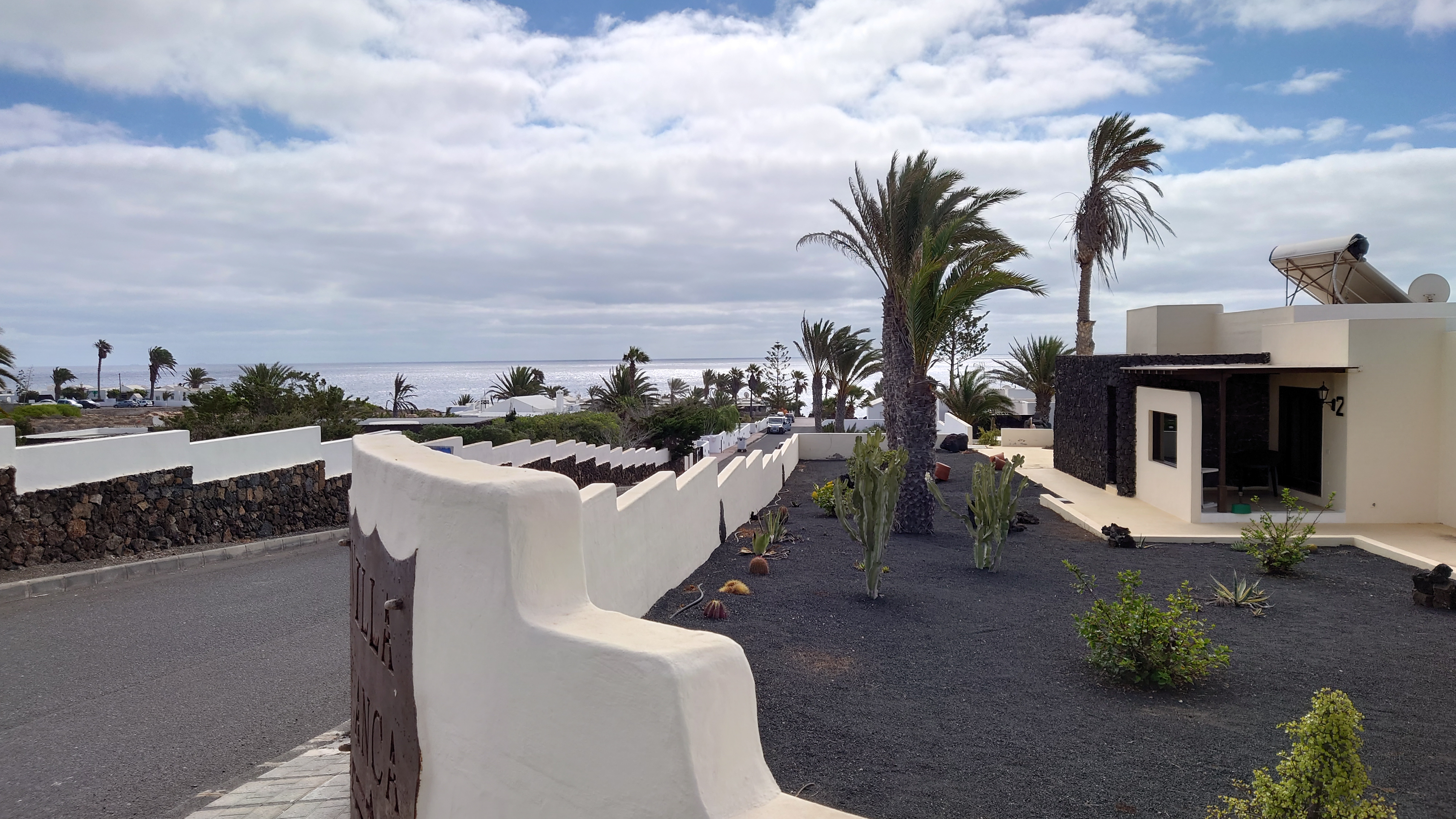 Der erste Teil des Wegs führt erstmal wieder zurück zur Küste und in das Örtchen Charco del Palo. Ein viereckiger Zuckerwürfelbaukasten. Aber irgendwas ist anders. Es ist extrem gepflegt und sauber hier. Das ist definitiv kein klassischer Touristenort, das muss was Individuelleres sein. Keine einzige Anlage ist hier. Es ist still, nur das plätschernde Meer und der raschelnde Wind in den Vorgartenpalmen. Ich durchquere die Häuserzeilen. Kreativ hergemachte, kleine Finkas säumen die Stäßchen. Das Ganze gleicht eher einem Vorstadtviertel eines Speckgürtels am Starnberger See. Dann fallen mir die Namensschilder an den Haustüren auf. Alle deutsch. Bars und Restaurants bieten Diebels und Warsteiner an. Einige Finkas liegen direkt an der Küste. Ein älteres Pärchen kommt nackt aus einem der Häuschen hervor und klettert dirket ins Wasser. Kaum einer ist in Küstennähe bekleidet.