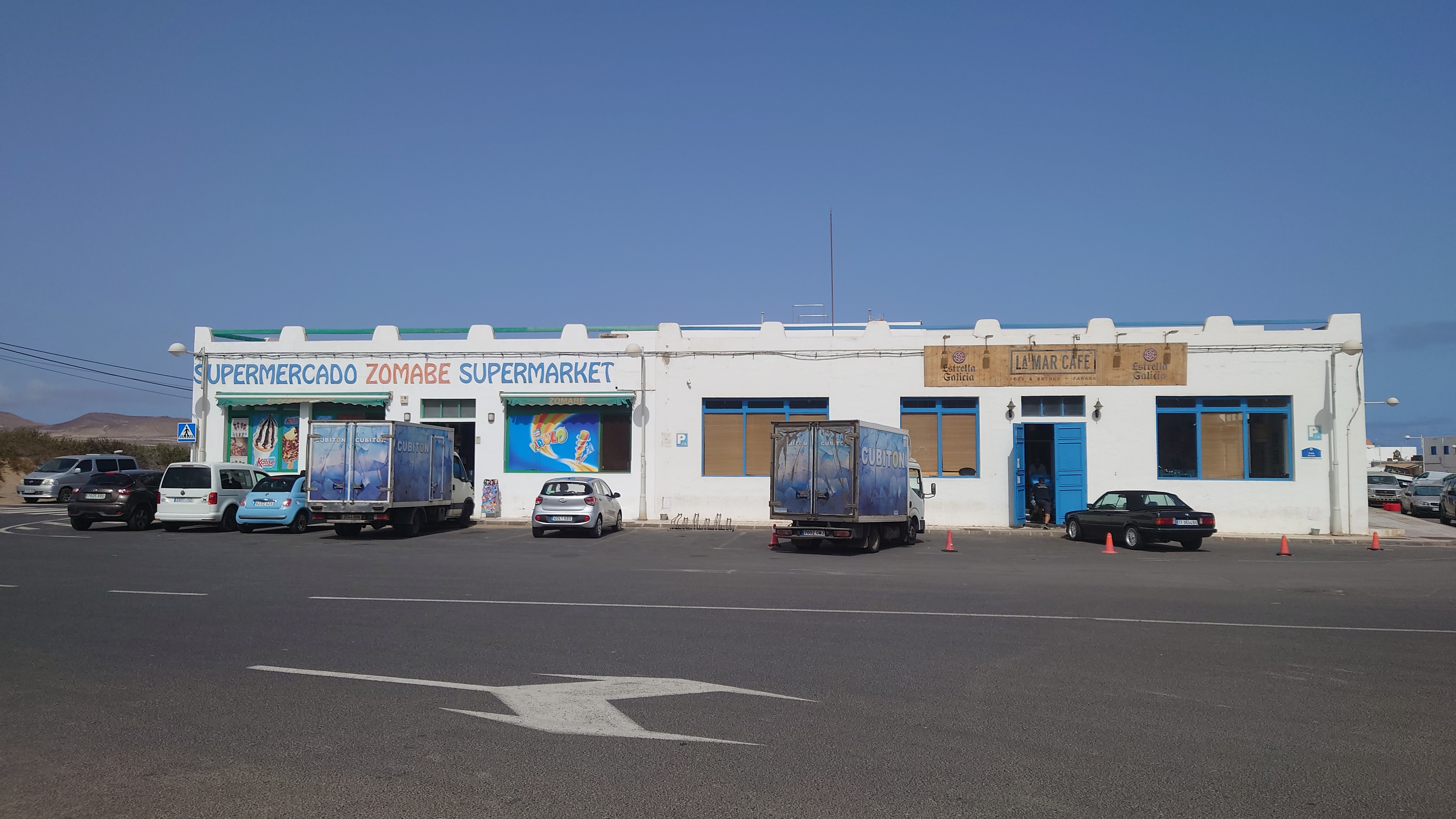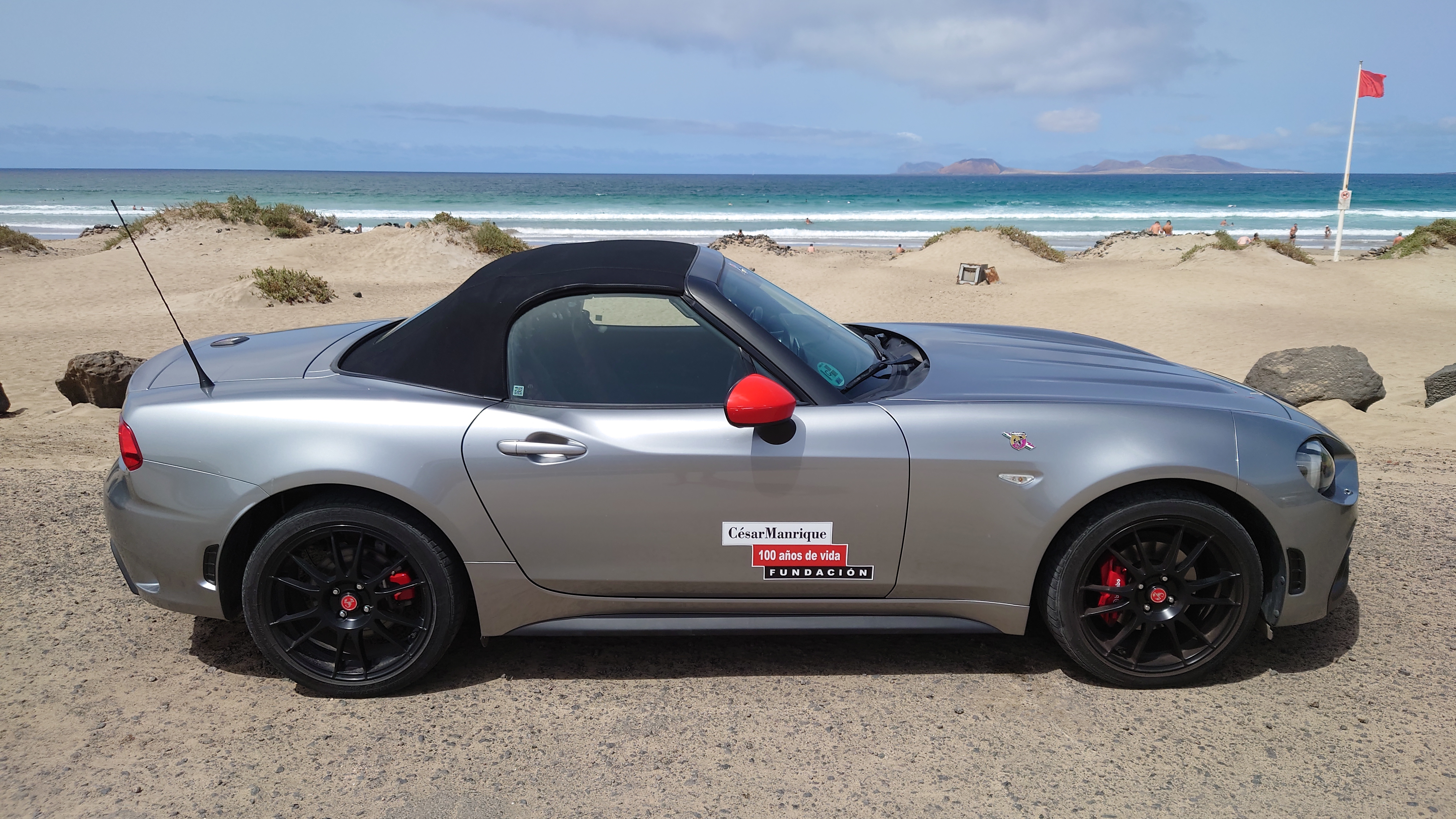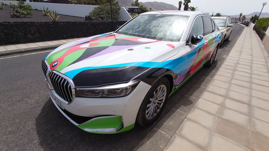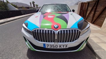 Ich versuche stattdessen die Fotostellen von vor 25 Jahren wiederzufinden und die Brandung zu bezwingen. Letzteres gelingt mir zwar auch, macht aber wenig Freude. Die Strömung zieht so stark nach links, dass ich mich kaum halten kann und einige Minuten später 200 Mwter weiter aus dem Wasser komme. Also geht's zurück und einmal quer durch die Halbmondsiedlung. Hier ist durchaus Geld in den ein oder andere Halbmond geflossen. Und an einem steht ein 7er BMW im Manrique-Stil gestaltet. Sieht natürlich gleiler aus als die Ur-Vorlage des Seat Ibiza Modells von 1984, der vor seinem Haus ausgestellt war. Und was für Nüstern der mittlerweile hat. Das schreit ja förmlich nach Nachhaltigeit! Dem werde ich extra mit Weitwinkelobjektiv nochmal ne ordentliche Extraladung Bullenstärke einflößen roooaaaarrrr!