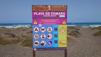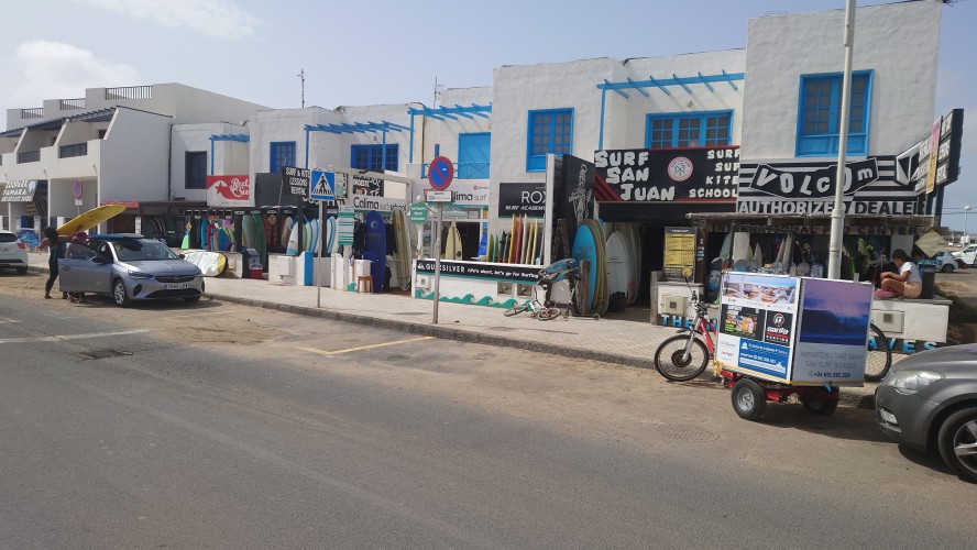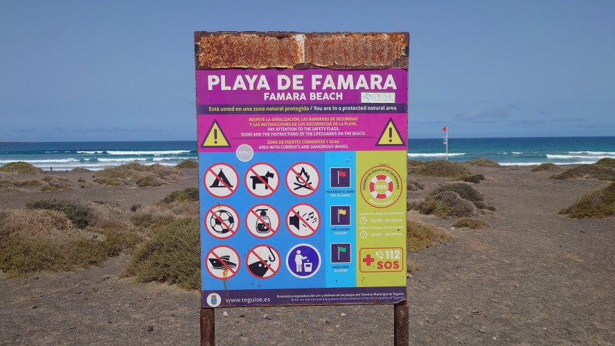 Am oberen Ende der Siedlung komme ich dem Standpunkt eines Fotos auf die Schliche. Man beachte die Palme links: 25 Jahre Wachstum. Zentrum der Bucht, direkt an der Straße sind viele recht professionelle Surfer am Start. Hier ist der Sog tatsächlich weg und ich lass mich auch von den Wellen durchreiten. Mehr passiert heute nicht, ganz zur Freude meiner Gelenke. Also mal Leander und Frances anrufen und dem Kleinen zeigen, wo der Papa so rumhängt. "Da war ich schon!", sagt er und berichtet mir stattdessen, dass er eine Rakere haben wird, wenn er groß ist und uns alle mitnimmt in den Weltraum! Famara... pah, think big! Ich darf sogar vorne sitzen! Aaaaah, der Weg zu Star Trek ist nicht mehr weit. Wer weiß in welche Welten er eigentlich in Bettdeckenhöhlen des Nachts entschwindet...