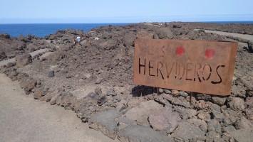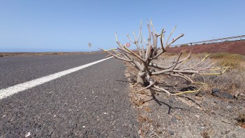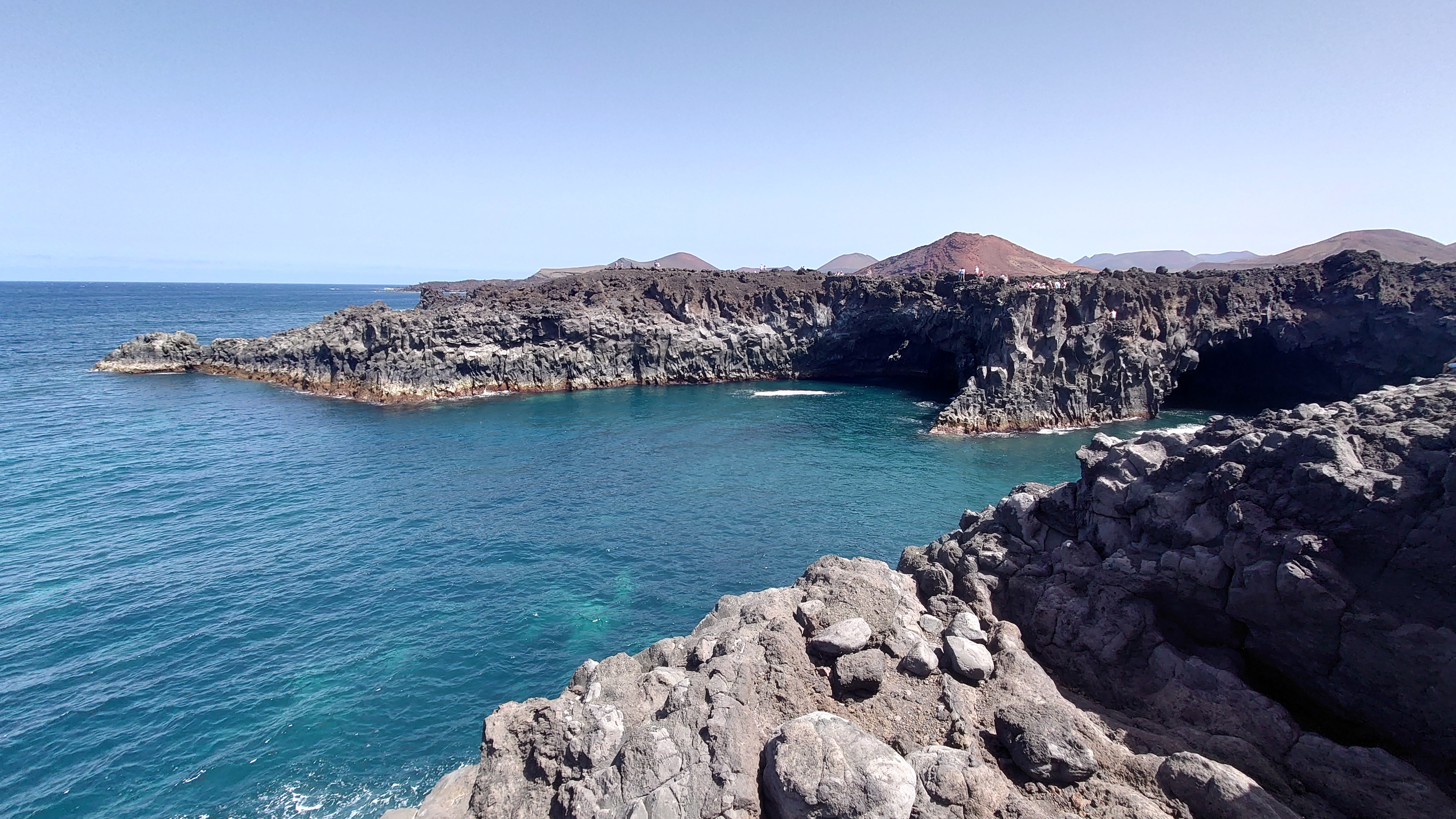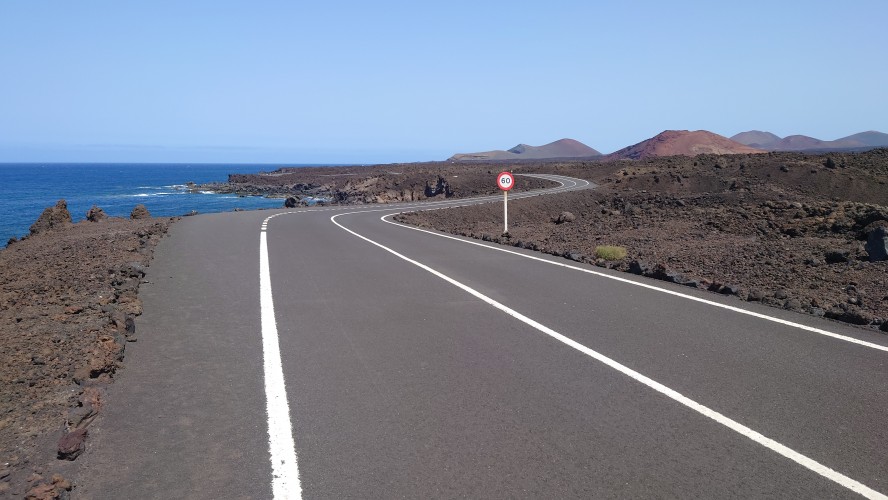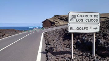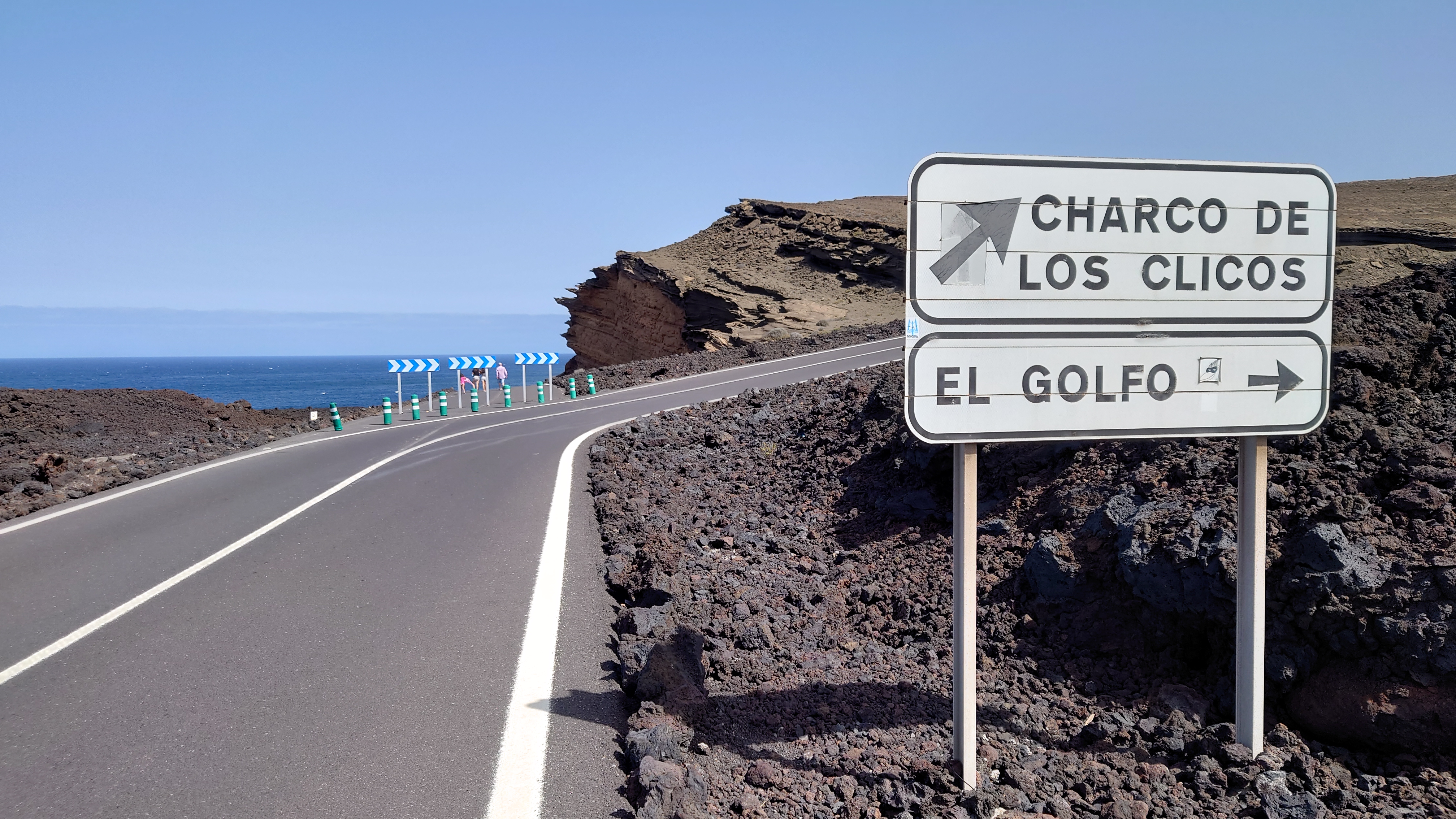 Ich gehe weiter die Straße entlang bis Los Hervideros. Bis dahin darf man auch noch fahren. Der Tui-Bus ist auch schon da und hat eine große Menge Canon-DSLR-Kameras ausgespuckt, die hier von Menschen in Felslöcher gehalten werden, in denen unten das Wasser hineinströhmt. Man steht brav an für sein Foto und noch mehr Selfies in Löcher mit Wasser unten drin, die garantiert alle nichts werden und nicht bei Insta landen. Das wirkt einfach nicht, in keiner Kameraeinstellung. So oder so ist der Ort irgendwie... naja... hab ich jetzt auch zufällig auf dem Weg abgehakt. Ich gehe weiter auf der jetzt gesperrten Straße. Ein älter Mann folgt mir mit einem EOS 1 Geschoss. Er ist mir bei den Löchern schon aufgefallen, weil er in waghalsigen Kletrermaneuvern sein L-Rohr auf noch nie da gewesene Montive ausgerichtet hat. Frau wartete oben am Parkplatz und passte auf die Equipmenttasche auf. Da bleibt mir nur eine Frage: Für wen?