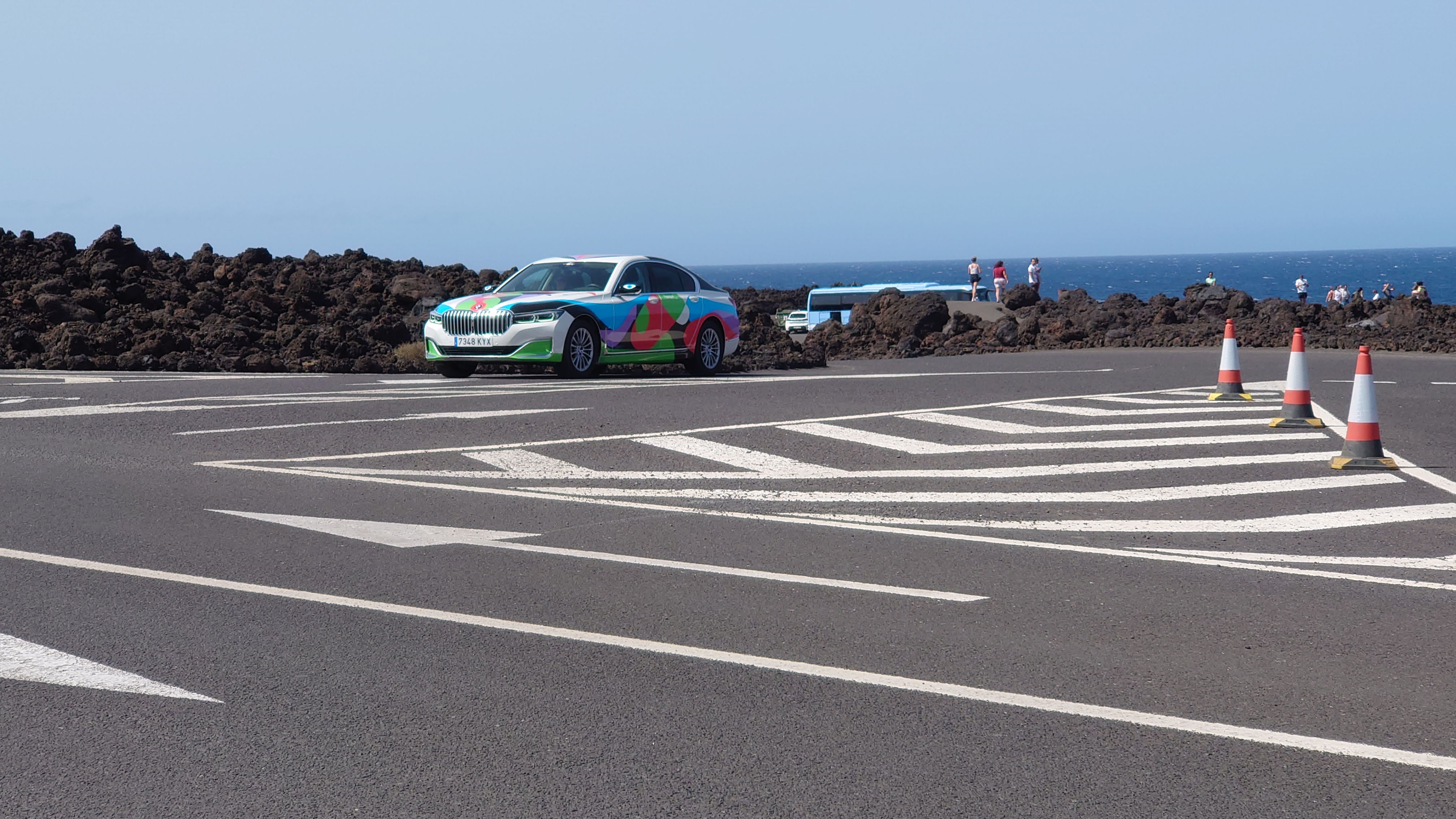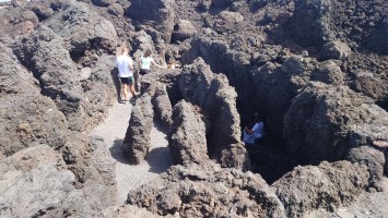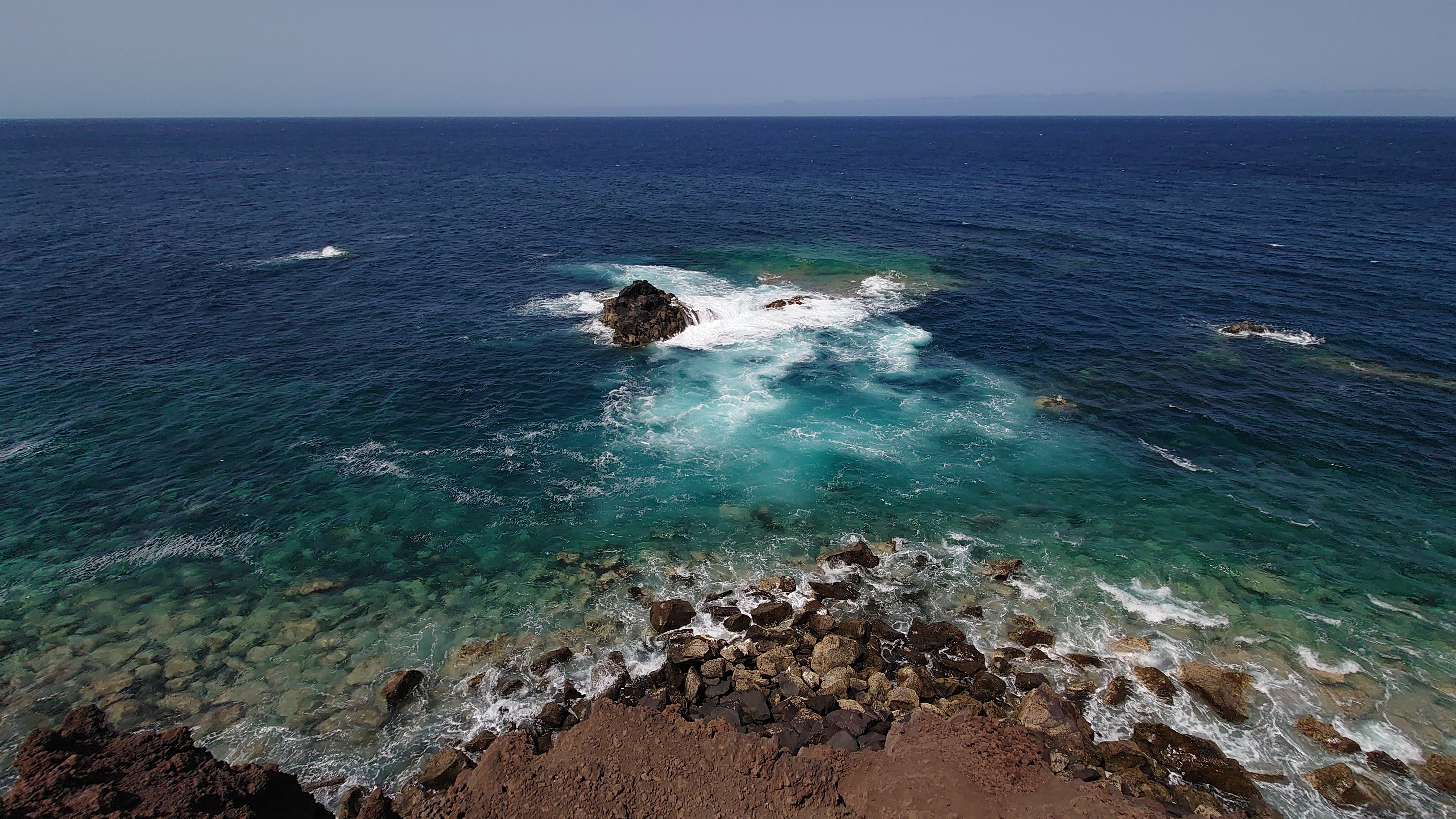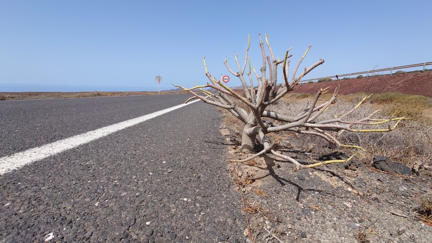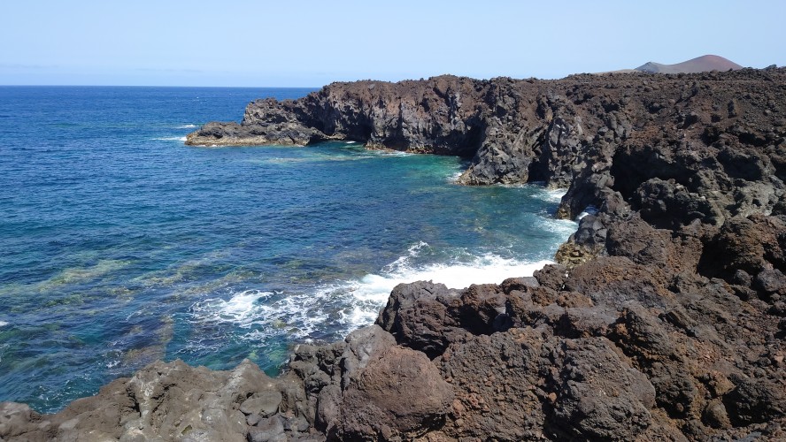 Ich gehe weiter die Straße entlang bis Los Hervideros. Bis dahin darf man auch noch fahren. Der Tui-Bus ist auch schon da und hat eine große Menge Canon-DSLR-Kameras ausgespuckt, die hier von Menschen in Felslöcher gehalten werden, in denen unten das Wasser hineinströhmt. Man steht brav an für sein Foto und noch mehr Selfies in Löcher mit Wasser unten drin, die garantiert alle nichts werden und nicht bei Insta landen. Das wirkt einfach nicht, in keiner Kameraeinstellung. So oder so ist der Ort irgendwie... naja... hab ich jetzt auch zufällig auf dem Weg abgehakt. Ich gehe weiter auf der jetzt gesperrten Straße. Ein älter Mann folgt mir mit einem EOS 1 Geschoss. Er ist mir bei den Löchern schon aufgefallen, weil er in waghalsigen Kletrermaneuvern sein L-Rohr auf noch nie da gewesene Montive ausgerichtet hat. Frau wartete oben am Parkplatz und passte auf die Equipmenttasche auf. Da bleibt mir nur eine Frage: Für wen?