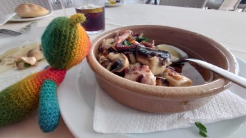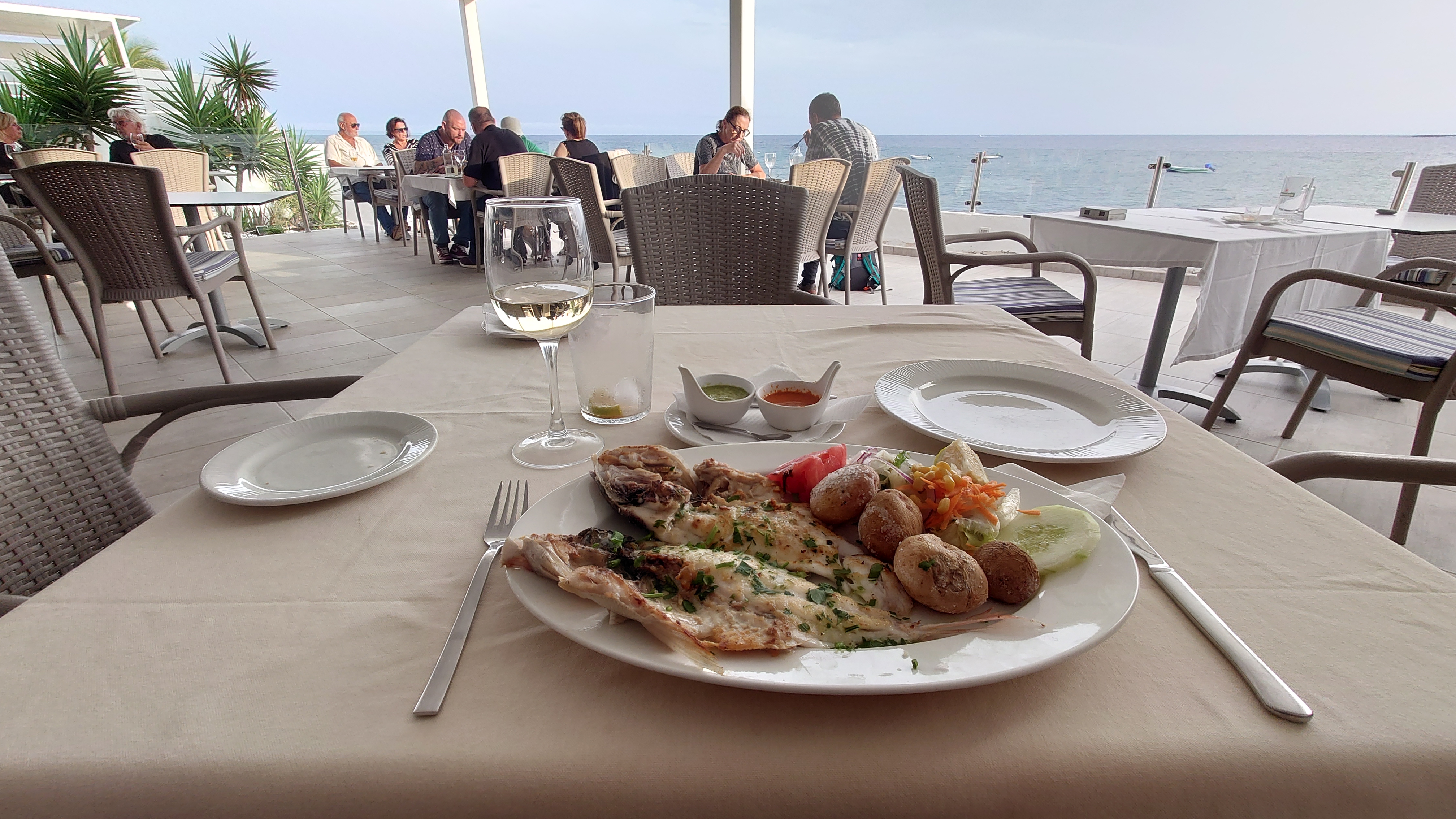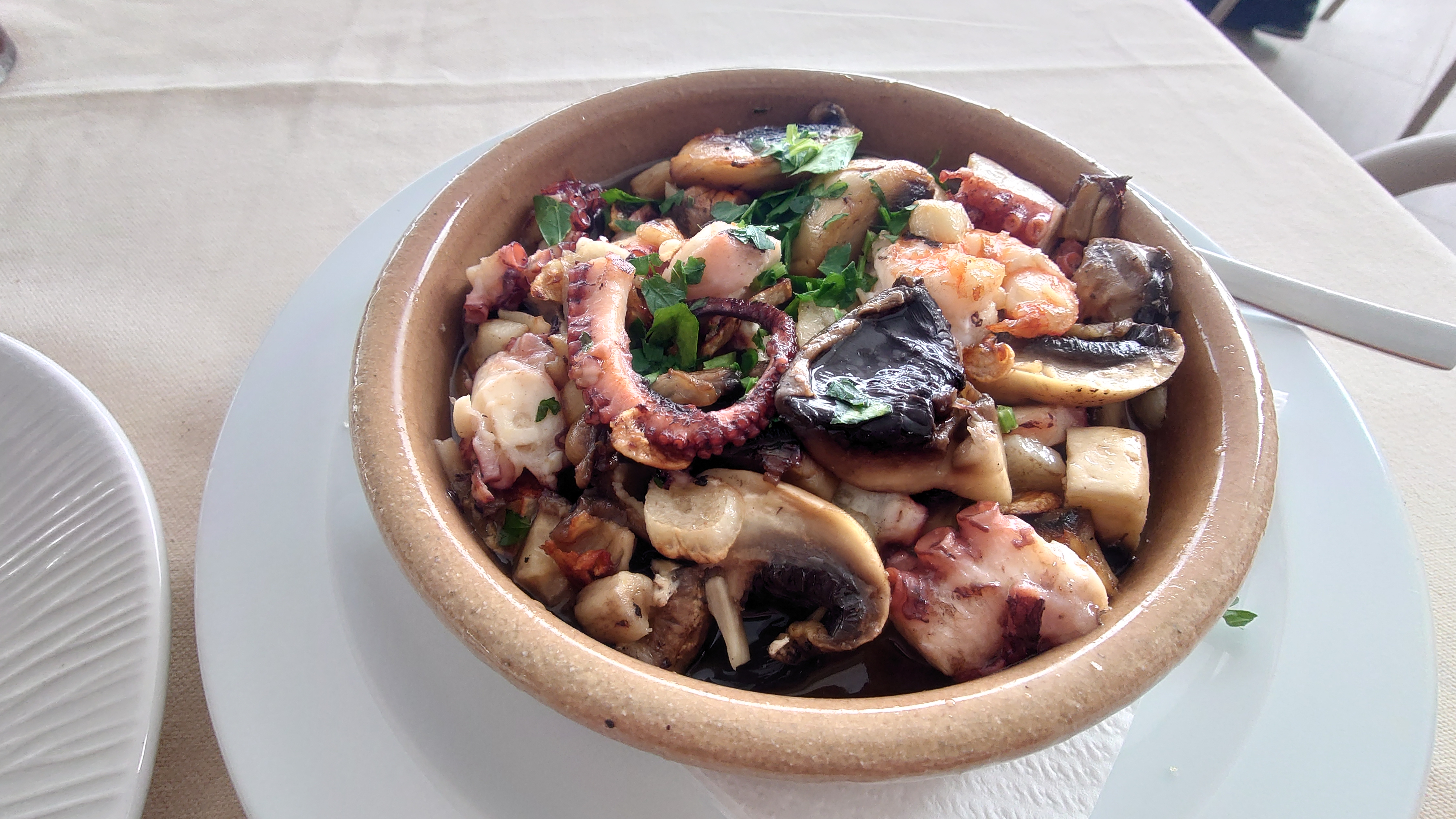 Aprolos Mühen. Heute will ich Fisch, den hab ich mir verdient. Gestern und vorgestern war ich aus Prinzip nicht essen. Allein wie die Kellner einen auf der Promenade angeiern. Hier gibt's das El Pescador. Ich muss es gar nicht sehen, um zu wissen, dass der Laden das ist, was der Name verspricht. Es ist ein Wunderland aus Öl, Knoblauch, Saugnäpfen, Flossen, Pilzen, Gewürzen, Salz, Schrumpelkartoffeln und noch mehr Öl. Heute lasse ich es krachen, aber so richtig.