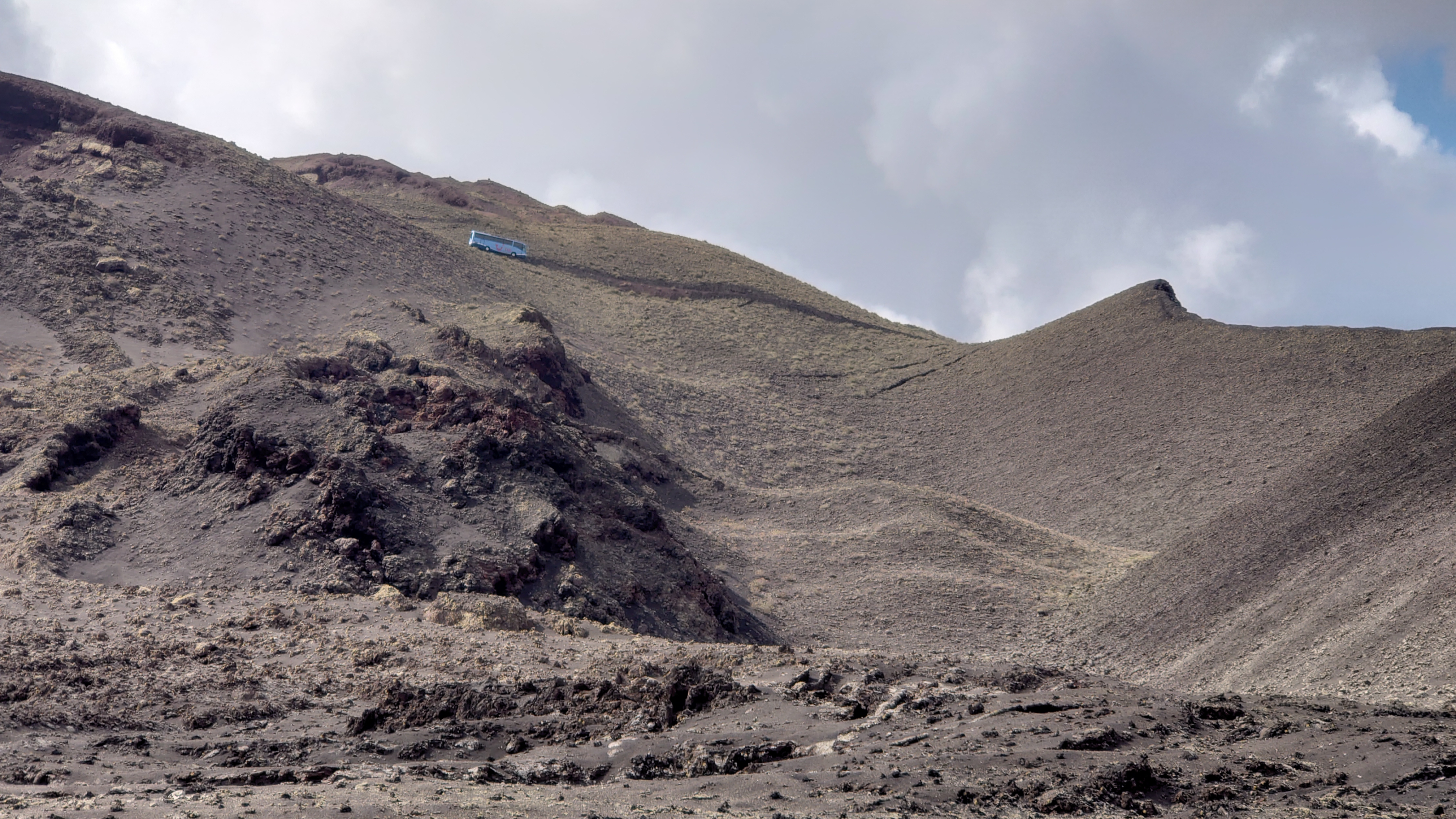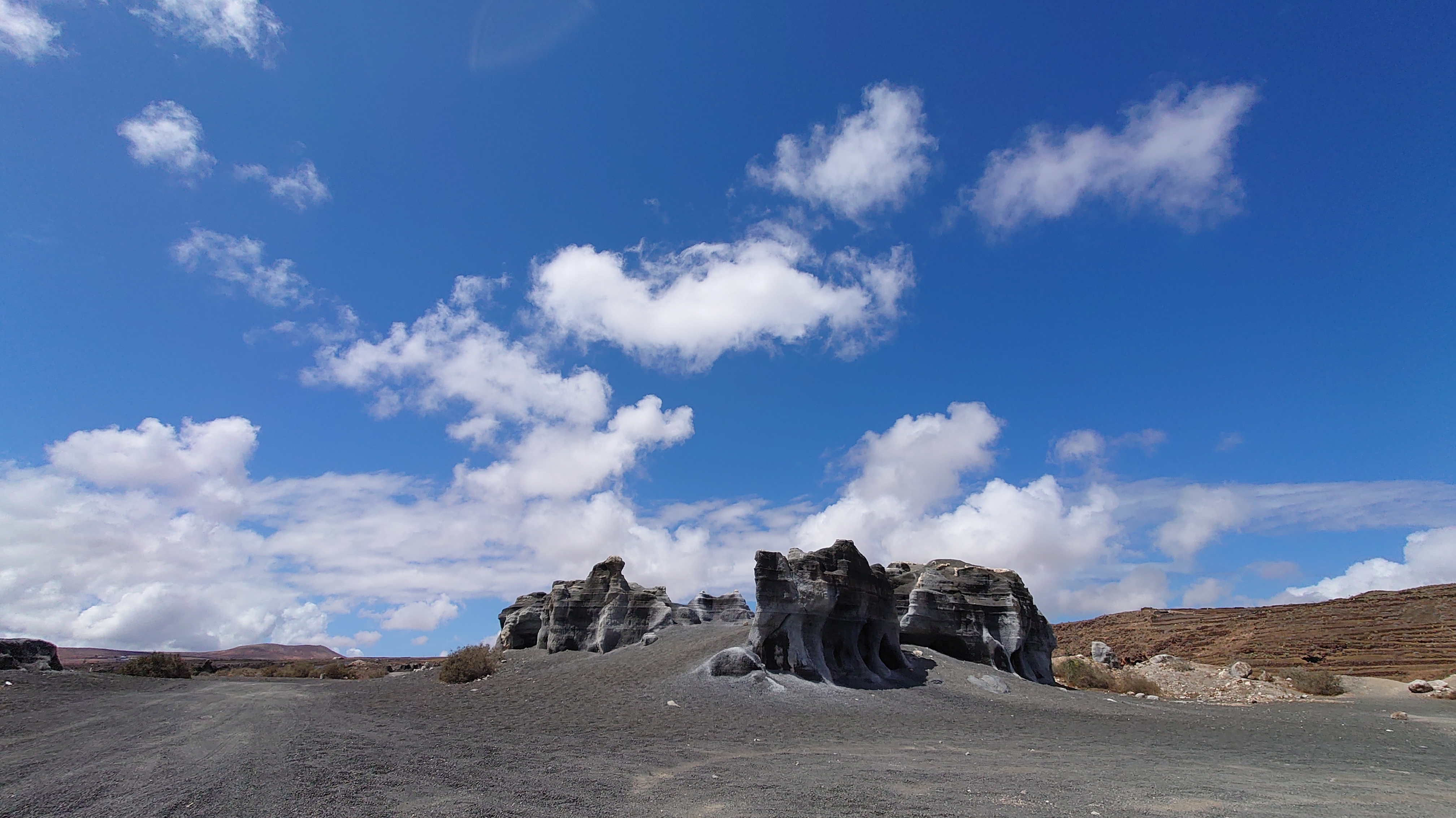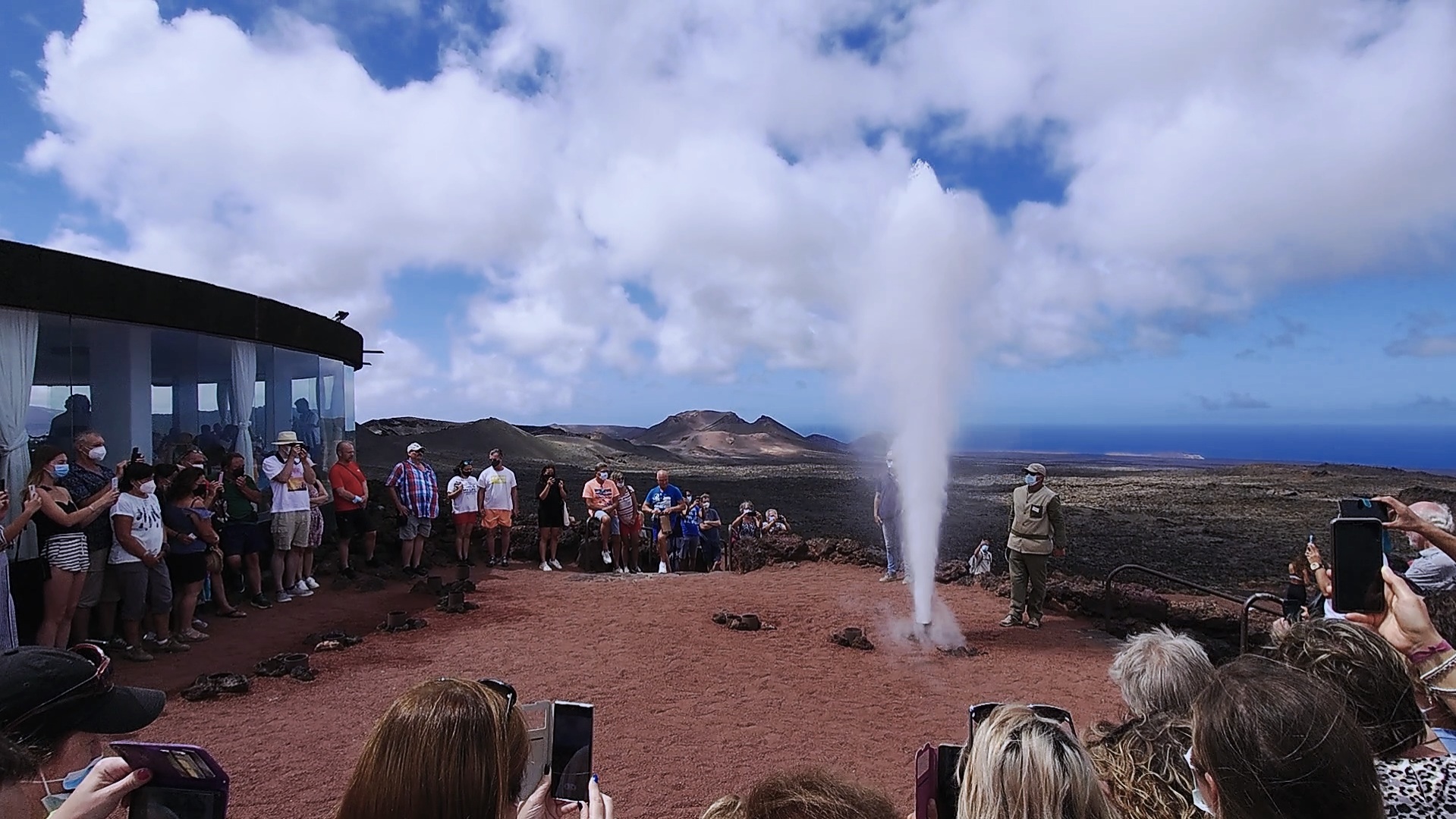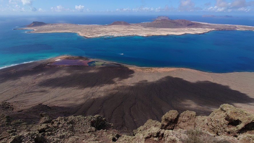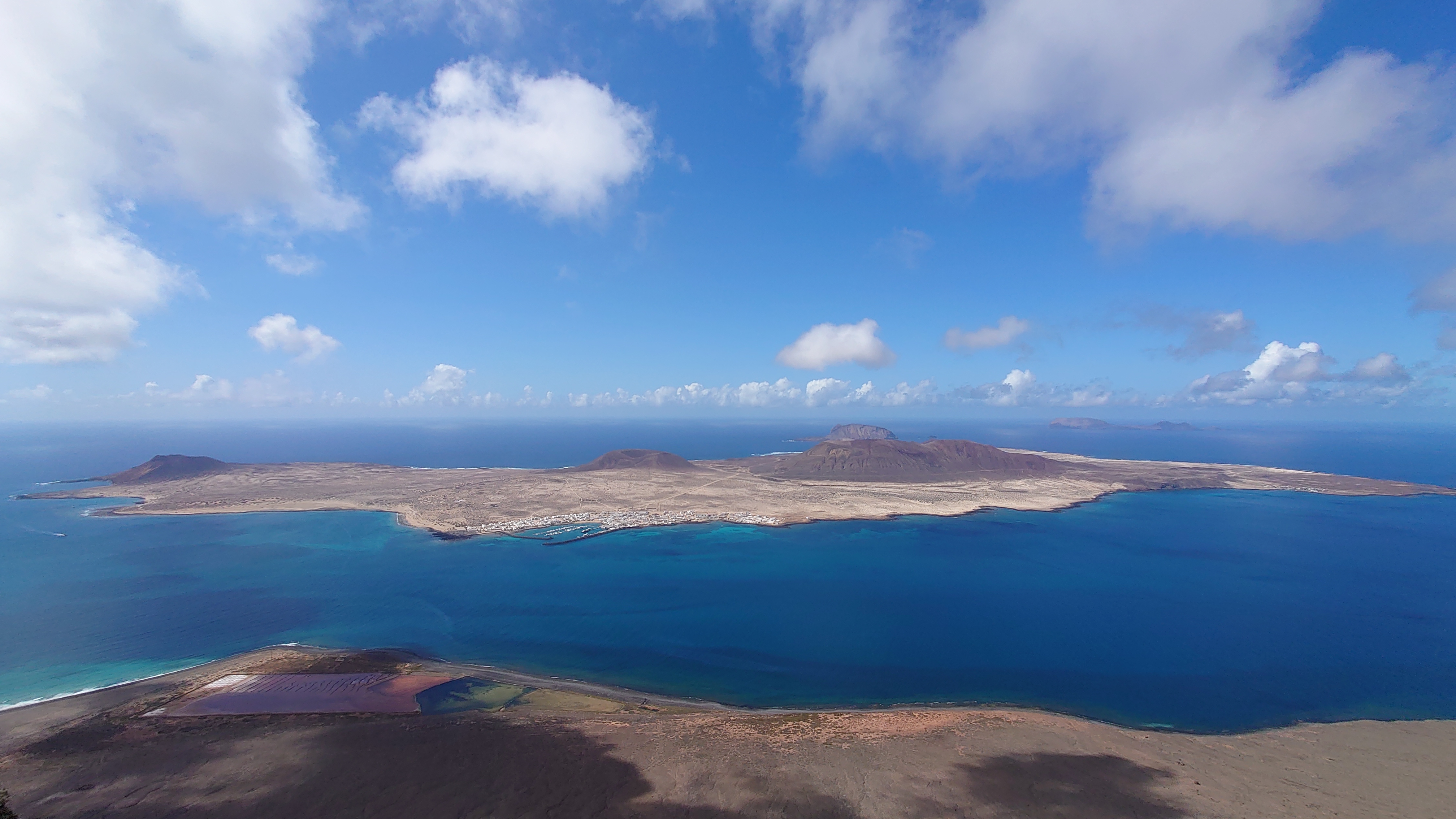 Damals haben wir ein paar Meter daneben geparkt, um uns den Eintritt zu sparen. Aber der Mirador klebt halt direkt auf dem Abgrund und es ist eine andere Nummer. Ein bisschen wehmütig werde ich, als ich den tropischen Strand auf der gegenüberliegenden Seite des Inselchens erspähen kann. Der ist unübertroffen. Trotzdem parke ich auch danach ein paar Meter daneben, um meiner eigenen Version von damals einen aktuellen Stand zu verselfien.Es ist halb 5 und mich zieht es zurück ins Hotel, noch einmal ins Saunaraumschiff gehen und ich würfle mich zurück in Richtung Arrecife an schräg klingenden Orten vorbei... Ye... Soo... Uga...