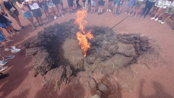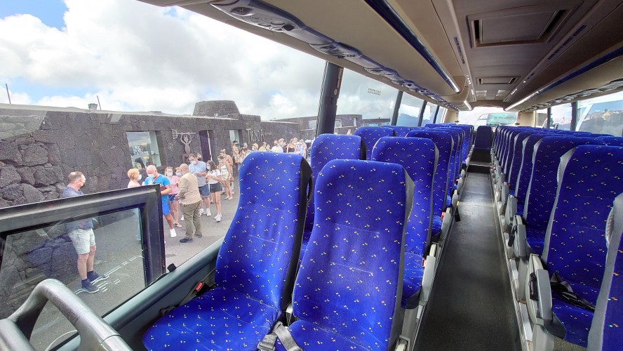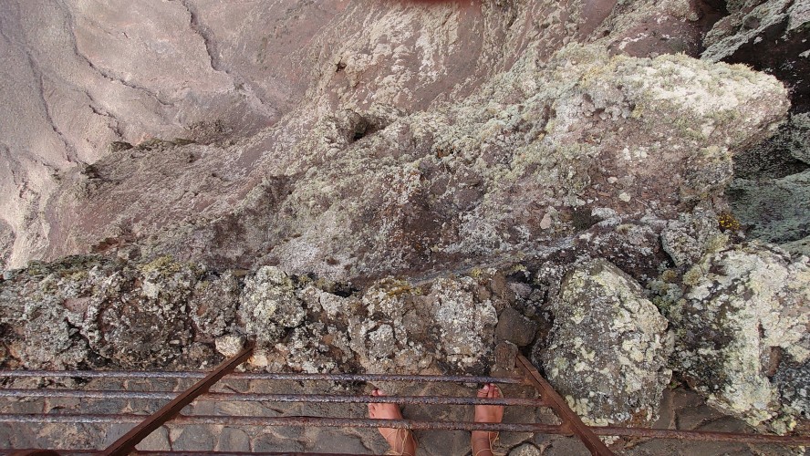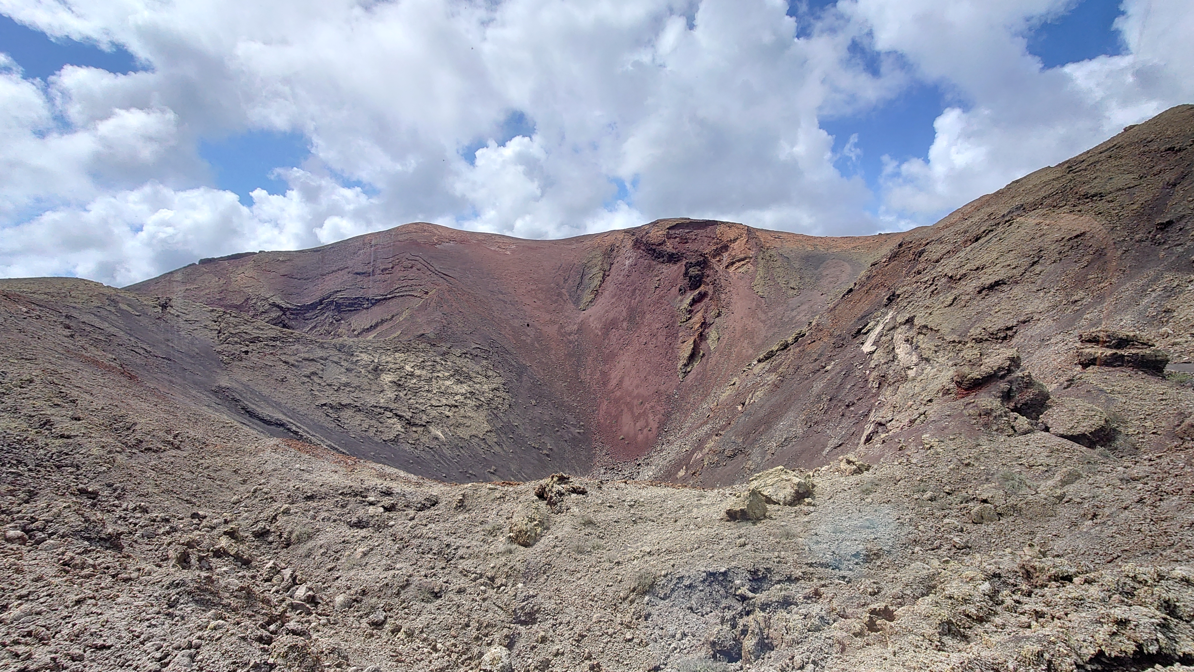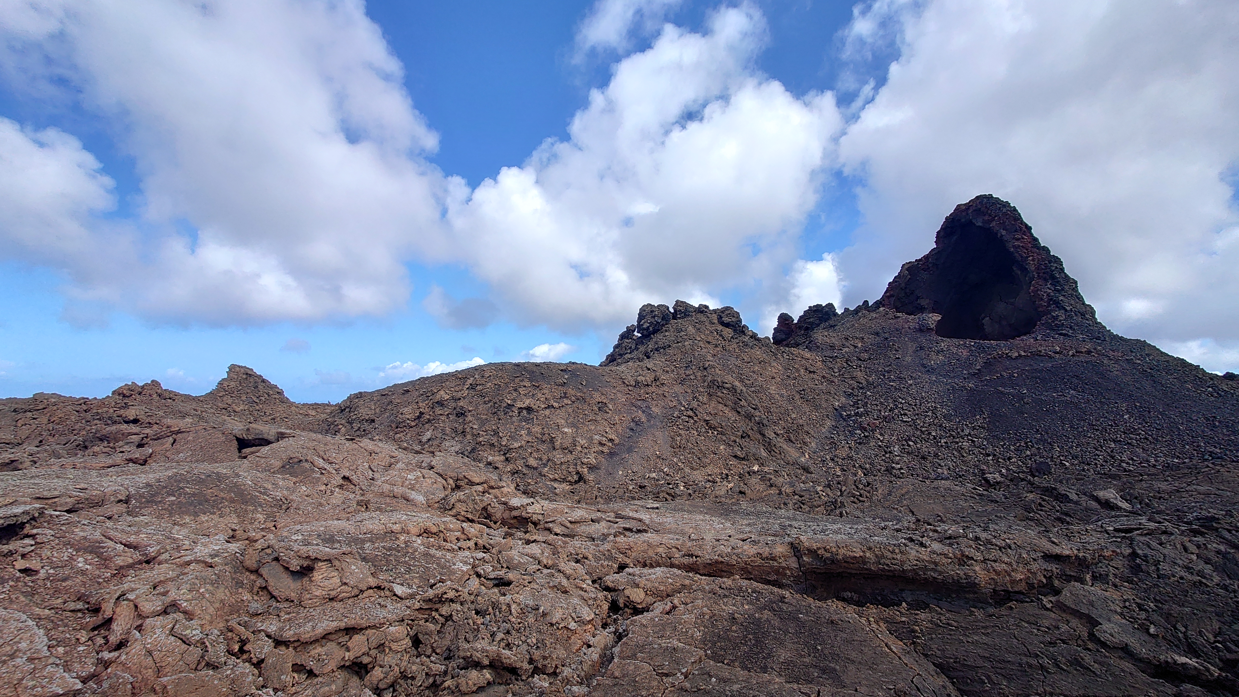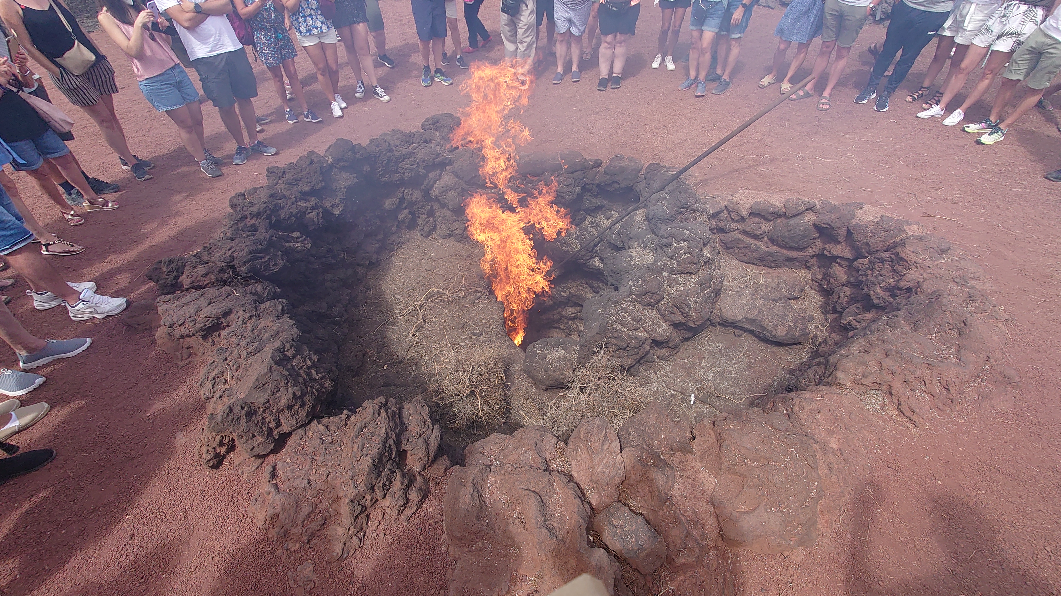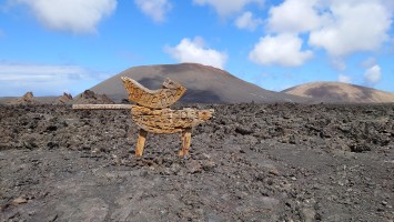 Damals haben wir ein paar Meter daneben geparkt, um uns den Eintritt zu sparen. Aber der Mirador klebt halt direkt auf dem Abgrund und es ist eine andere Nummer. Ein bisschen wehmütig werde ich, als ich den tropischen Strand auf der gegenüberliegenden Seite des Inselchens erspähen kann. Der ist unübertroffen. Trotzdem parke ich auch danach ein paar Meter daneben, um meiner eigenen Version von damals einen aktuellen Stand zu verselfien.Es ist halb 5 und mich zieht es zurück ins Hotel, noch einmal ins Saunaraumschiff gehen und ich würfle mich zurück in Richtung Arrecife an schräg klingenden Orten vorbei... Ye... Soo... Uga...