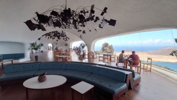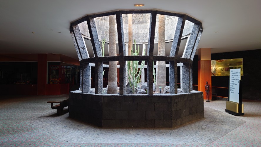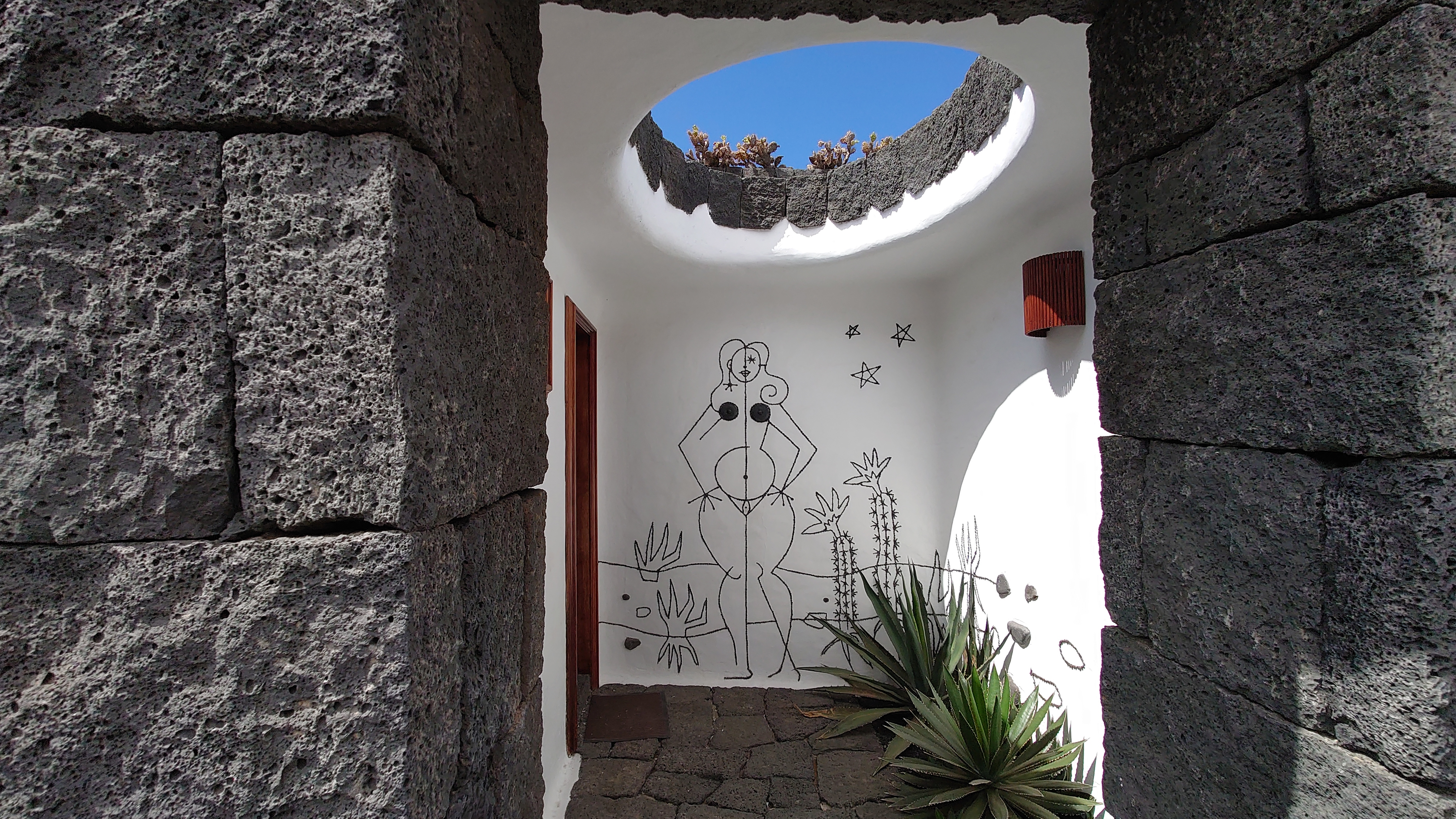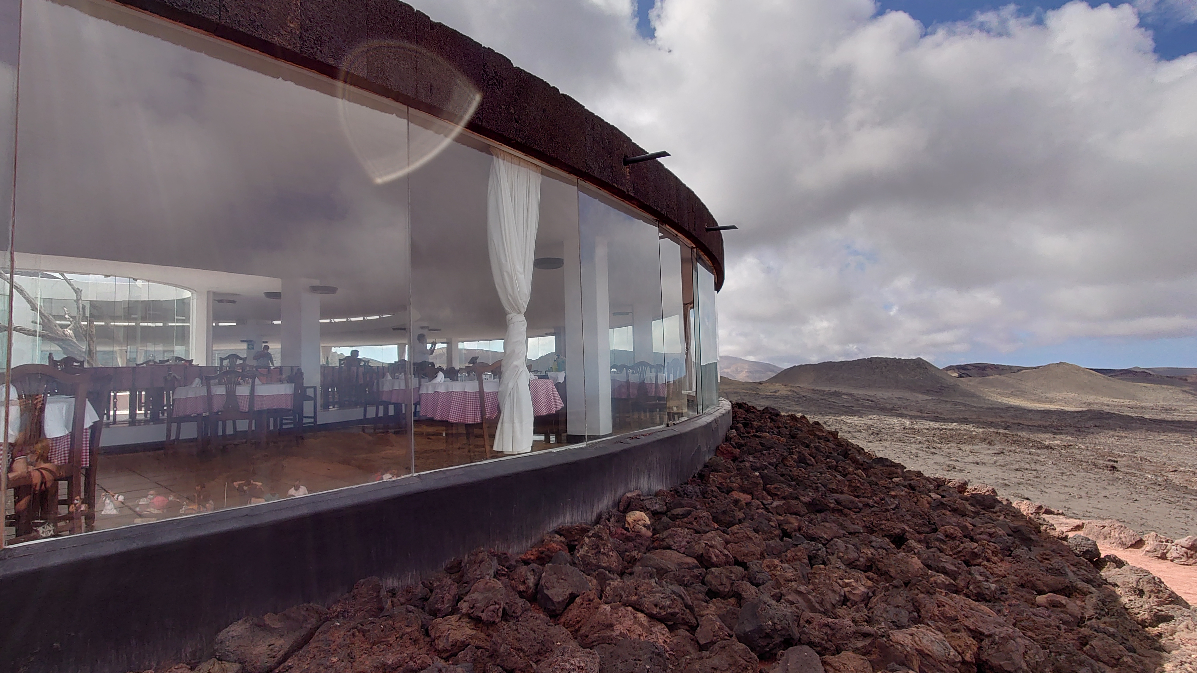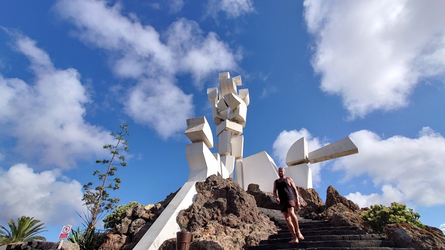 Volll mit Fisch im Bauch, ziehe ich mich aus und gehe neben dem Restaurant ins Meer und schwimme in die schwarze Salzsuppe zu den ankernden Booten hinaus. Der erste ruhige Moment heute und ich fange während des rumpaddelns an rumzudenken. Der Tag hinterlässt einen erschlagenden Eindruck. In 9 Stunden habe ich mit 200 Kilometern die selbe Distanz mit dem Auto zurück gelegt wie zu Fuß in zwei Wochen. Das Erlebte beschränkt sich auf Selfies und Hot-Spot-Bilder und ist im eigentlichen Sinne keine selbst erlebte Erfahrung, sondern eine Inszenierung, für die Manrique als maßgeblicher Einfluss lukrativ gefeiert wird. Um ehrlich zu sein habe ich das Gefühl, die ganze Insel ist dieser Inszenierung ein Stück weit zum Opfer gefallen. Man hat ihm damals weitreichenden Gesttungsspielraum gestattet, was in meinen Augen dazu führte, dass eine Insel entstand, die den Tourismus als Ersatzursprünglichkeit für sich proklamiert hat. "Planet Risa". Fehlt nur noch ein Wetterkontrollsystem im Orbit. Aber mir gefällt dennoch als Kunstobjekt ansich bettachtet ein Großteil dessen, was Manrique sich so ausgedacht hat. Es hat eine unverkennbare Ästhetik.