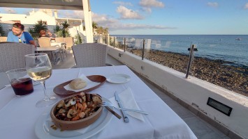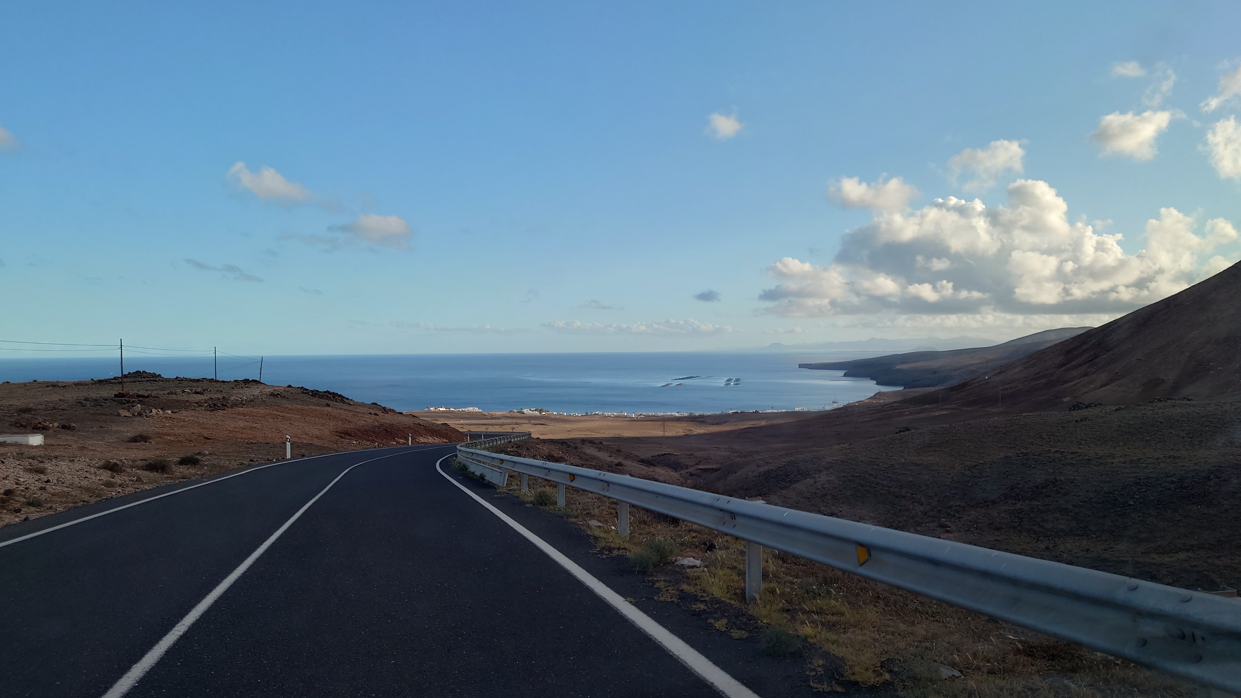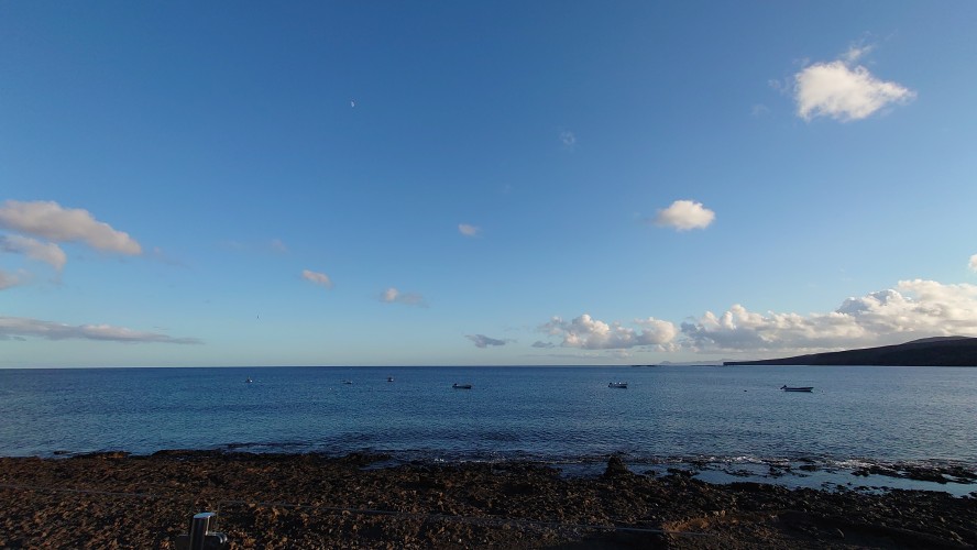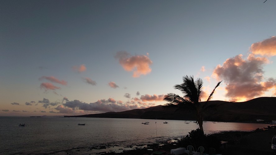 Heute Abend môchte ich eigentlich nochmal Fisch essen gehen, aber bestimmt nicht in Puerto del Carmen. Dank meines Würfels fahre ich also zurück ins verschlafene Playa Quemeda zum El Pescador von gestern, bestelle den Fisch des Tages und den Pilzeintopf und beobachte, wie die Sonne hinter den Bergen verschwindet und der Himmel zum Regenbogen wird.