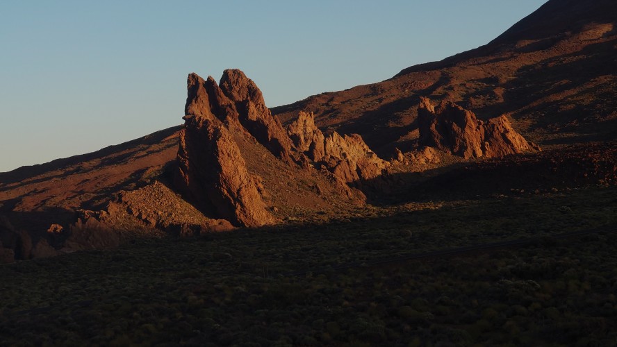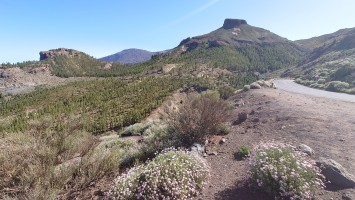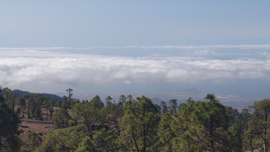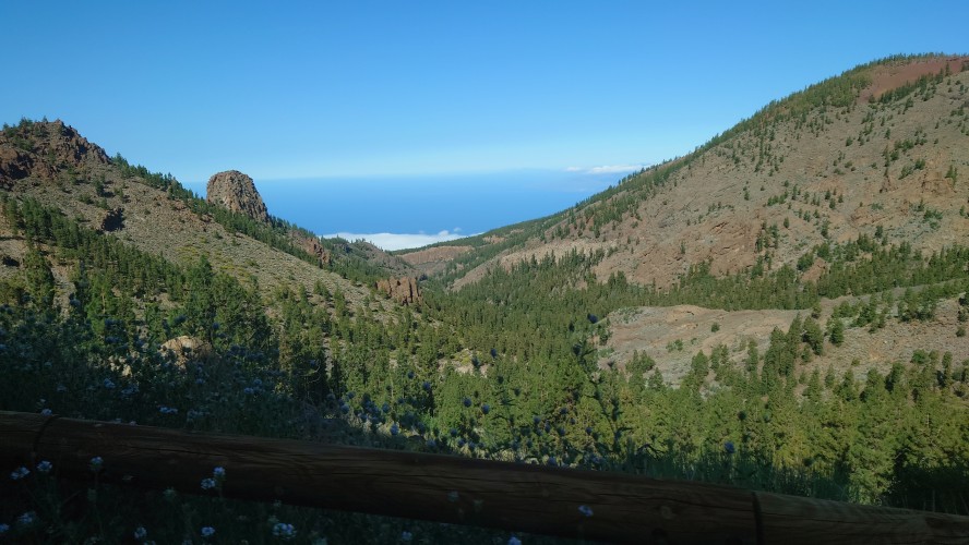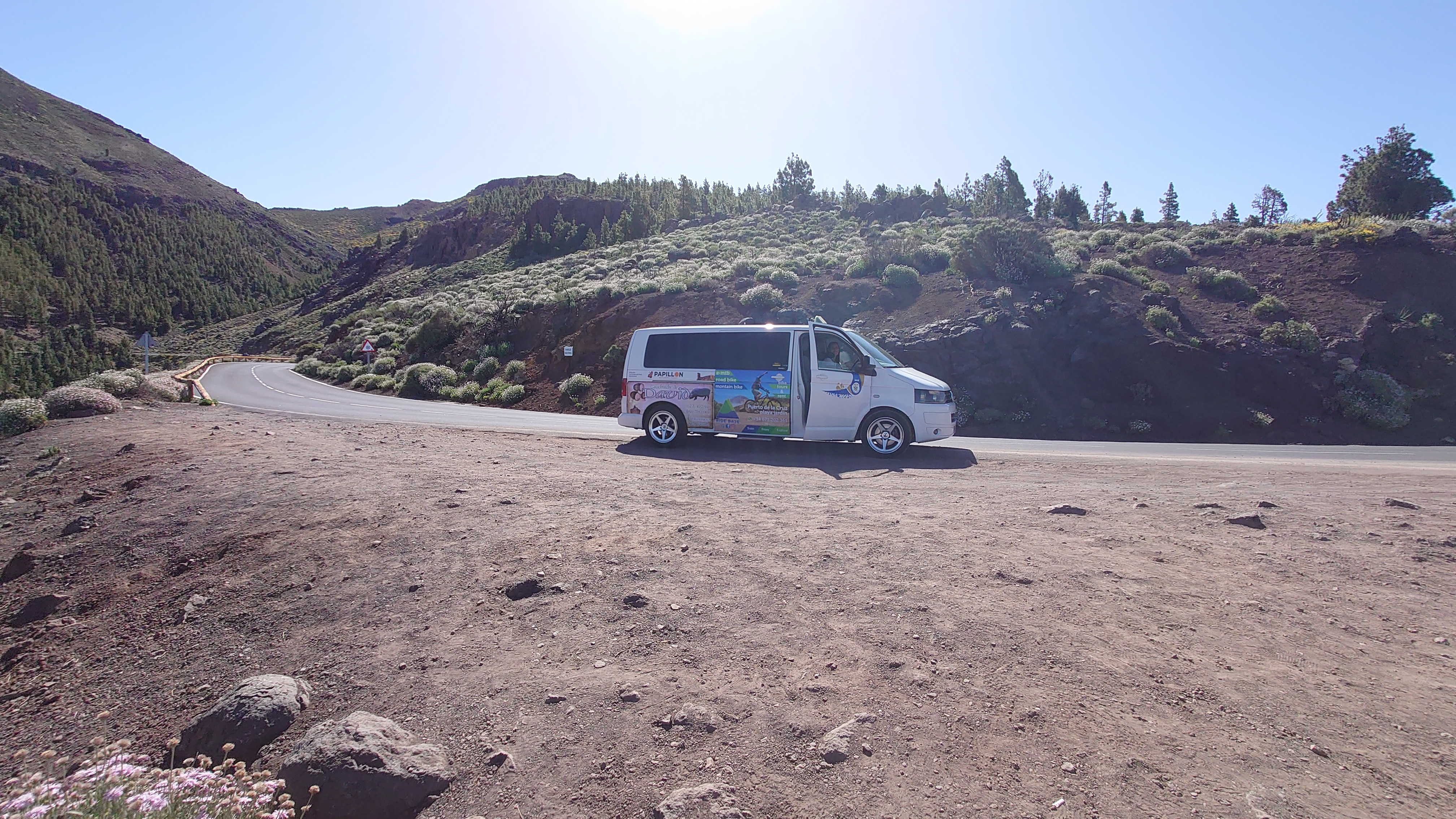 Mir reicht’s. Ich hab das lange genug versucht zu kompensieren, ein Arzt soll sich das anschauen. Aber hier oben fährt nur ein Bus um 16:00 hinab nach Los Cristianos. Dann ist der Tag kaputt. Ich bleibe hier oben nicht noch 8 Stunden sitzen und zähle die Pochungen. Taxis sind bezahlbar, hab ich gelernt. Also leiste ich mir eins. Es bringt mich nach dem Schlürfstück im Speisesaal nach unten. Eine junge Frau sitzt am Steuer und hat sichtlich Spaß und tröstet mich wegen meinem Aua. Wir halten überall wo es schön ist mal an und so ist es tatsächlich eine Art rollender Begleiter für mich instabilen Wanderer. Sie heißt Maria, wohnt in Villaflor, hat eine Vierjährige Tochter und betreibt mit ihrem Mann ein Ein-Auto-Taxibetrieb. Sie hat eine Freundin in Leipzig. Na siehste, haben wir gleich verbindende Elemente, die die Fahrt fröhlich machen und mich gut ablenken.
