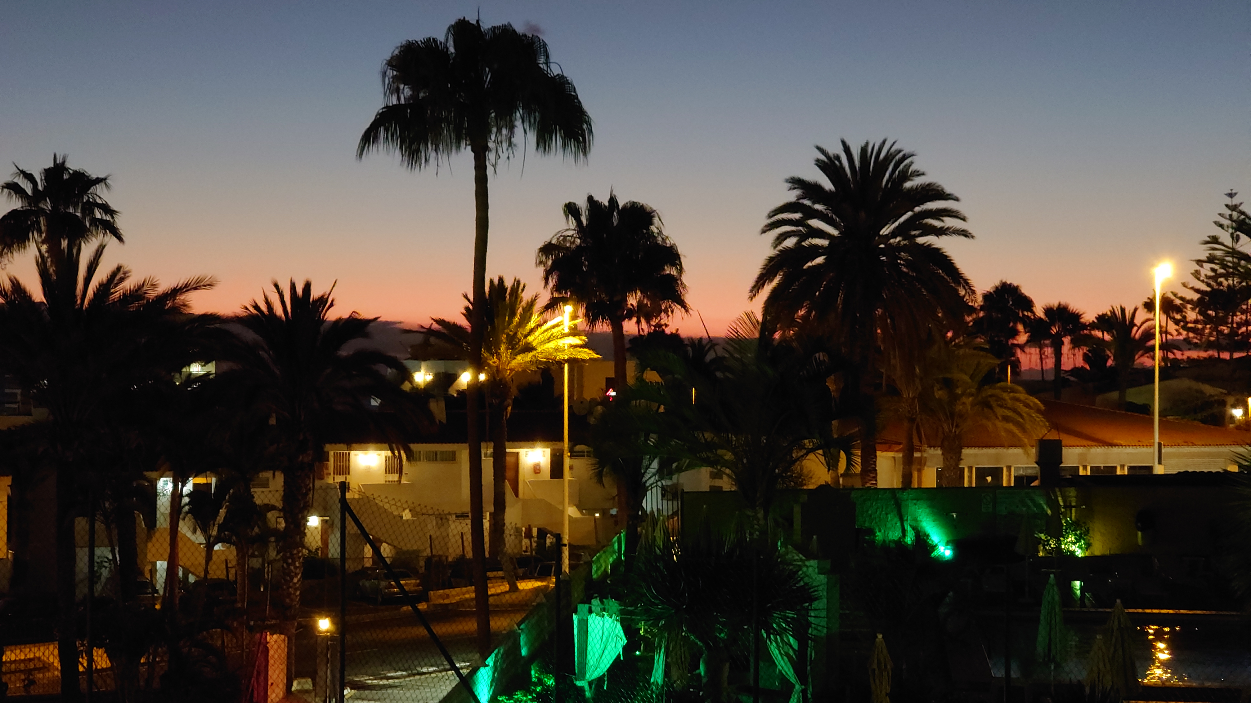 War also alles in allem ein dreisprachinger Bürotag auf öffentlichen Bänken mit Flutscheis gegen das Pochen. Ob das alles richtig ist, sehe ich morgen. Meine schöne Casa Rural auf der Höhenlage dürfte ich kulanterweise durch ein nettes, verständnisvolles Gespärch kostenlos stornieren. Jetzt hab ich einen billigen Hotelblock, das Urlauber in den 20ern und Briten attraktiv finden. Mich begeistert der schwimmbadgroße Pool und die Nähe zum Zahnarzt. Vom weiten sieht man ganz klein den Teide. Jetzt weiß ich, dass ein Aufstieg vom Meer bis zum Gipfel vier Tage dauert. Erstmal rüber zur Apotheke Ibu-Vorrat auffüllen. 30 Stück für 1,89 Euro, die sind billiger als Hustenbonbons auf den Kanaren. Zu allem Überfluss habe ich jetzt auch noch weißen Belag auf meiner Zunge bekmen, der wohl auch Auslöser meiner Rachenprobleme ist, sagt google, und Mundsoor heißt, ein Anzeichen von Immunschwäche. Hatte ich noch nie außerhalb einer Erkältung. Dagegen gibt's was zum Auftragen und gurgeln für 2,79 Euro. Ich habe ja keinen Arzt, der sowas bestätigen könnte, aber ich entscheide, dass es dafür einen Versuch wert ist. Und dann beplansche ich den Pool. Das ist ein überlebenswichtiges Kopfmedikament: 20 Minuten rumblubbern können oder Sauna und es war ein guter Tag.