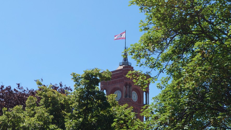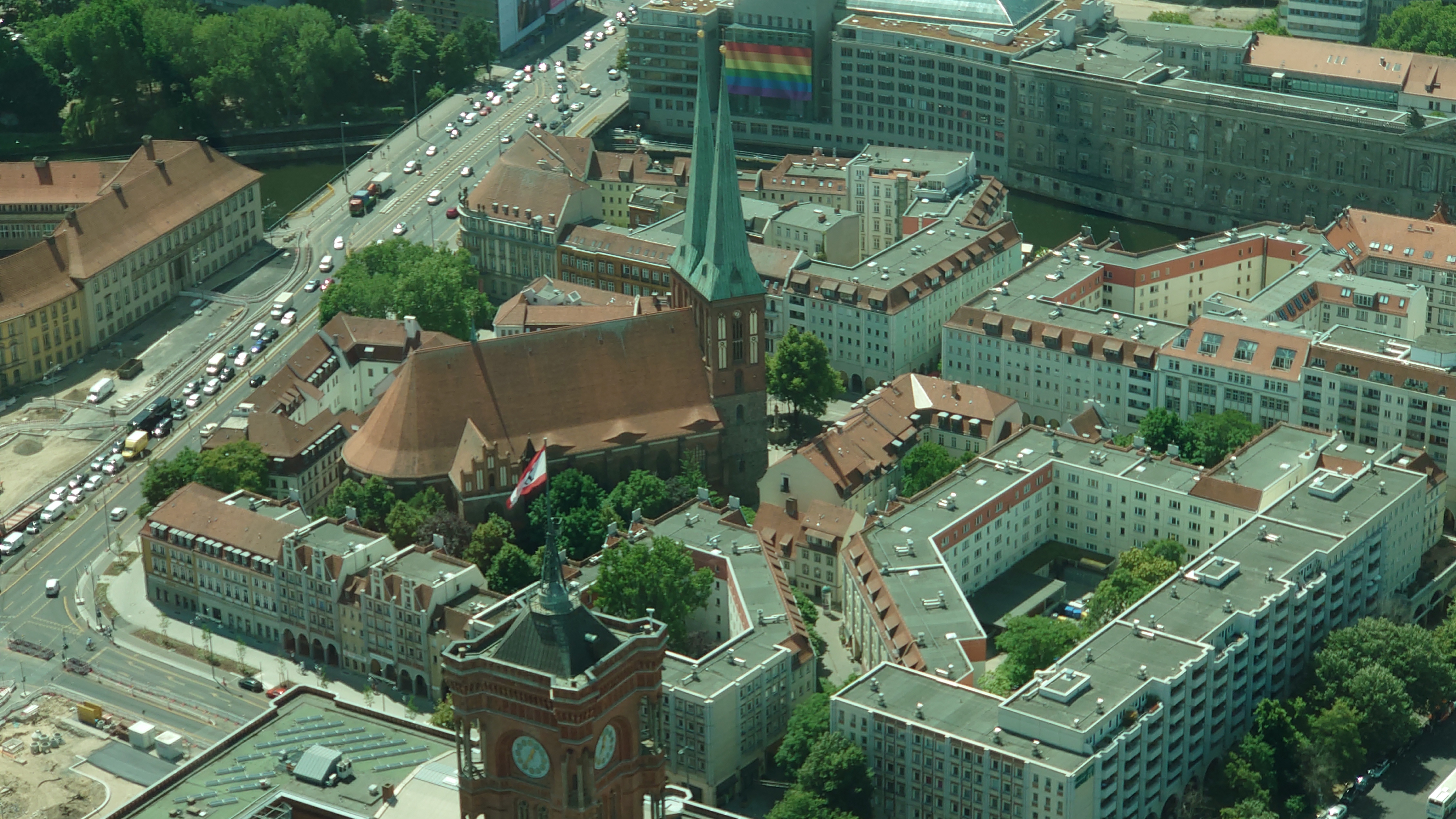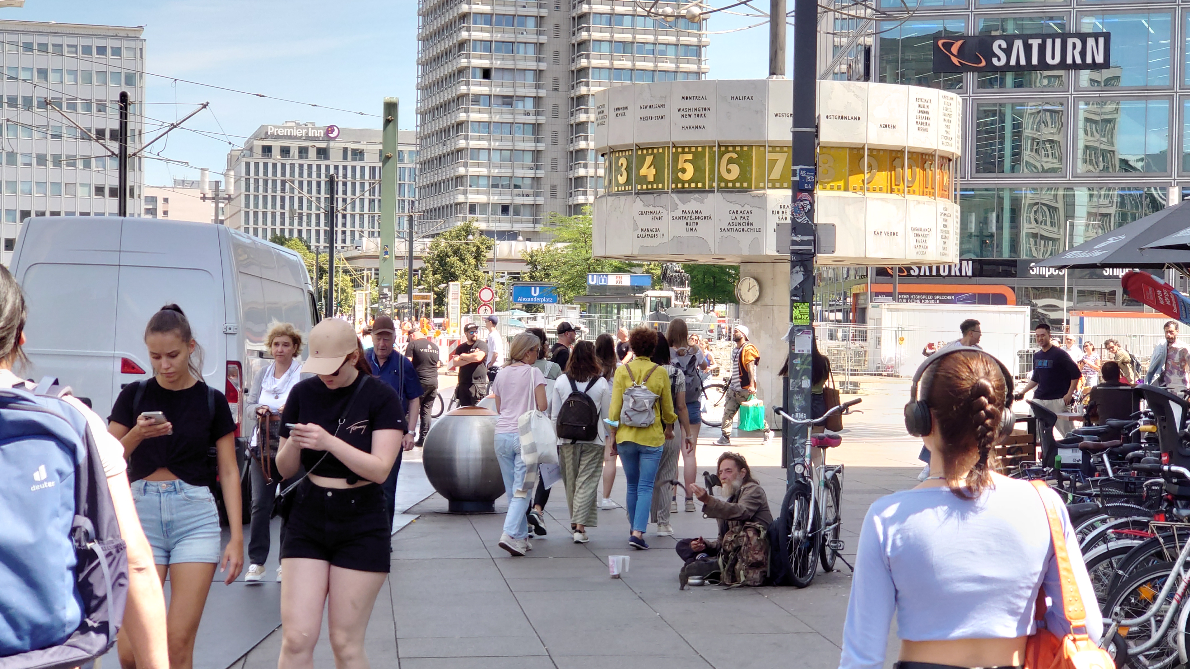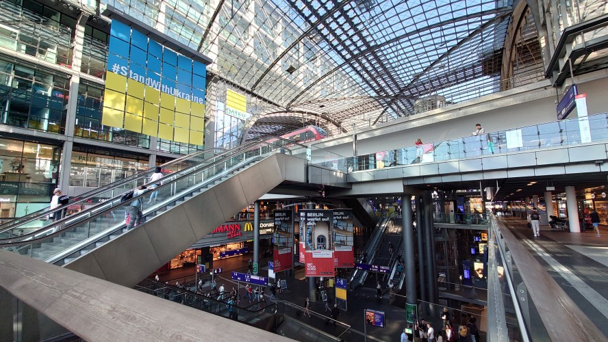 Zumindest hier im Innenstadtbereich wirkt Berlin jung und aufgeräumt. Ich Frage mich, ob das nur Fassade fürs Publikum ist oder sich in der Zeit wirklich etwas verändert hat. Überall prangen riesige Toleranzbotschaften, an Baustellen, im Bahnhof. Überall Regenbögen. Vor dem berliner Rathaus vier Flaggen wie selbstverständlich zugehörige nebeneinander: Berlin, Deutschland, Europa, Ukraine. We all #standwithukraine. Mir fällt auf, dass ich den täglichen Schreckensbericht aus dem Donbass tatsächlich auf dem Weg verdrängt habe. Da war ja noch was. Ich glaube, die Botschaft, die über die blau-gelben Flaggen ausgesendet wird, dass da noch etwas sehr Unfriedliches ist, ist wichtiger, als jetzt im Geiste Ukrainer zu werden. Friedenswille und blau-gelb passen zur Zeit einfach nur gut zusammen.