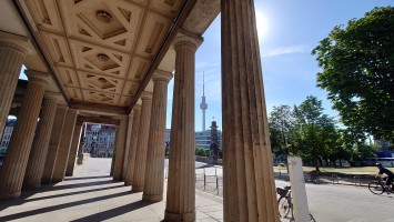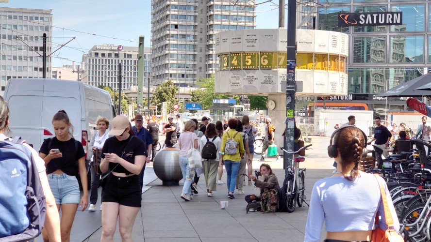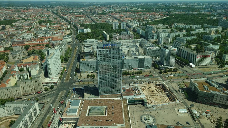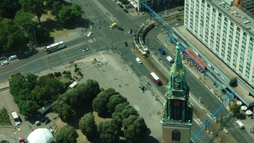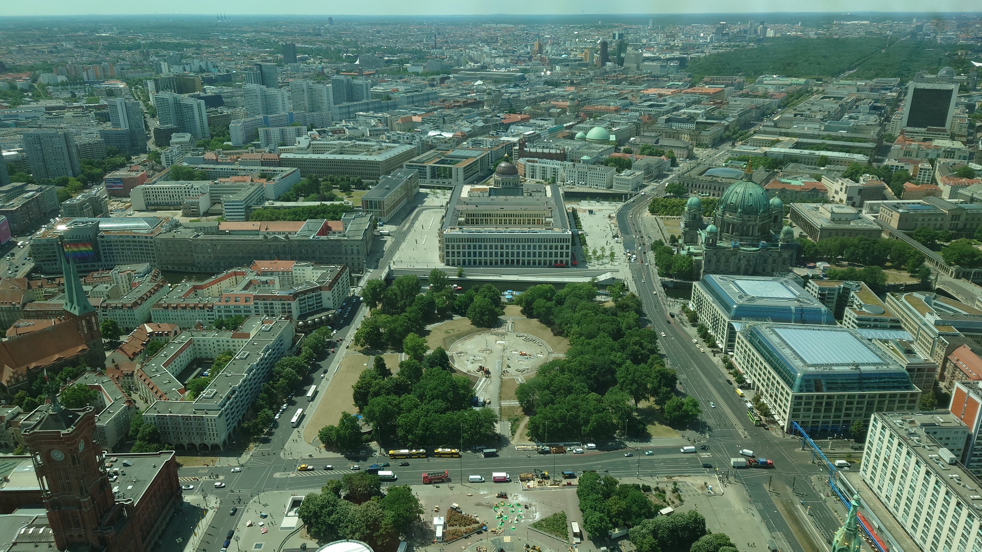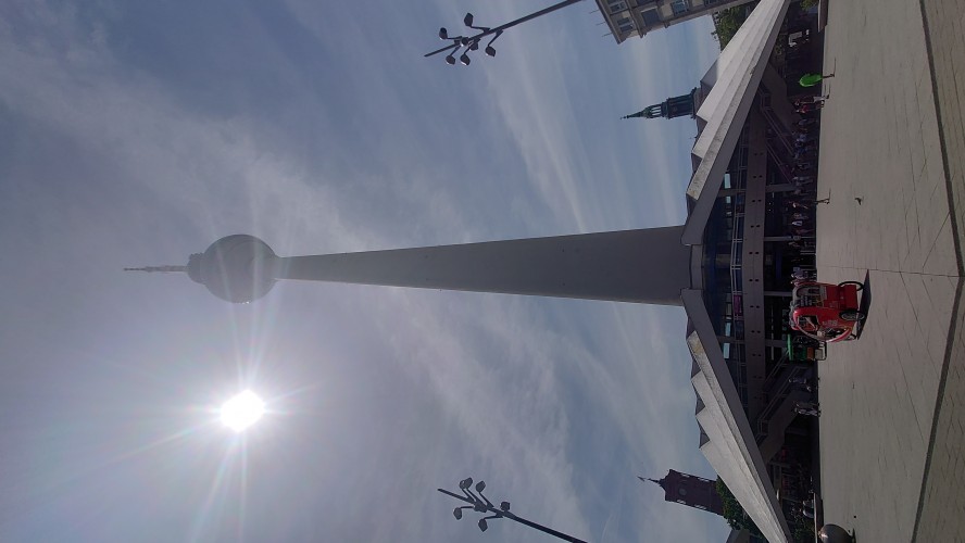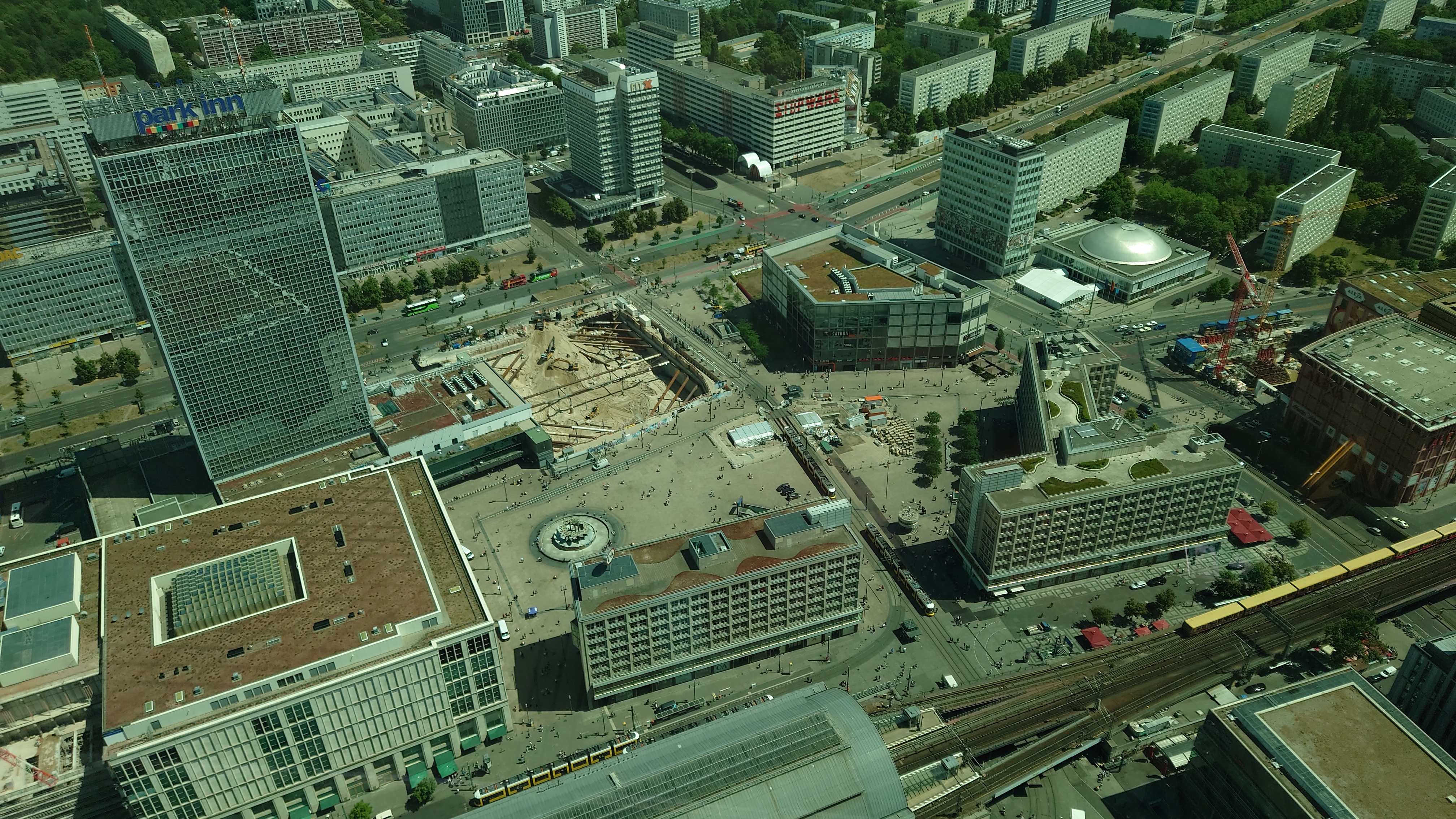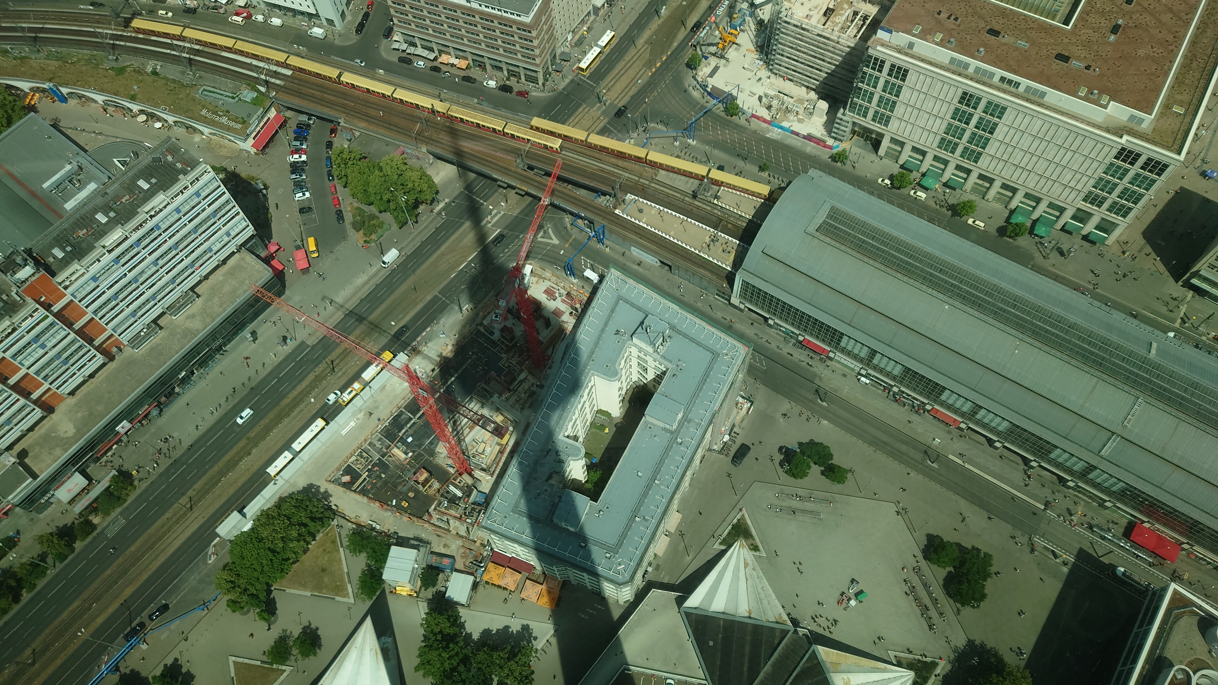Ich beschließe, einfach in der morgentlichen Sonne in Richtung Fernsehturm zu laufen. 16 Jahre war ich schon nicht mehr in der Innenstadt von Berlin und ich bin überrrascht wie beruhigt sie auf dem Weg zum Alexanderplatz geworden ist. Man gleitet ja schon am Hauptbahnhof quasi ein in die Parklandschaft vor dem Regierungsbezirk. Viele Schulklassen sind unterwegs um das Deutsche Standardpaket an Geschichte zu erfahren, auch schon im Hostel. Ein Plattenladen fällt mir weiter auf dem Weg ins Auge. Er benennt sich als Kultur-Kaufhaus. Schon erstaunlich. Vinyl ist mittlerweile vom abgeranzten Hochregallager, das um jeden Cent Marge kämpft wieder mitten in die Bevölkerung gelangt als top aktuelle Art des Musikkonsums. Künstler bringen ihre Musik gerade auf Seiten wie Bandcamp eher als Platte denn als CD heraus. Wer will schon CD, wenn’s die große alte Schwester gibt. Dabei geht es gar nicht so sehr darum sie abzuspielen, weil es das Medium zwingend braucht wie bis in die 80er. Die Notwendigkeit ist obsolet. Es geht eher darum, einen physikalischen Anteil eines Künstlers zu besitzen. Der Preis ist dann schon fast Nebensache. Die Dinger sind immer teuer.