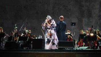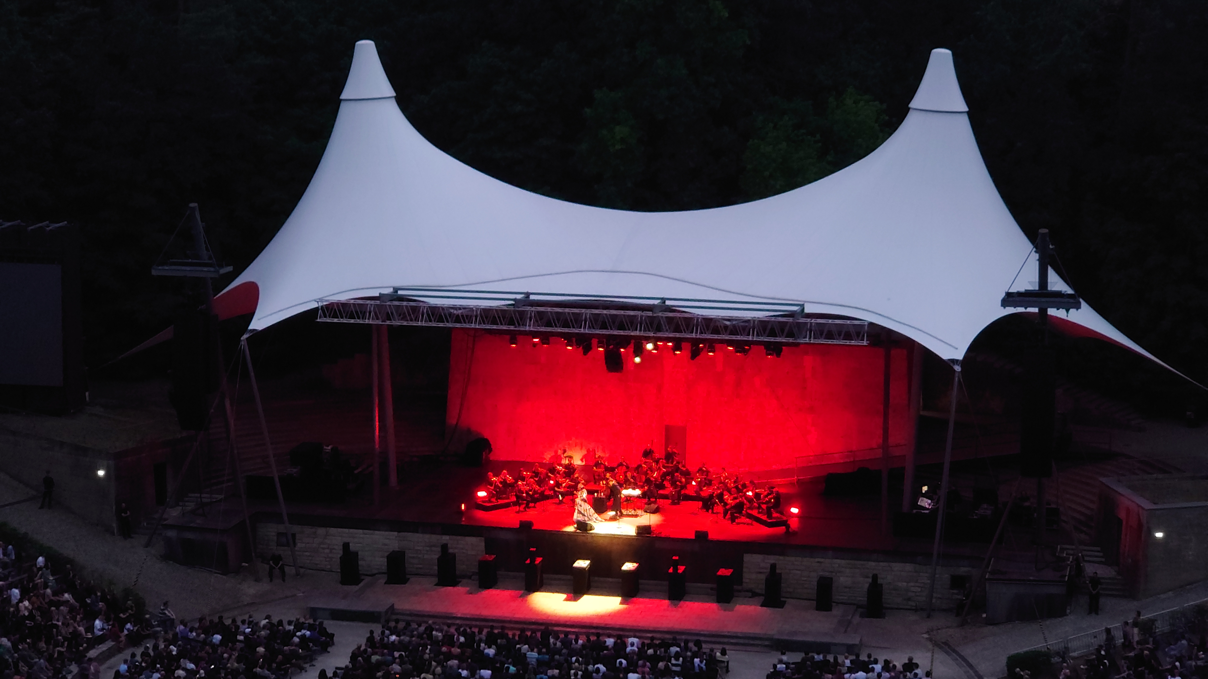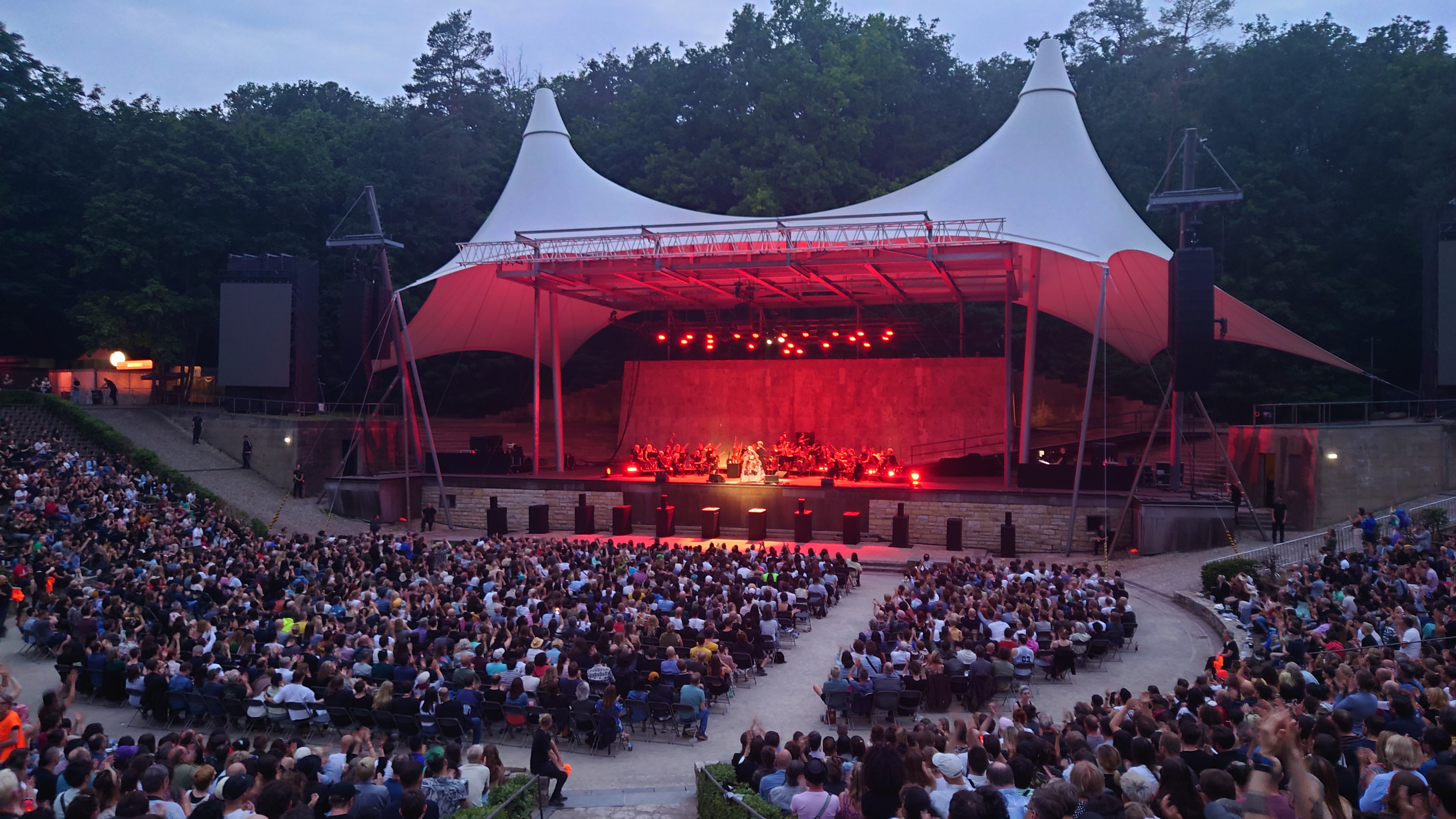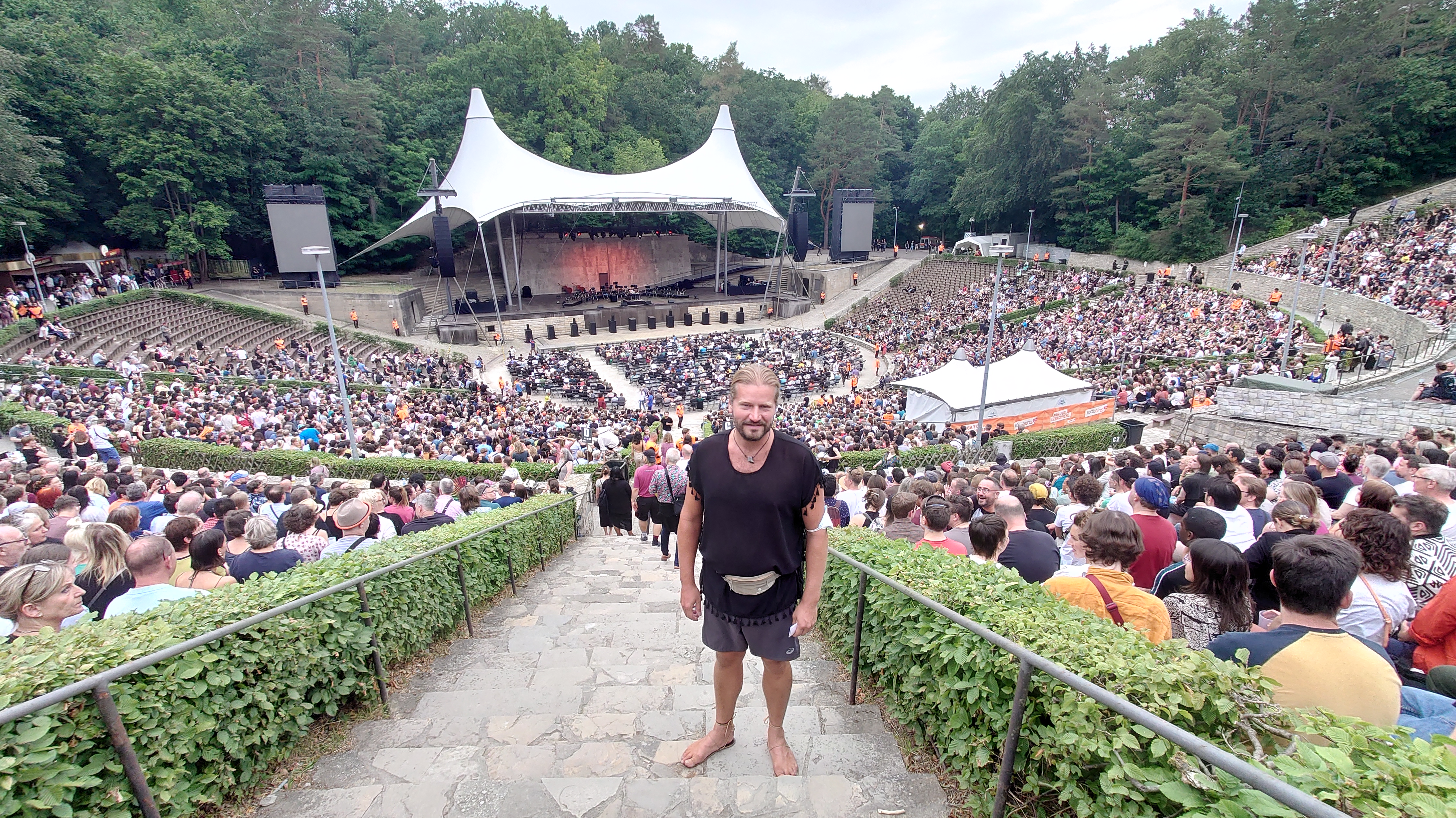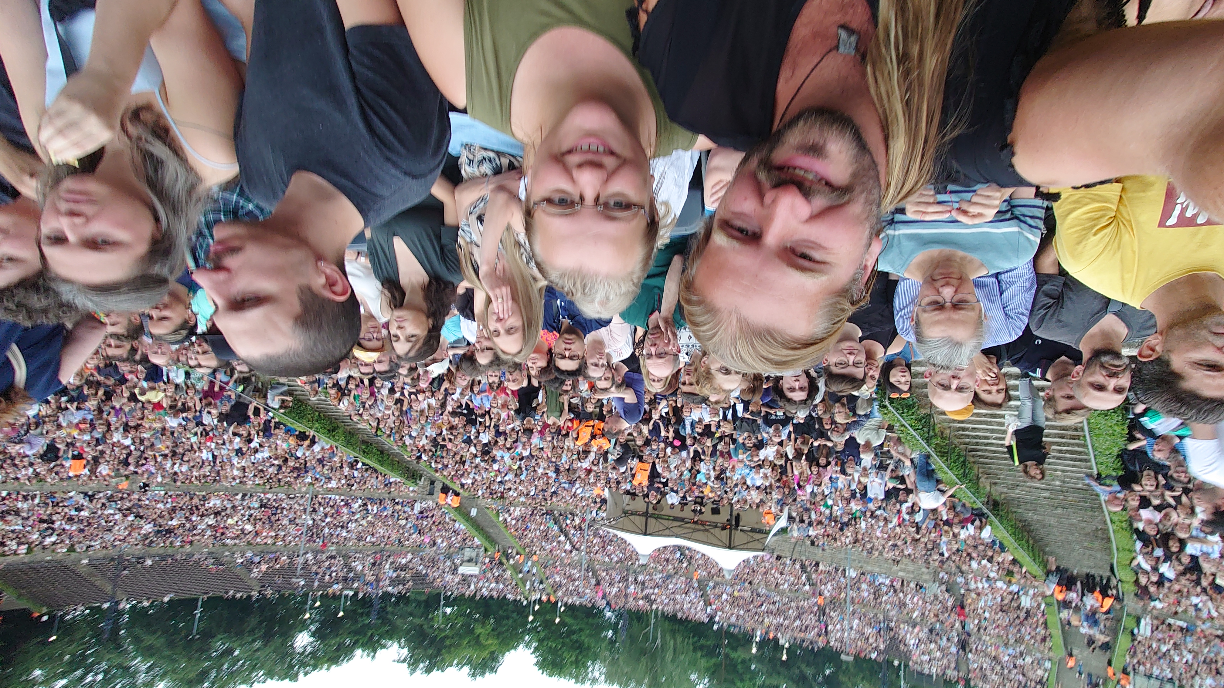 Das Orchester tritt auf, dann schwebt Björk als riesiger Wattebausch hinein. Auch sie ist exzentrisch, auch wenn sie mittlerweile 56 ist. 10 Jahre ist es her, dass ich mit ihr auf Island per Zufall mal gemeinsam In einem Hot Pot gesessen habe. Das hier ist das Produkt Björk. Das Konzert beginnt. Einst experimentelle Musik rein für Orchester. Es wirkt grandios. Das Publikum schwelgt in Nostalgie und Björk bedient sie. Es werden zum Großteil die Klassiker der 90er Jahre inszeniert, die alle freudig erwarten. Ich muss sagen, ich bin froh darum. Das war die Zeit, in der sie mich begeistert hat, eine Zeit, in der alleine der Gedanke daran, jemand könne als Isländerin kulturelle Bedeutung in der Welt erlangen, schon exzentrisch war. Das hat sich 30 Jahre später gänzlich gewandelt. Viele sind ihr gefolgt und Björk ist in meinen Augen so etwas wie eine phantastische Punk-Mama für die nachfolgenden Generationen geworden und wird als solche geliebt, auch wenn sie musikalisch eigentlich schon einen Schritt weiter sind. Sie selbst ist unter ihrem voluminösen Kleid kaum zu erkennen. Soll man sie überhaupt erkennen oder soll man nur das Kunstwerk begreifen. Schlussendlich kommentiert aber auch sie die Außergewöhnlichkeit der Umstände und nimmt damit für einen kurzen Moment Kontakt mit dem Publikum auf, der in Anbetracht der Reaktionen sehnlichst erhofft wurde. Ansonsten habe ich oft das Gefühl, dass sie ihren privaten Kern und bewusst in dick mit ihrem Kunstprodukt ummantelt, um ihn gegen Eindringlinge abzukapseln und zu schützen. Das ist irgendwo schade. Andererseits ist sie so etabliert, dass sie sich selbst so leisten kann, wie sie es will. Und man ist dankbar für jedes deutsche „Dankeschön“, das sie nach jedem Titel bekundet.