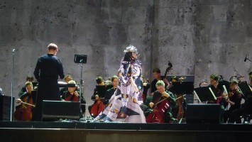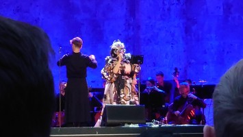 Die Musik war toll und reißt auch mich zurück in meine musikalische Sturm-und-Drang-Zeit Ende der 90er zurück, als man gerade Abitur machte und sich selbst unter anderem über die Musik beweisen wollte, dass man was besonderes ist. Ich wünschte mir aber, dass sie als jung gebliebene Elfe im gelben Kleid über die Bühne fliegen würde wie beim MTV Unplugged Konzert 1994. So habe ich sie in meine Erinnerung zementiert und merke, dass ich mir nur widerwillig eingestehe, dass diese Zeit nunmehr Nostalgie ist, die zwar viele erwarten, aber die auch eben ihre Zeit hatte. Ich hab alles gesehen, was ich von Björk sehen wollte. Die stetige Wiederholung dessen, was ich als junger Mensch hatte reicht mir. Das Rad dreht sich weiter. Alles Neue, was sie produziert, muss sich automatisch an dem Jugendgefühl von damals messen. Neu will doch keiner. Dabei stand Björk in den 90ern doch für das widerstrebende Neue. Ist doch irgendwie widersprüchlich. Eine Björk würde wollen, dass ich die Veränderung als den Kern begreife, glaube ich. Aber dass ich auch klar das Kunstprodukt von der Person trenne. Für den heutigen Abend wird die Illusion aufrecht erhalten, es könne so weitergehen wie als Jugendlicher. Einerseits weil Björk sich mit ihrem Produkt ummantelt, andererseits weil kein Stück ihres aktuellen Albums gespielt wird. Es würde nur müde beklatscht werden wie das ewig getragene, schwermütige „Black Lake“, das in stetiger Erwartung eines baldigen Endes immer wieder unpassend zwischenbeklatscht wurde.