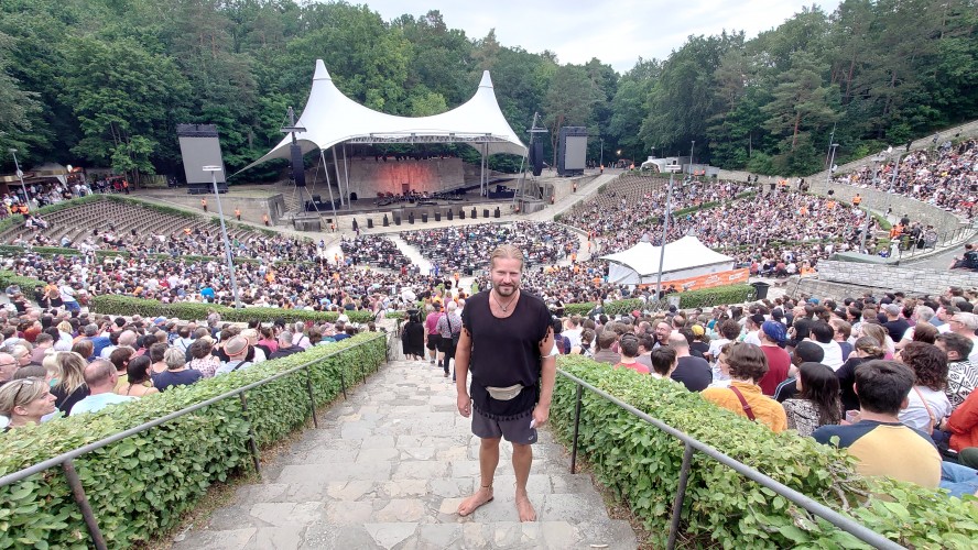 Wir checken ein, ich beschwimme die Havel und dann geht es auch schon los, was essen, in die Waldbühne. Ich wollte sie immer schon sehen. Für Björk mit Orchester erst recht. Das Amphitheater ist voll. Die Menschen sind extrem Bunt, im Alter wie im Aussehen. Viele verwirklichen sich an sich selbst so exzentrisch wie Björk in ihren Bühnenoutfits. Wir finden es toll. Frances meint, Bunte Menschen sind die Interessanteren. Und sie hat Recht. Der vordringlichste Impuls bei vielen, selbst mir, ist das Außergewöhnliche nicht als passend oder richtig zu deklarieren. Mir scheint, das tun wir mehr zum Selbstschutz, als dass es tatsächlich nicht richtig ist, Selbstverwirklichung zum Ausdruck zu bringen. Dabei brauchen wir eigentlich Menschen jenseits der Mitte, damit wir sie uns anschauen können, wenn sie eigene Welt mal wieder erdrückend farblos ist. „Sie haben aber eine tolle Farbe bekommen“, stellte ein älterer Mann am pichelsberger S-Bahnhof losgegangen bin. Man wird gleich ansprechbarer mit Farbe.