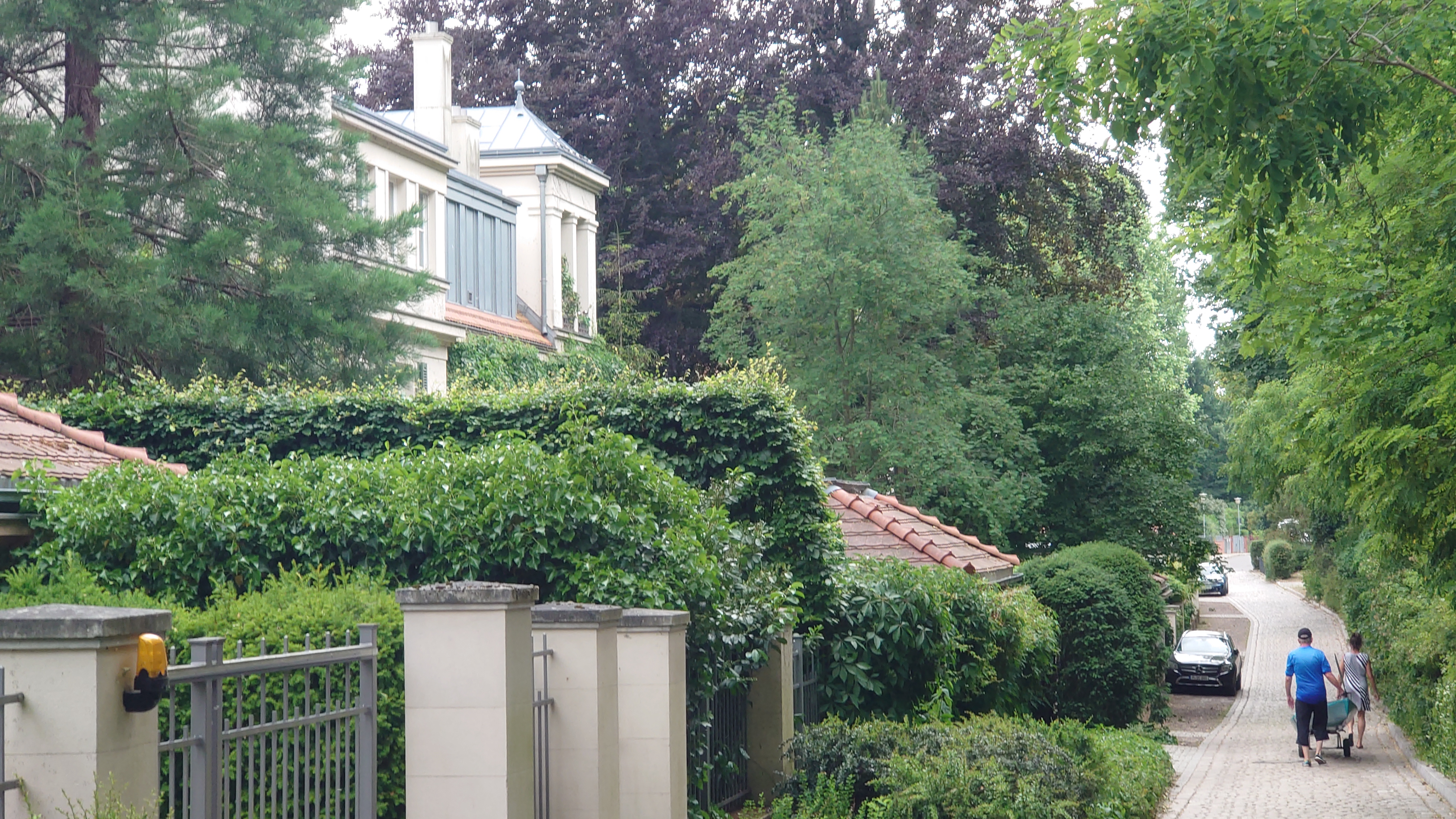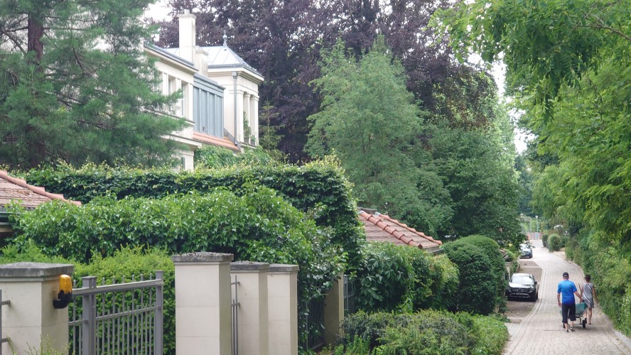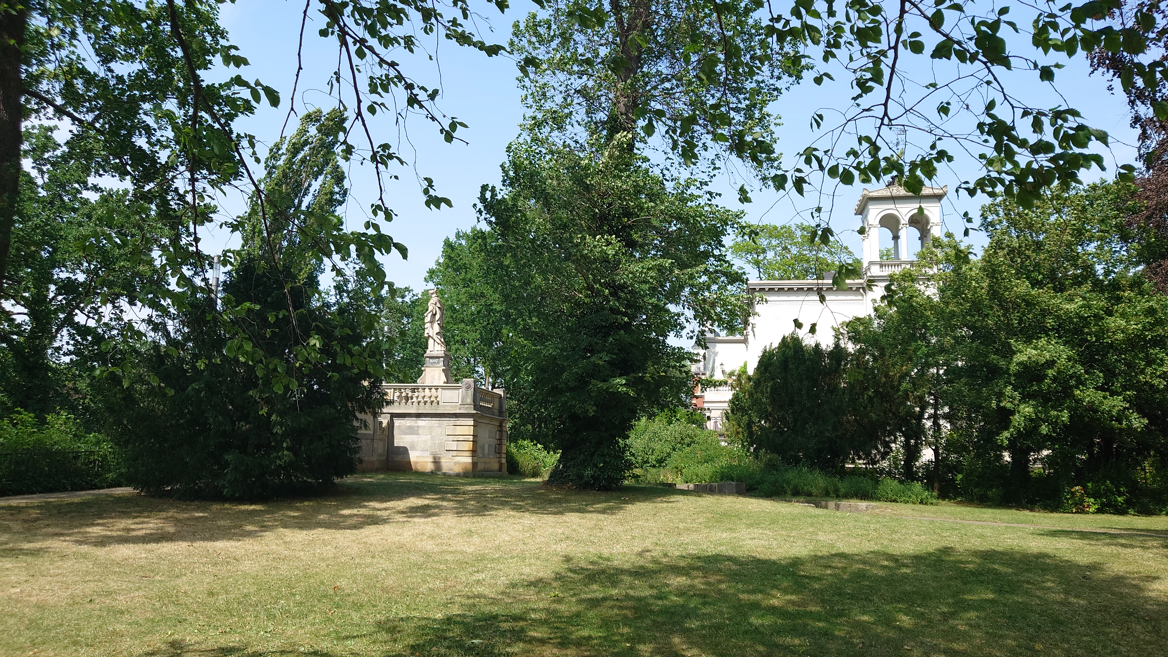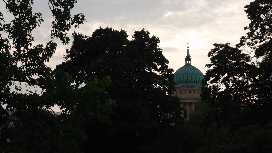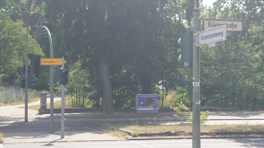 Irgendwann erreiche ich die Königsstraße bzw. B1 bei Wannsee. Jetzt weiß ich, was der Wannsee ist, der früher mal eine Grenze war. Irgendwie hatte der See für mich bis dato immer eine Art mystische Aura, etwas Besonderes. Keine genaue Ahnung warum. Die Königsstraße führt weiter zur Glienicker Brücke, dem Grenztor zwischen Ost und West und dramatischer Mittelpunkt einiger Spionenaustausche zwischen Ost und West. Dort wurde ich vor 10 Jahren mal beim Joggen durch eine Wildschweinherde erschreckt, als ich beruflich in Potsdam war. Mich ziehts weiter an den Bahngleisen entlang, am Grab von Heinrich von Kleist vorbei, weiter durch die Wälder bis hin nach Glienicke und in den Babelsberger Park, ein Weltkulturerbe, wie ich erfahre. Vom weiten donnert es, aber hier kommt nichts an. Keiner ist groß im Wald anzutreffen und so hat es schon was Unheimliches an sich. Naja, falls ein Platzregen kommt, nehme ich ihn dankbar an.