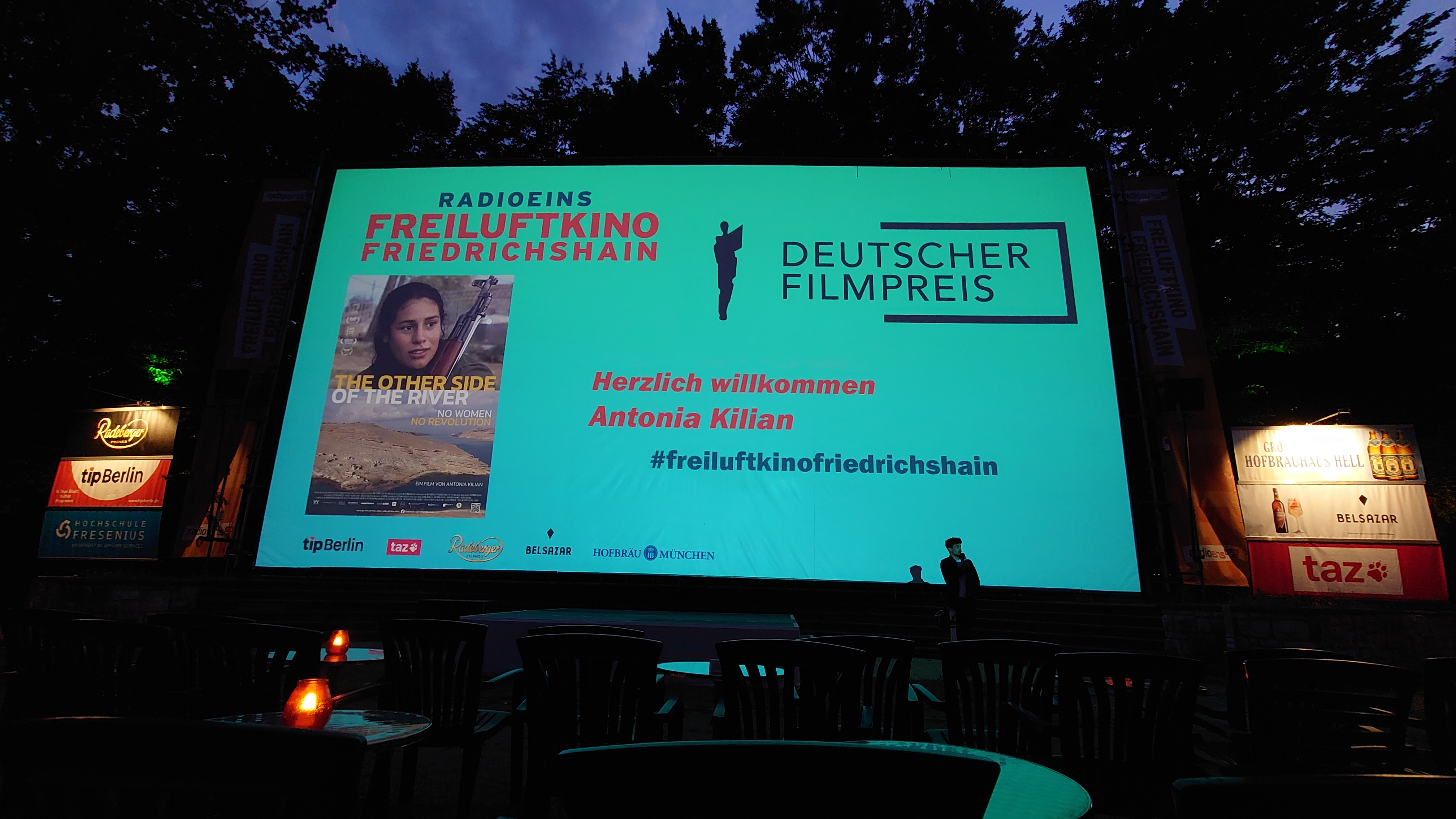 Während der Film läuft, sackt die Temperatur gnadenlos um 20 Grad ab. Einige haben damit offensichtlich nicht gerechnet. Ich bin froh, mir beim Einlass Decken mitgenommen zu haben. Es ist voll. Alles ist in gemütliches Dämmerlicht getaucht. Ich setze mich direkt vor die Leinwand in Reihe 3. Ich verstehe nicht, warum man sich hinten hinsetzen sollte. Ich möchte geroße Leinwand im Kino. Ich möchte im Bild versinken können. Es geht um Syrien nach dem IS, ein Dokumentarfilm über eine syrische Polizistin. Es geht in letzter Zeit häufig um Krieg, wenn aktuellen Geschehnisse medial präsentiert und prämiert werdund