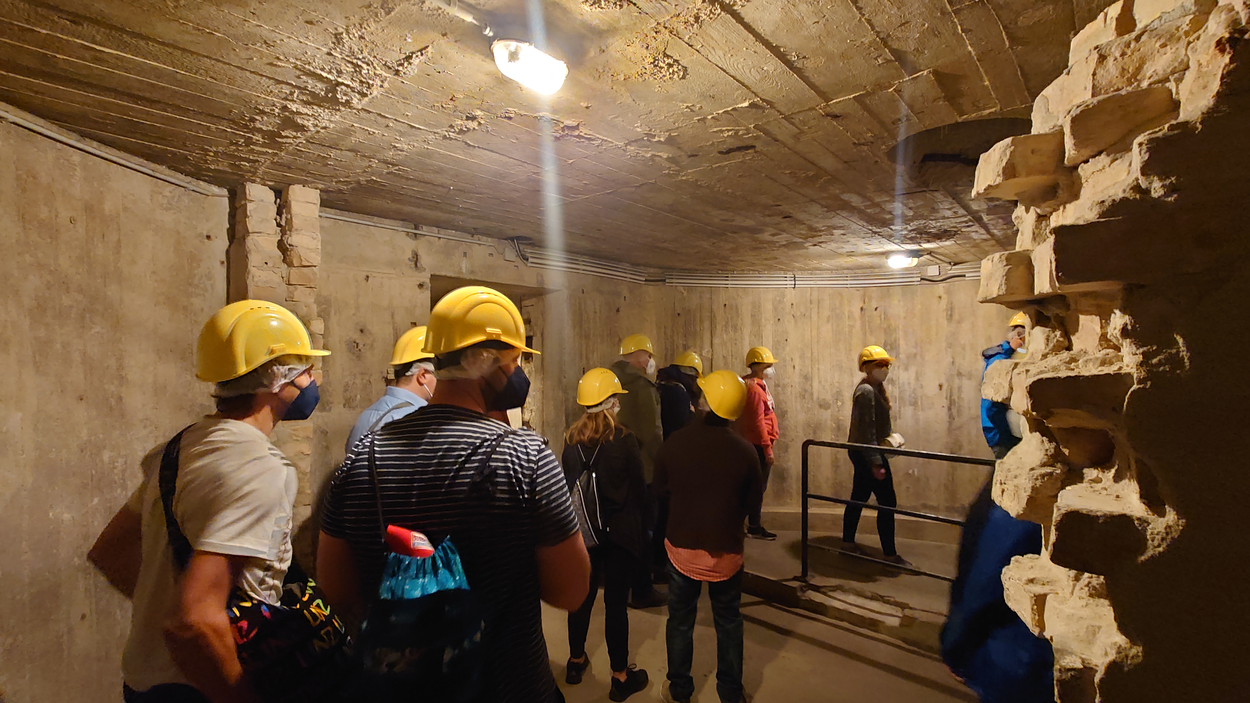 Die Tour ist spannend. Ich liebe es, solche Katakomben zu erkunden und ihre Geschichte zu begreifen. Die Zeit wird dadurch auf unwirkliche Weise wieder real und ich wünschte mir sehr, der derzeitige blaugelbe Beistand wäre nicht notwendig. Geschichte wie diese zeigt, dass es das ist. Man muss solche Türme gedanklich freilegen und nachts anstrahlen. Aus jener Zeit hat nur ein Soldat die letzten Angriffe auf den Flakturm überlebt. Einer von 166. Das ist im Asow-Stahlwerk nur unwesentlich anders.