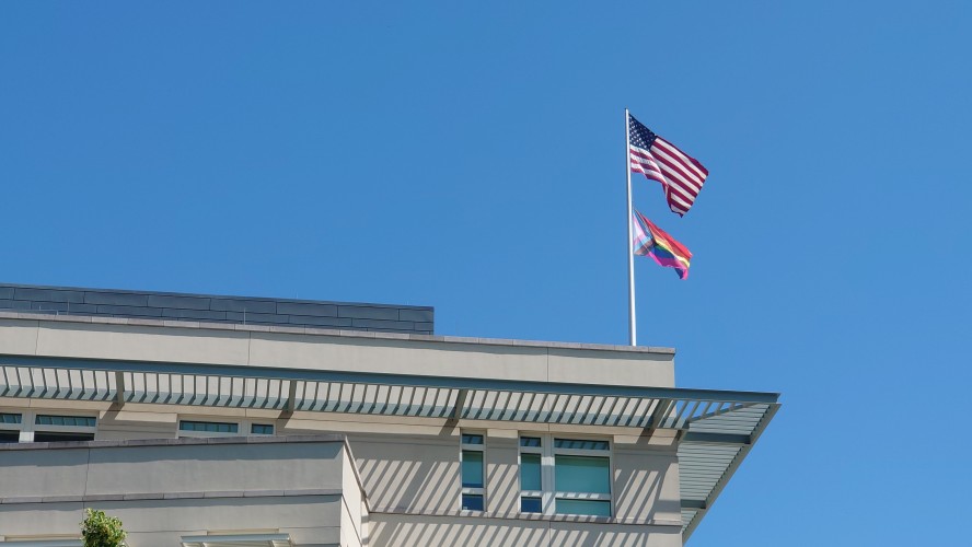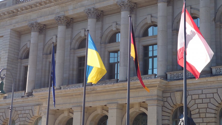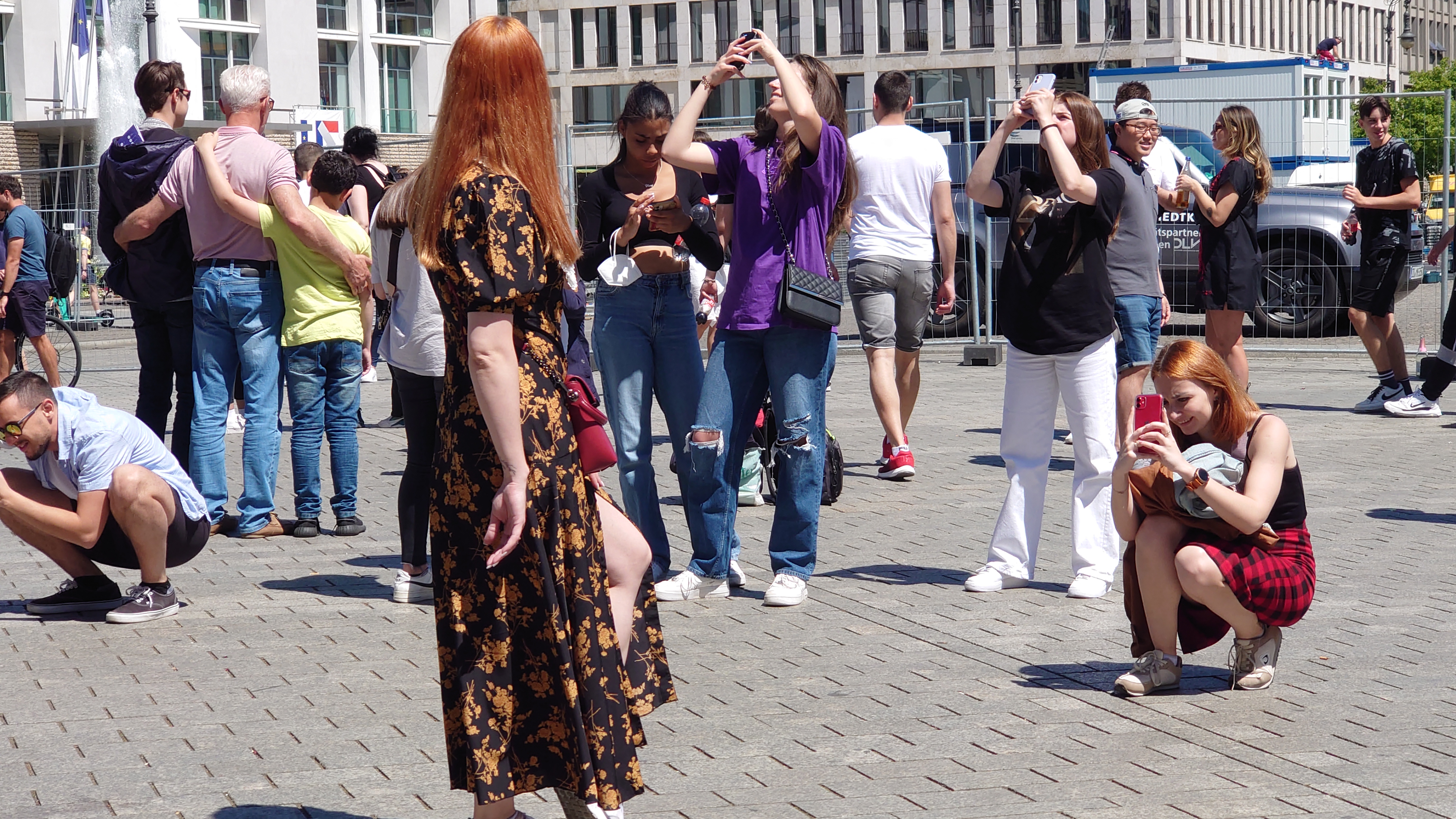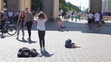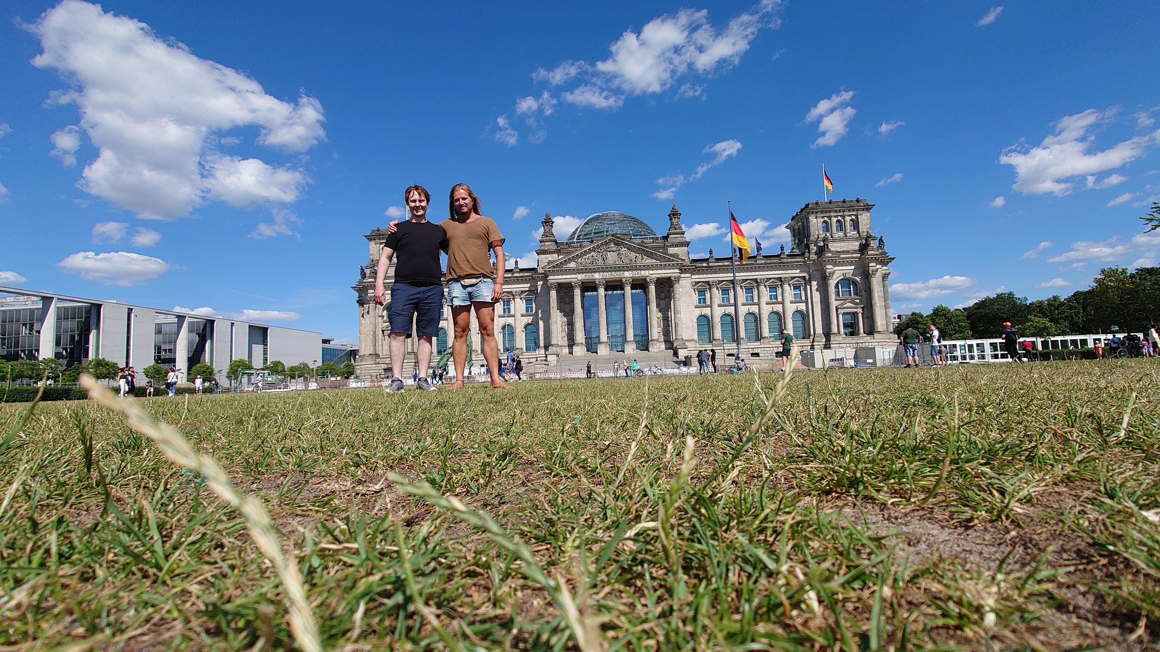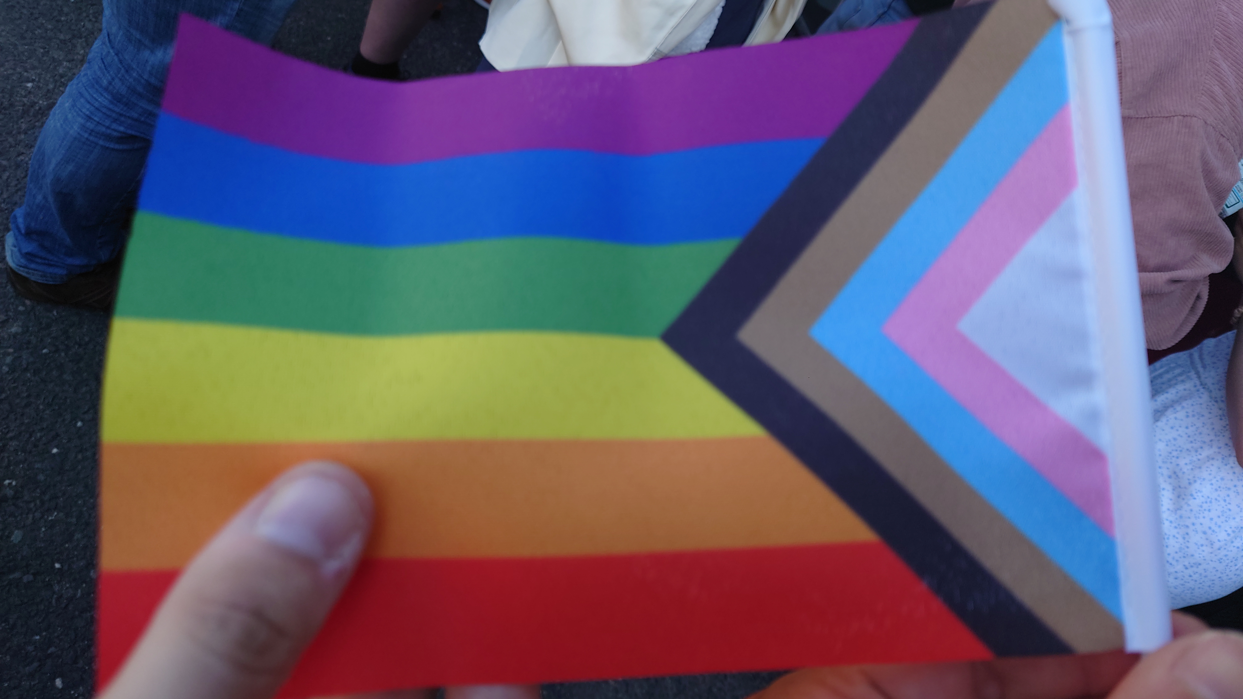 Das ist auf Dauer schon berauschend. Kultur ballt sich in dieser Stadt zu einem unübersichtlichen Klumpen, wenn man nicht aufpasst. Überall stolpert man darüber und es lohnt sich genauer hinzusehen. Ich selbst kann in der Zeit hier nur Funken wahrnehmen, aber die dafür umso intensiver, bis ich schließlich Sebastian abhole. Auch er ist nicht häufig in der Hauptstadt. Nun sind wir beide hier aus gutem Grund. Also lass uns vor wichtigen Gebäuden unserer Demokratie ein paar Selfies machen. Nicht nur wir tun das. Alle tun das, manche sehr exzessiv, viele Mädchen inszenieren sich routiniert als Social Media Produkt. Überall fliegen Regenbögenflaggen im Wind. An der Amerikanischen Botschaft hat sich die Flagge sogar erweitert um ein pastellfarbenes Dreick. Der Bahnhof, Kirchen, Museen, Häuserfassaden. Alle stellen Regenmogenflaggen und vor allem Ukraineflaggen zur Schau. Ich hoffe, dass die Bewegungen hinter den ganzen neuen, omnipräsenten Flaggen überall im Land wirklich verstanden werden. Ich habe das Gefühl, alle werden gerade Pride-Fans und Ukraine-Fans und holen sich passend zu ihrer neuen Geschmacksrichtung die passenden Flaggen, um sie sich ins Fenster zu hängen und sich zu bekennen. "Ich bin einer von den Guten. Ich habe mein Werk getan, um mich vor der dunklen Seite der Macht zu distanzieren." Das hier ist aber kein Popkonzert. Ich bin nicht schwul, ich bin kein Ukrainer, so wie ich auch kein Syrer, Äthiopier oder Afghane bin. Ich male mir keinen blaugeben Wachsmalerstreifen auf die Backe wie bei der Fußball-WM. Ich müsste mich für viele Flaggenfarben Kriegsgeflüchteter bekennen. Die Pride Progress Flagge bündelt sie nahezu alle. Berlin ist nicht Ukraine. Berlin ist die Hauptstadt von Deutschland mit all seinen Farcetten, seiner hoffentlich nicht nur zur Schau gestellten Offenheit für Unterschiede und mit einer funktonierenden Asylpolitik für Flüchtlinge. Ein Bekenntnis zu Pride oder der Ukraine ist nicht das Selbe wie ein Bekenntnis zu Aurora.