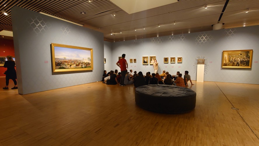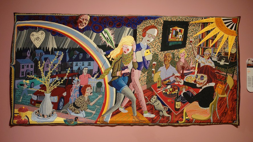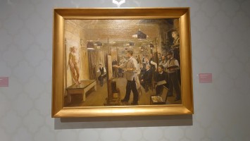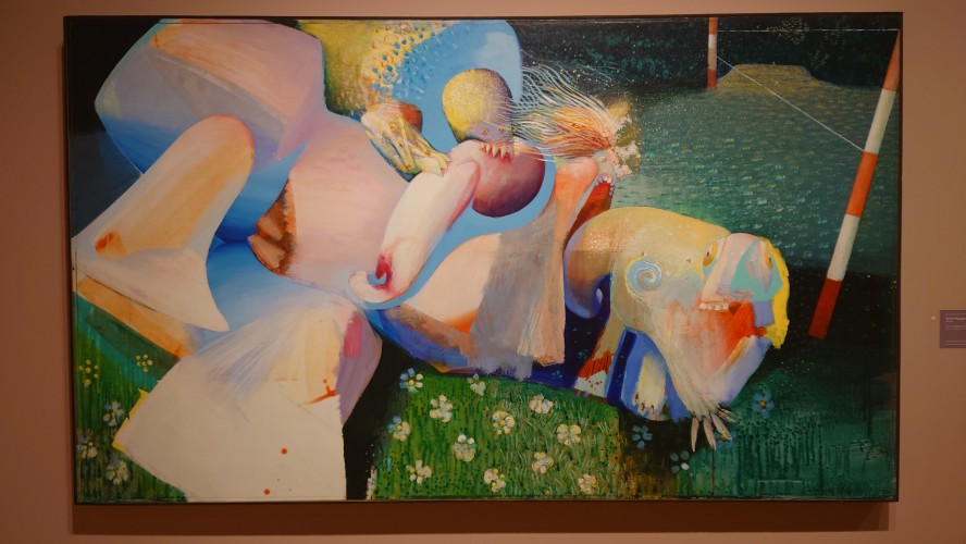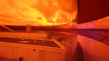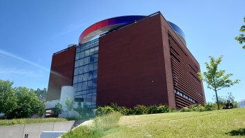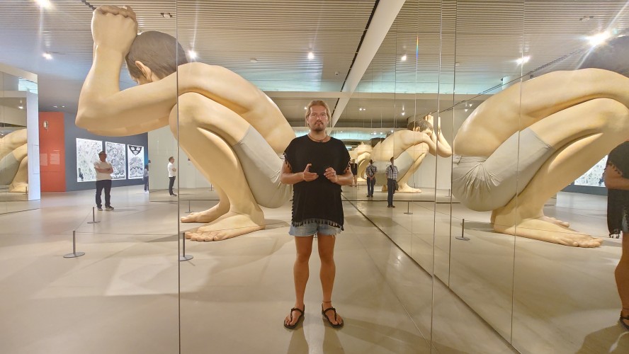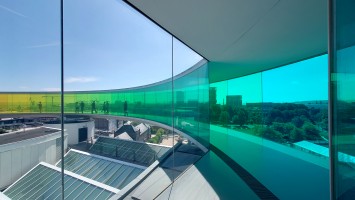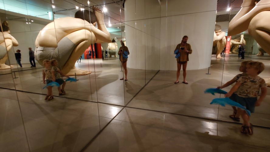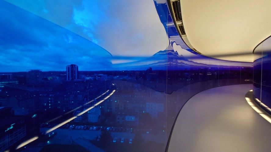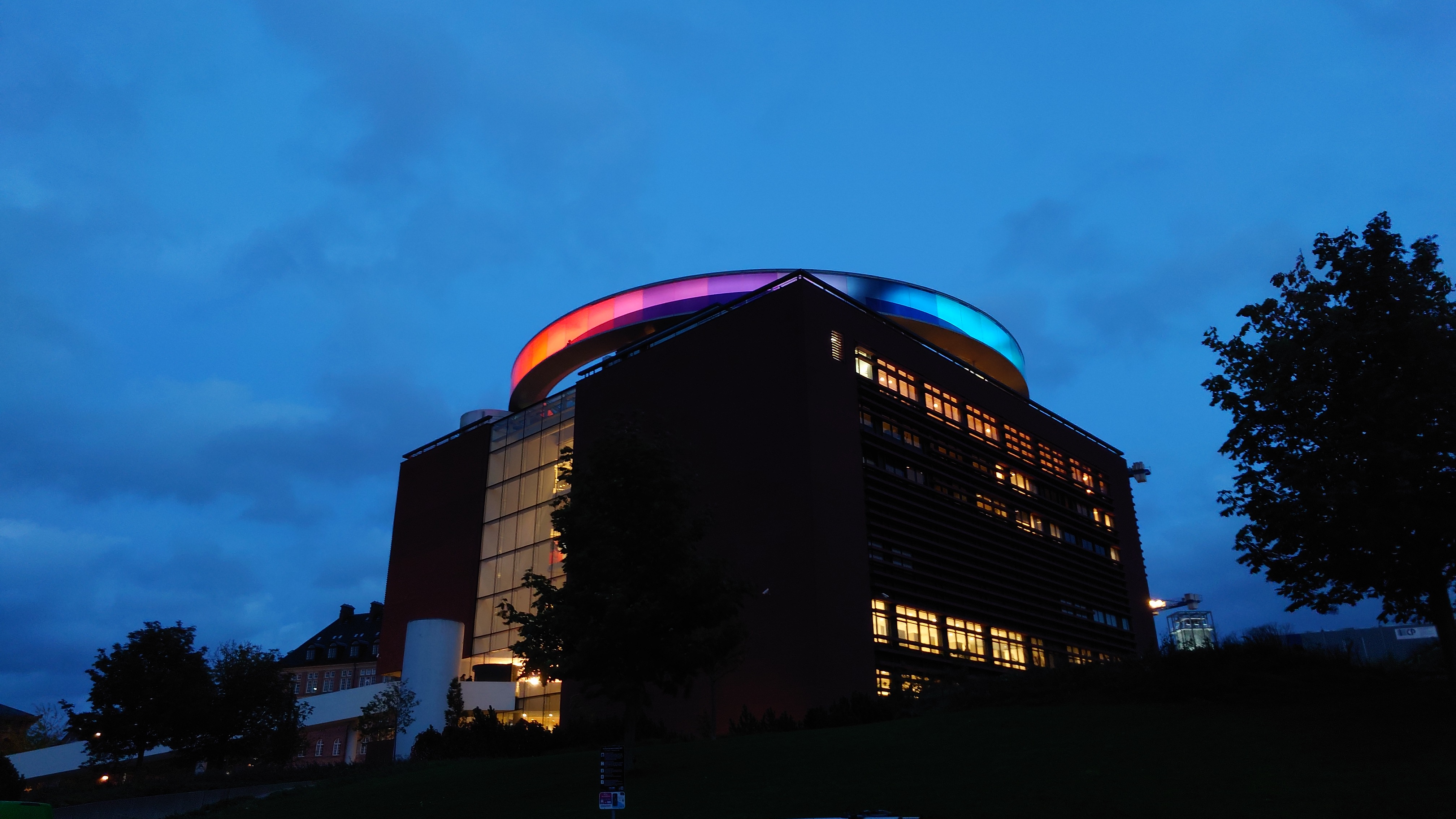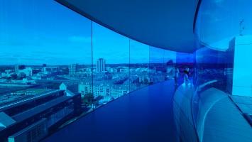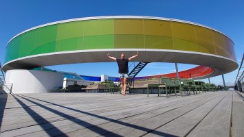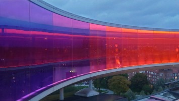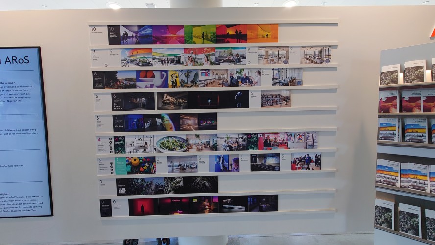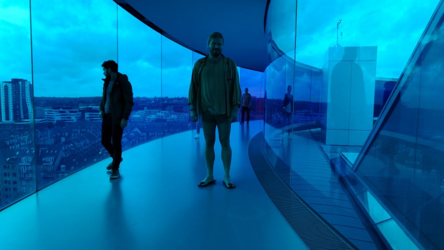 Ich bin gerade in Århus, rufe ich mir noch einmal ins Bewusstsein. Ich möchte einen leisen Abspann haben heute. Ich beschließe die Heimfahrt noch etwas hinauszuzögern und das ARoS Kunstmuseum zu besuchen, auf dessen Dach im zehnten Stock ein gewaltiger, reiseendwürdiger Regenbogen-Wandelgang ruht und einen Rundumblick über die zweitgrößte Stadt Dänemarks liefert. Darunter ist auch eine Kunstausstellung dänischer Künstler von gestern und heute. Ich gebe zu, deswegen bin ich überhaupt nicht hier, aber die Vielfalt und die Darbietung beeindruckt mich dennoch sehr. Viele Schulklassen sind heute hier. Es geht auf die Ferien zu. Draußen fahren häufig hupende Lastwagen am Museum vorbei, gefüllt mit 16-jährigen Schulabsolventen, die ebenfalls ihren Terminus feiern. Die großen Kinder werden in die Künste eingeführt. Sie sitzen im Kreis um eine Führerin, die sie intensiv in den Besinnungsprozess mit einbezieht. Die kleinen Kinder sind wie ich… sie wollen in erster Linie den Regenbogenglaskreis und Farbe erleben.