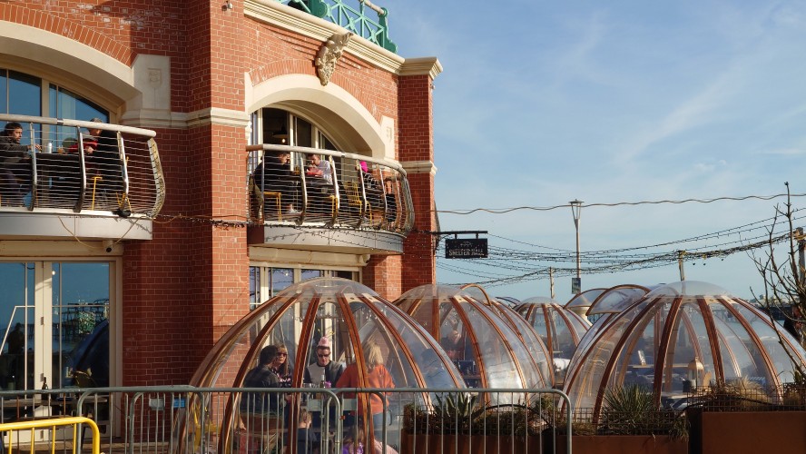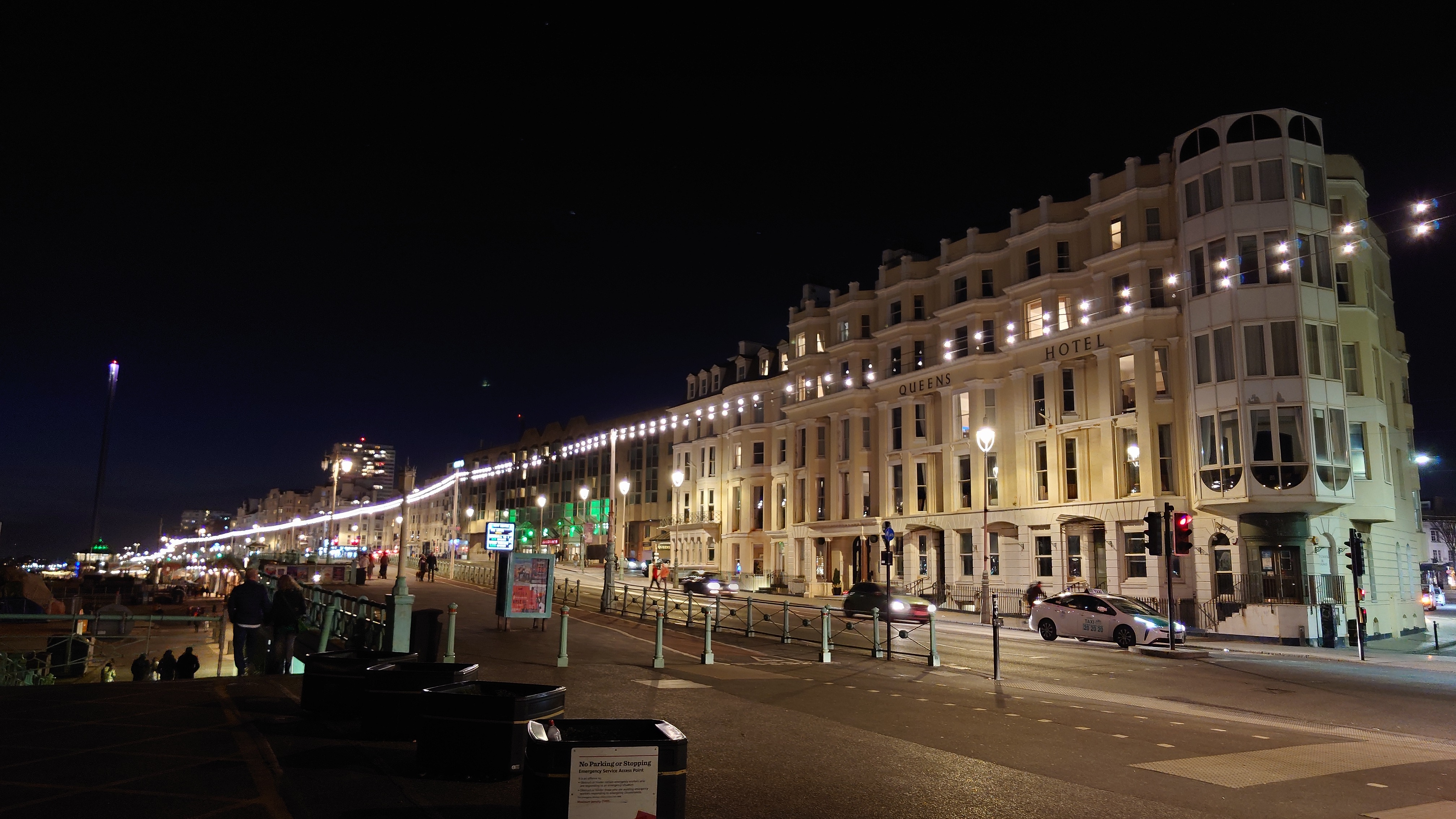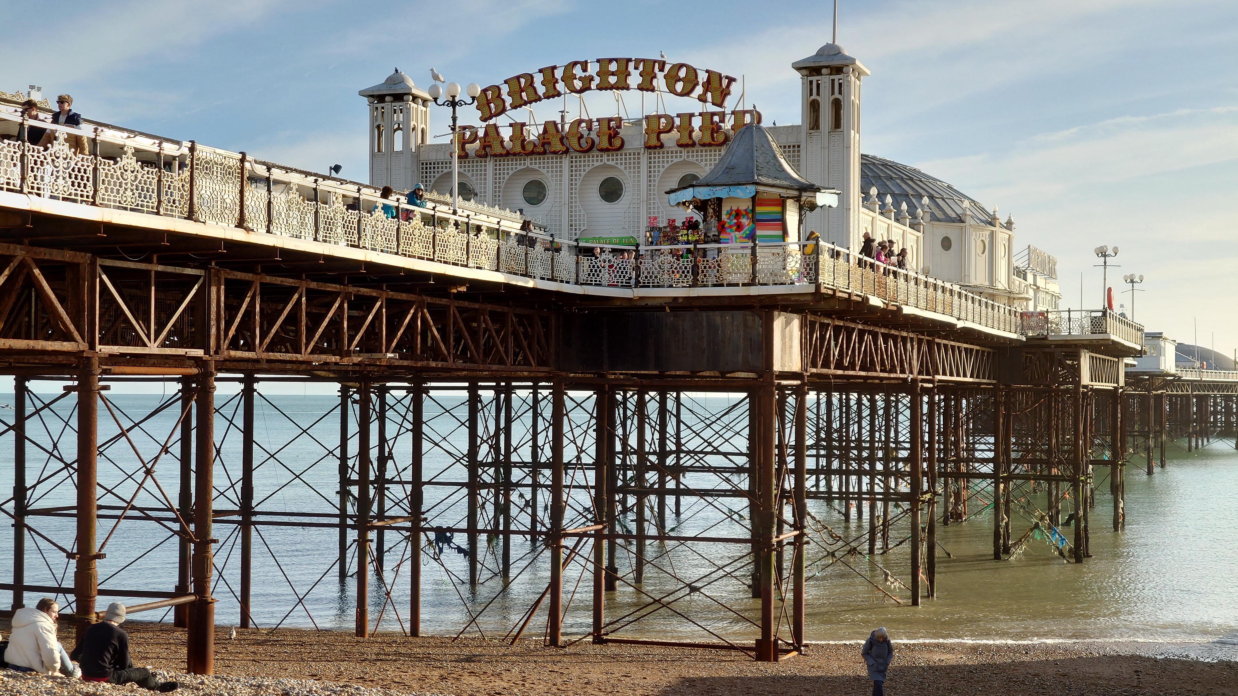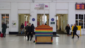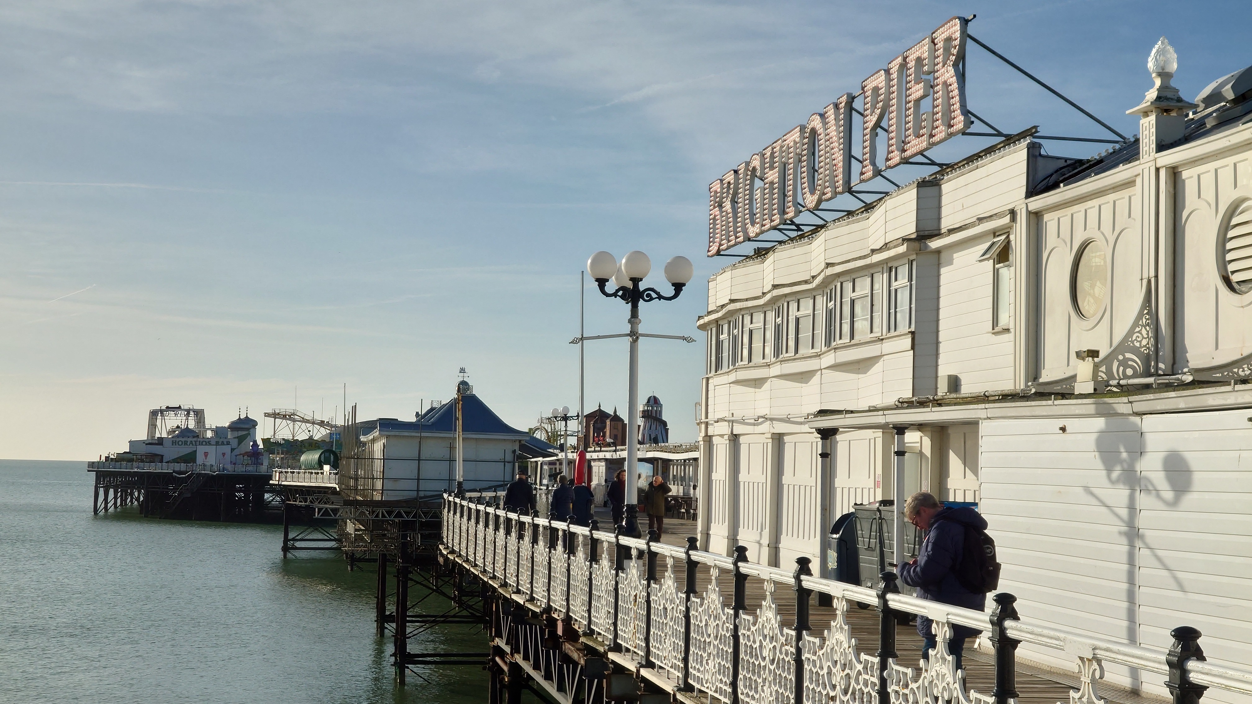 Drei Stunden später... ich sitze im National Express Bus von Stansted nach London Liverpool Street. Meine Planung steht. Damit geht der erste Lampion an. Dieses Mal wird es keine schmerzbelastete Corona-Lichterkette wie letztes Jahr. Eher ein Startsignal: bitte freuen Sie sich jetzt! Nutzen Sie dafür ein Küstenstädtchen und läuten Sie es mit Röhrenglocken im Brighton Dome ein. Solche Trips fühlen sich immer wie Aufbrechen in die Freiheit an, wenn auch nur für einen Tag. Der aber dafür mit allen Farben. Sonne. Keine Wolken. Und das nach 2 Monaten grauer Tristesse. Es sind 8 Grad. In der Sonne mehr. Wir wohnen am Brighton Palace Pier im ziemlich abgewohnten Queens Hotel mit Spa, bestehend aus 80er-Jahre-Pool und schlecht isoliertem Holzkasten, der sich Sauna nennt. Es ist überall eng und mit dicken Teppichen belegt. Alles wirkt hier wettergegerbt, alt und verrostet. Alle Fassaden der Stadt bröckeln. Venezianischer Steampunk. Die Zwischentöne zeichnen ein anderes Bild, ähnlich wie Reykjavik. Brighton ist jung und präsentiert sich als alternative, diverse Szenestadt und künstlerischer Blutgefäßknotenpunkt Großbritanniens. Berlin kann einpacken dagegen. Regenbogenflaggen und Regenbogenmenschen gehen einen Jing-Jang-Tanz mit sturz konservativer, britischer Lebensweise ein. Letztere manifestiert sich vor allem in textschwangeren Warn- und Hinweisschildern, verbal mahnenden Zugtüren, Bustüren und Rolltreppen, die einem am liebsten alle Mündigkeit entziehen wollen zu Gunsten der royal umrandeten Gesellschafts-Safetiness eines Eilands, das viel lieber wieder Imperium wäre anstelle eines Landes von 28 EU-Mitgliedern. Selten sieht man noch Autoschilder mit dem blauen EU-Streifen auf der linken Seite. VPay und EC-Karten? Vergiss es. Wir brauchen wieder einen Reisepass. Schade, wenn das gesellschaftlicher Fortschritt sein soll. Lebte die Queen noch, trüge sie bestimmt ein blaues Kleid mit gelben Blümchen.