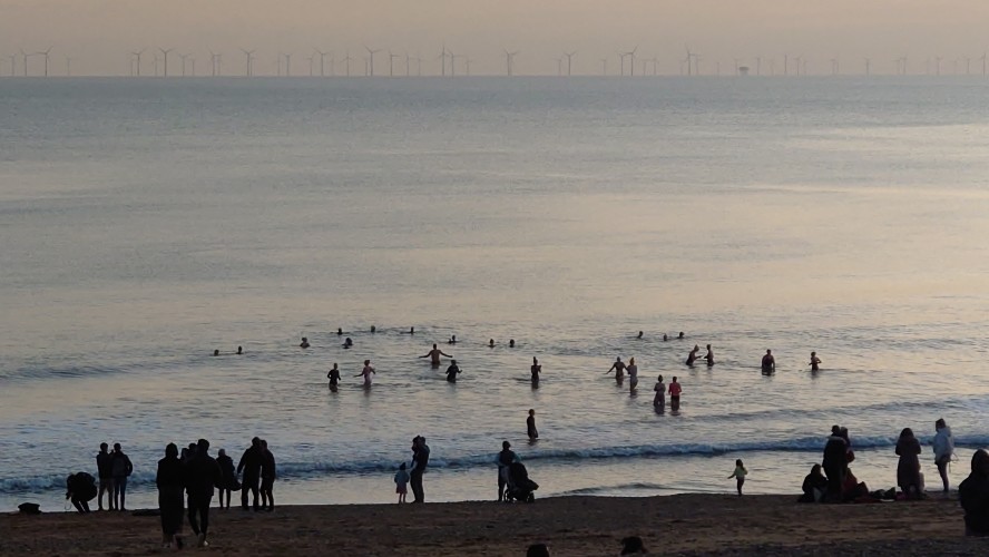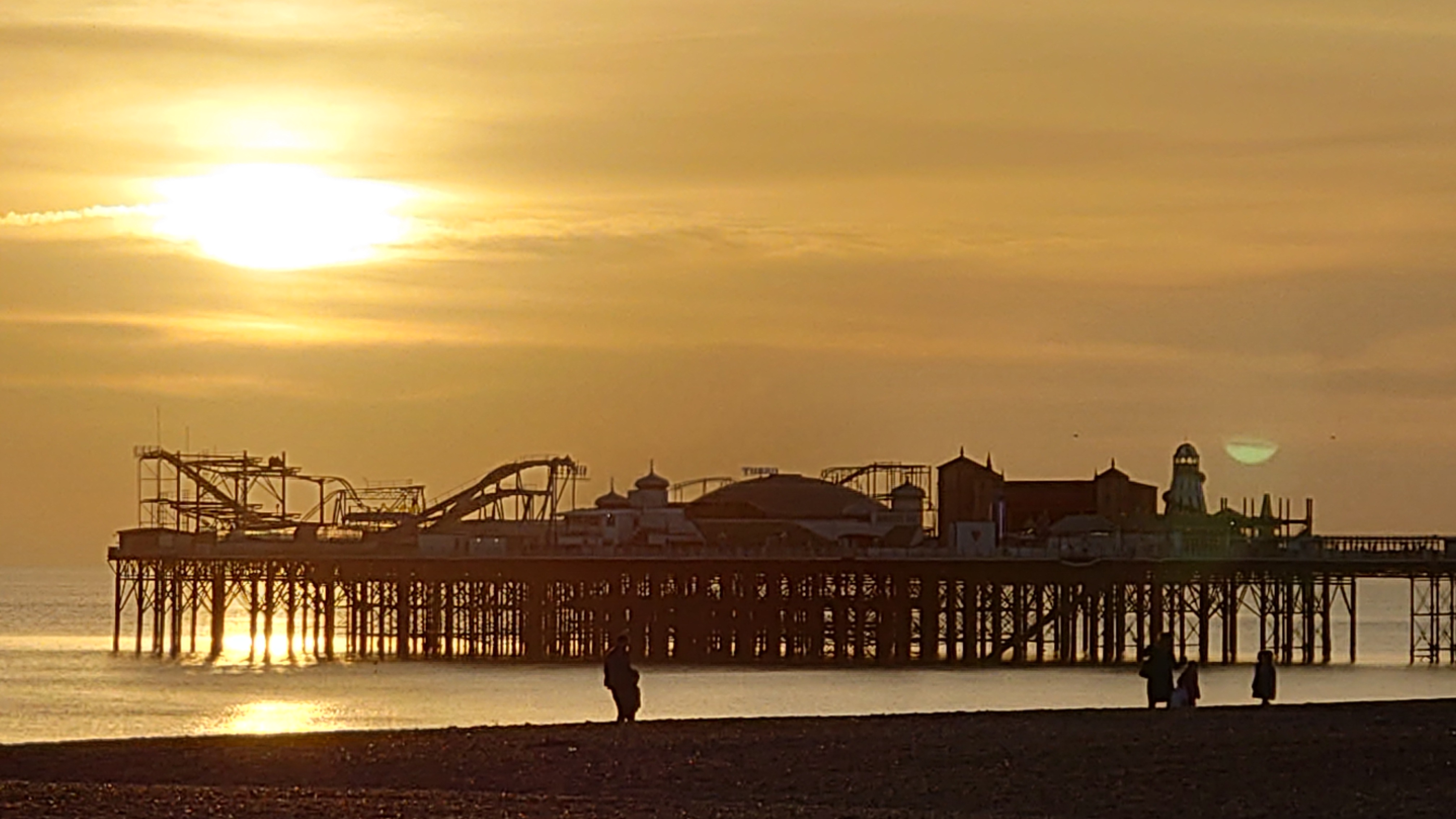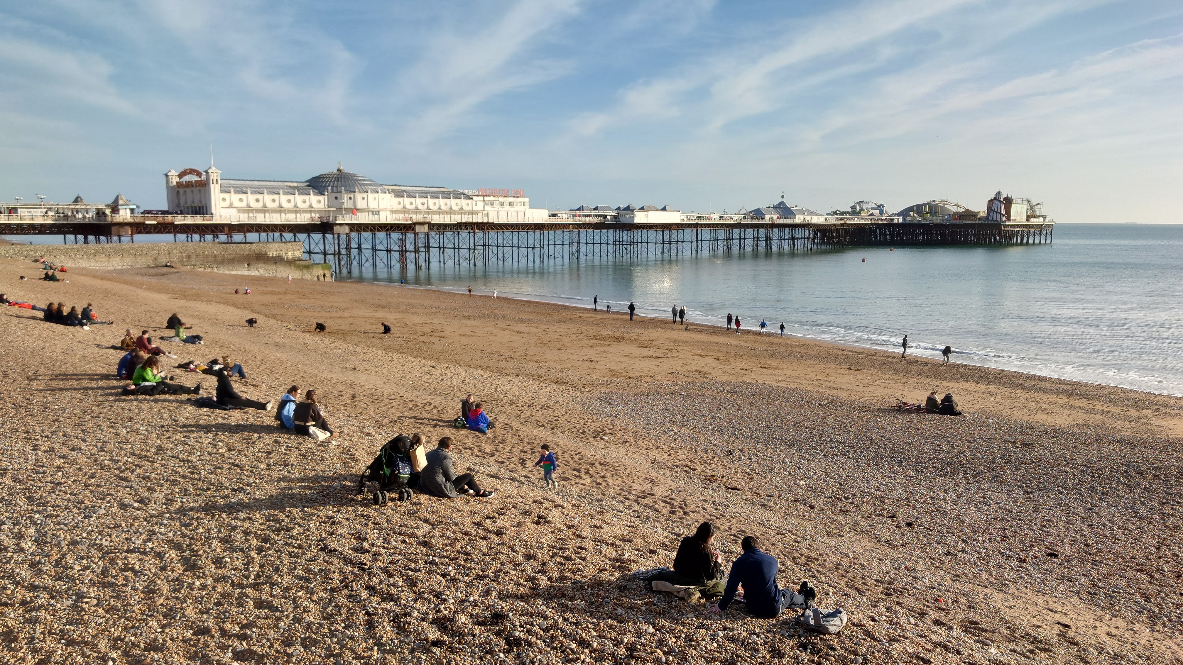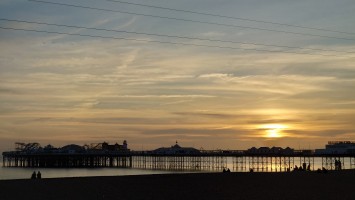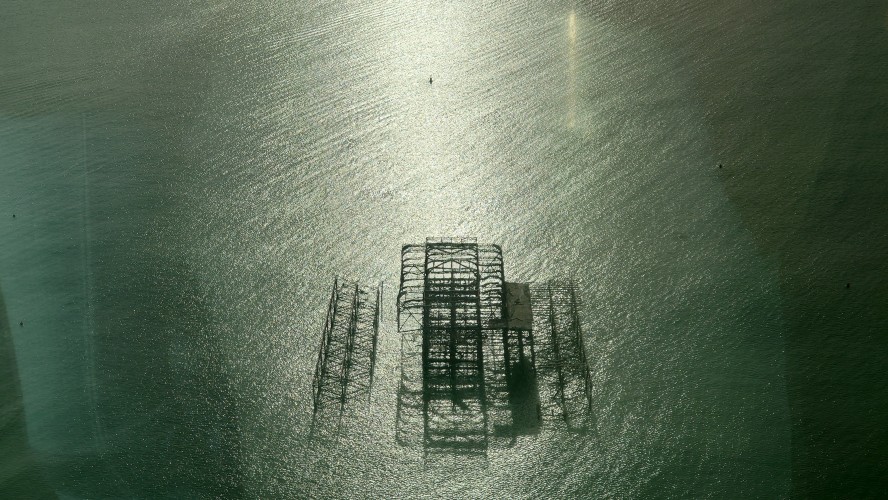 Wir genießen den ins Wasser rostenden Pier, einst glanzvolles, ins Meer ragendes Leuchtfeuer eines Ortes, der den Beginn von Strandtourismus während der Industrialisierung begründete mit auf Stahlstelzen stehenden Theater- und Festsälen. Heute eher Herberge unzähliger Spiel- und Videoautomaten, sowie einer Achterbahn und Fahrgeschäften aller Art fürs Fußvolk. Den stolzen, 1866er West Pier zwangen schwelende Bedeutungslosigkeit in Gestalt eines Großbrandes vor 20 Jahren in die Knie. Es steht nurmehr ein dünnes Gerippe im Meer. Viele Leute sitzen hier am Strand und an der langen Promenade und spielen Sommer. Viele gehen ins Wasser schwimmen, bewaffnet mit Neopren-Handschuhen und -schuhen, schwimmen zum Pierskelett und zurück. Pah. Was die können, kann ich auch. Also, Klamotten aus und rein. 5 Grad. Ein Schock durchfährt mich. Wie soll man das länger als 10 Sekunden unbeschadet aushalten? Es ist der 5. Februar verdammt, auch wenn die Sonne einen Junisonntag herbeischeint. Mannomann, lass dich nicht von der Kneippfestigkeit alter Brighton-Damen und den Club-Besucherinnen in nahezu transparenten Mini-Mini-Miniröckchen fehlleiten. Keine Ahnung, wie Briten Kälte interpretieren. Ich dachte, ich wäre wetterfest.
