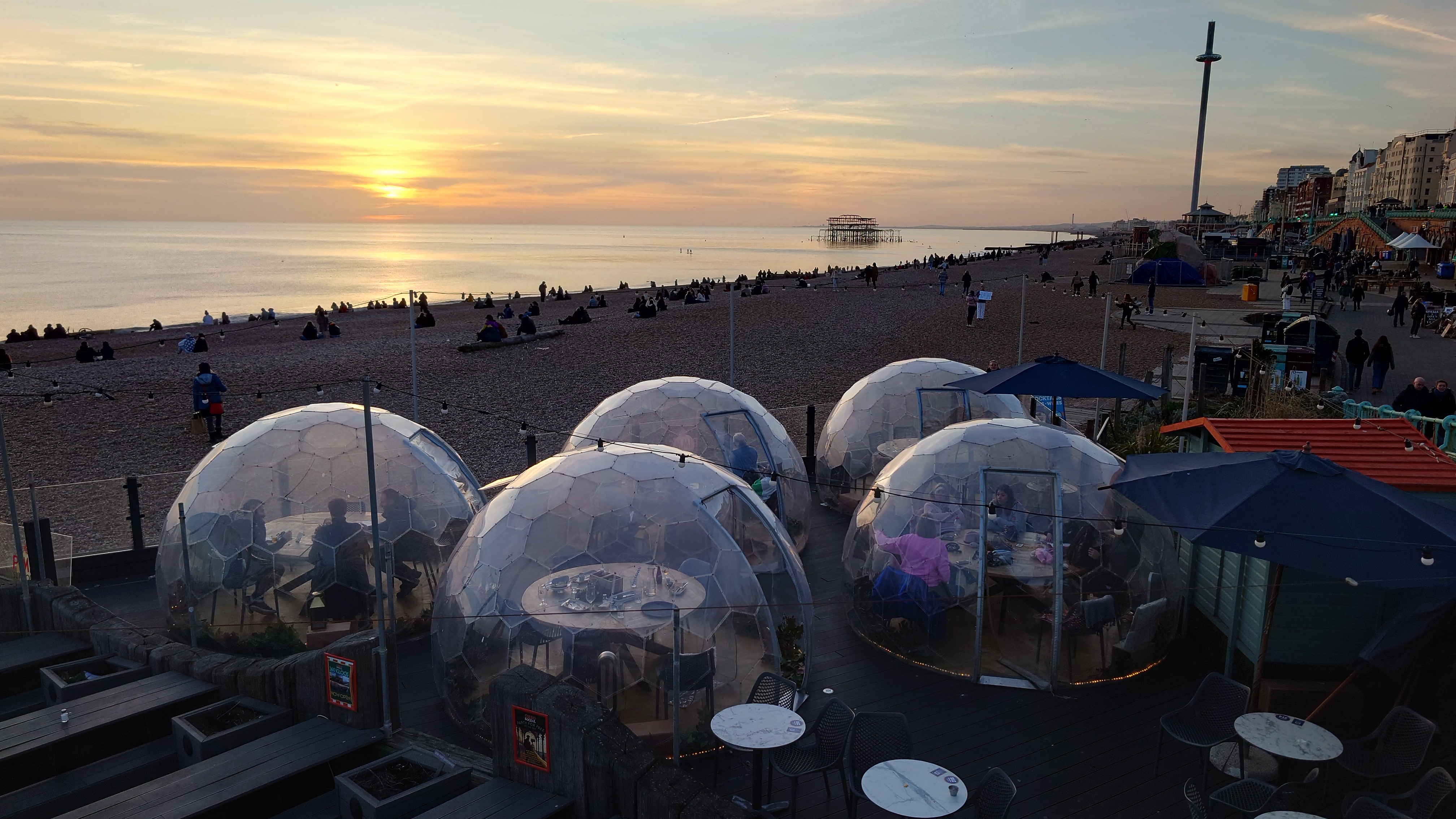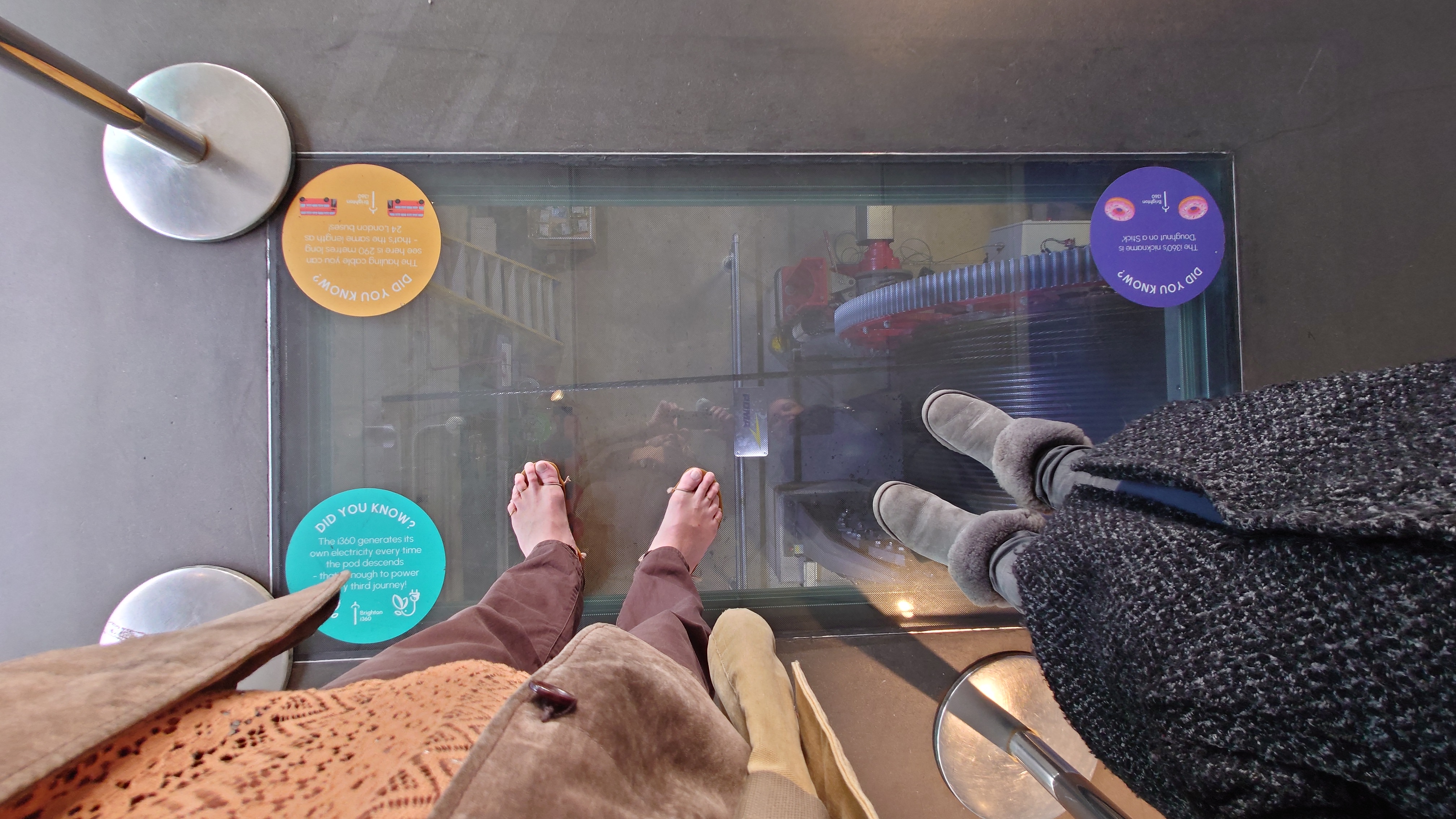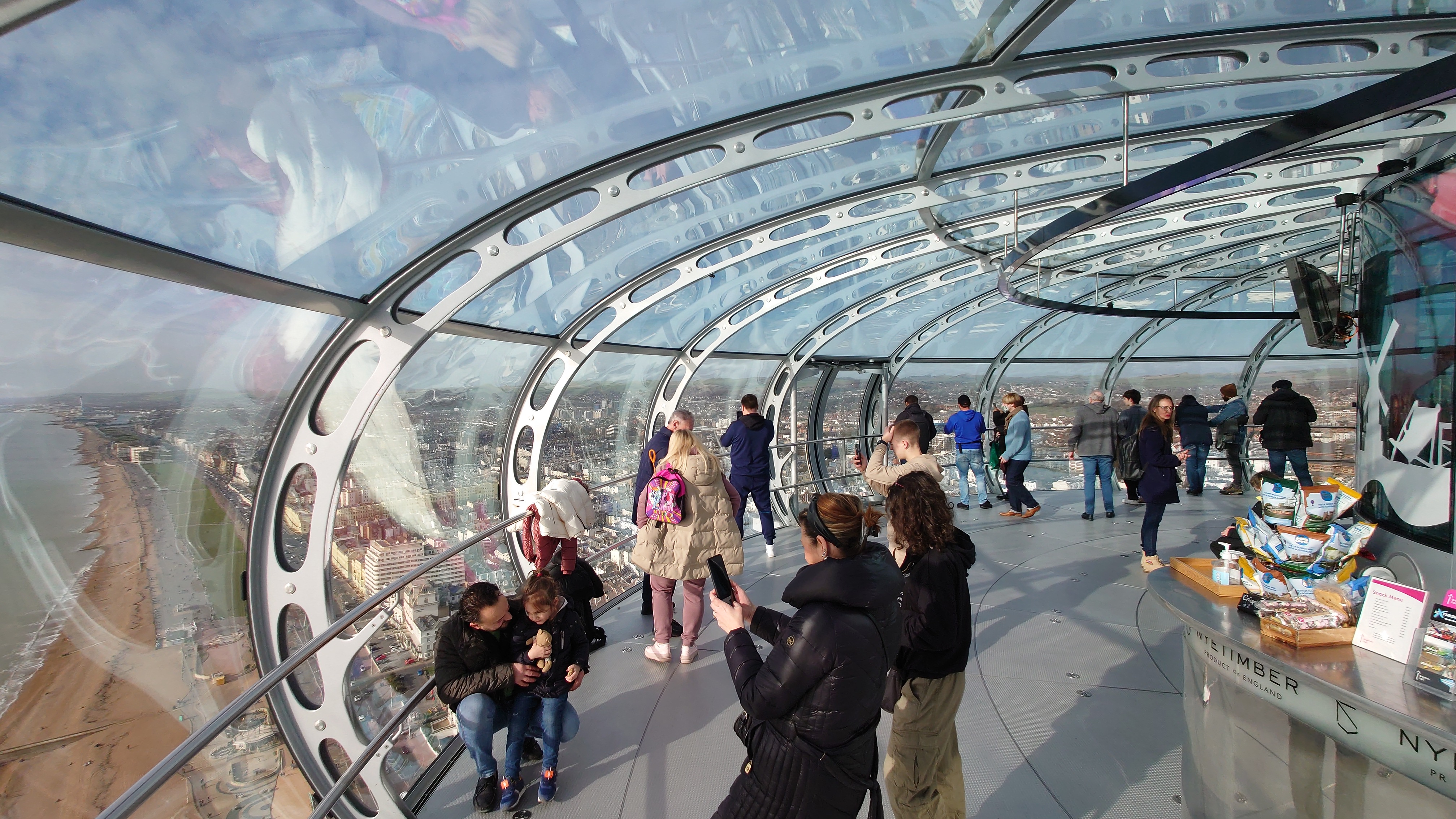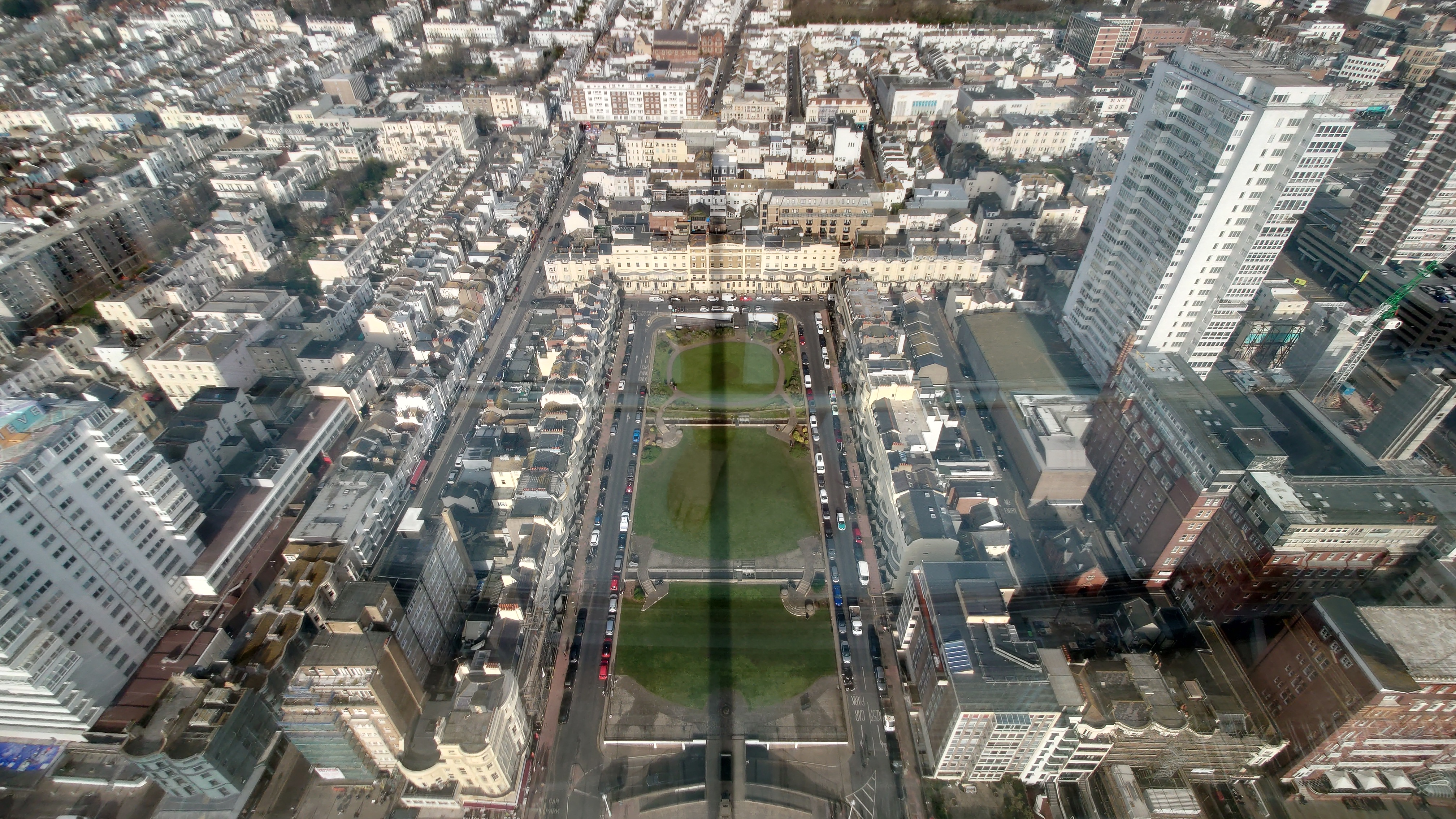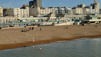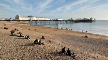 Uns zieht es nach dieser "Frische" im i360-Himmelslift vor dem West Pier in die Luft. Mal einen Überblick erhalten. Brighton ist kompakt und sieht sehr geplant aus. Ein Meer von Reihenhaus-Adern. Weit und breit keine Photovoltaik auf Dächern oder Windräder. Überhaupt sind nahezu alle Fenster einfach verglaste, verkantende, aufquellende Feuchtgebiete in Form von Schiebereglern für Frischluftzufuhr, die in Punkto Isolation nur den Zustand "offen" kennen. Energiewende? Hier nich so. Dafür Palmen und Südseeflora, die erahnen lassen, wie warm der Golfstrom den Süden Englands im Sommer werden lässt. Erstaunlich, dass das Nordsee sein soll. Kein Watt, nur riesige, runde Kieselsteine. Irgendwie unwirklich sauber alles, kein Treibgut, keine Alge.