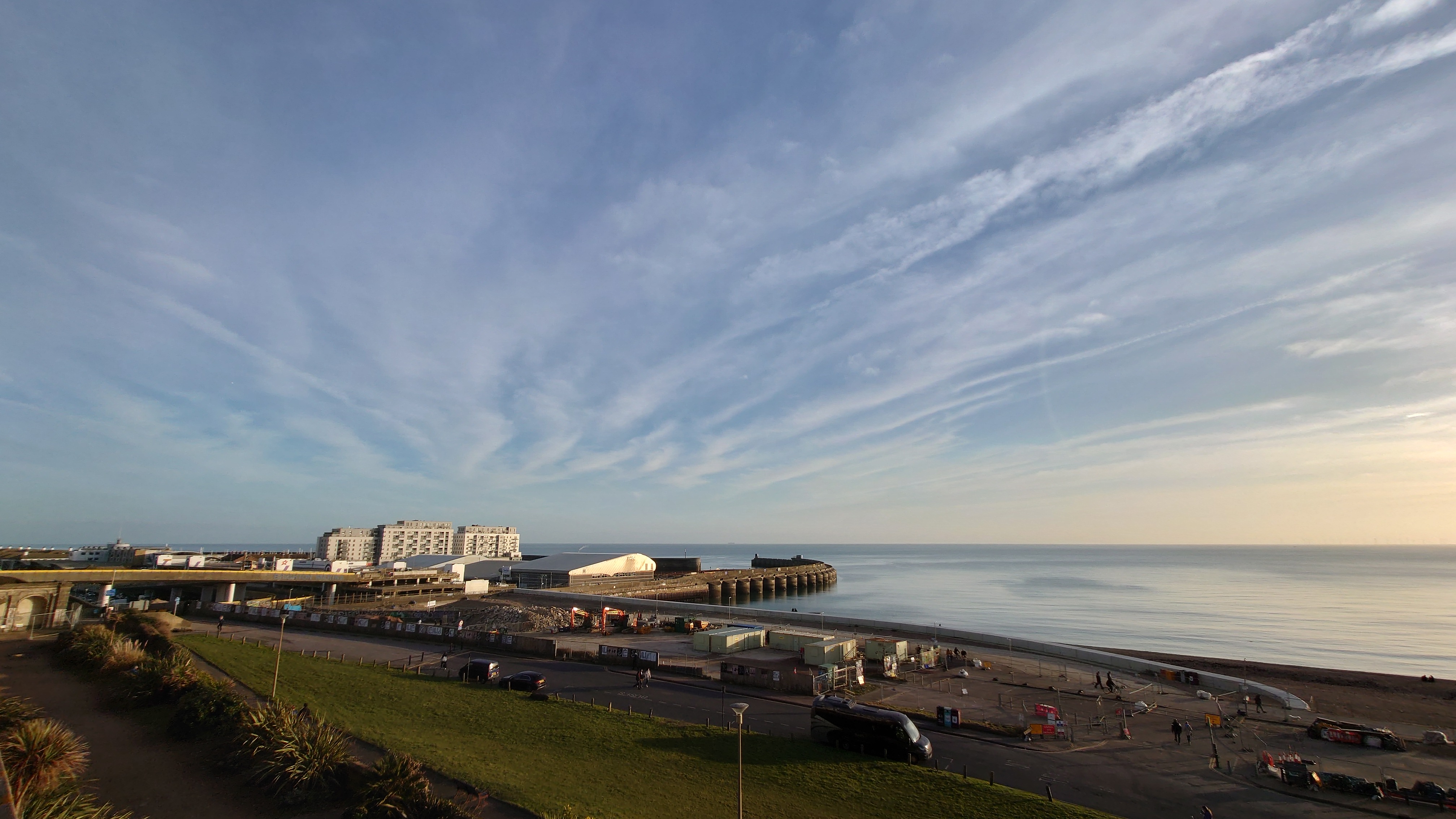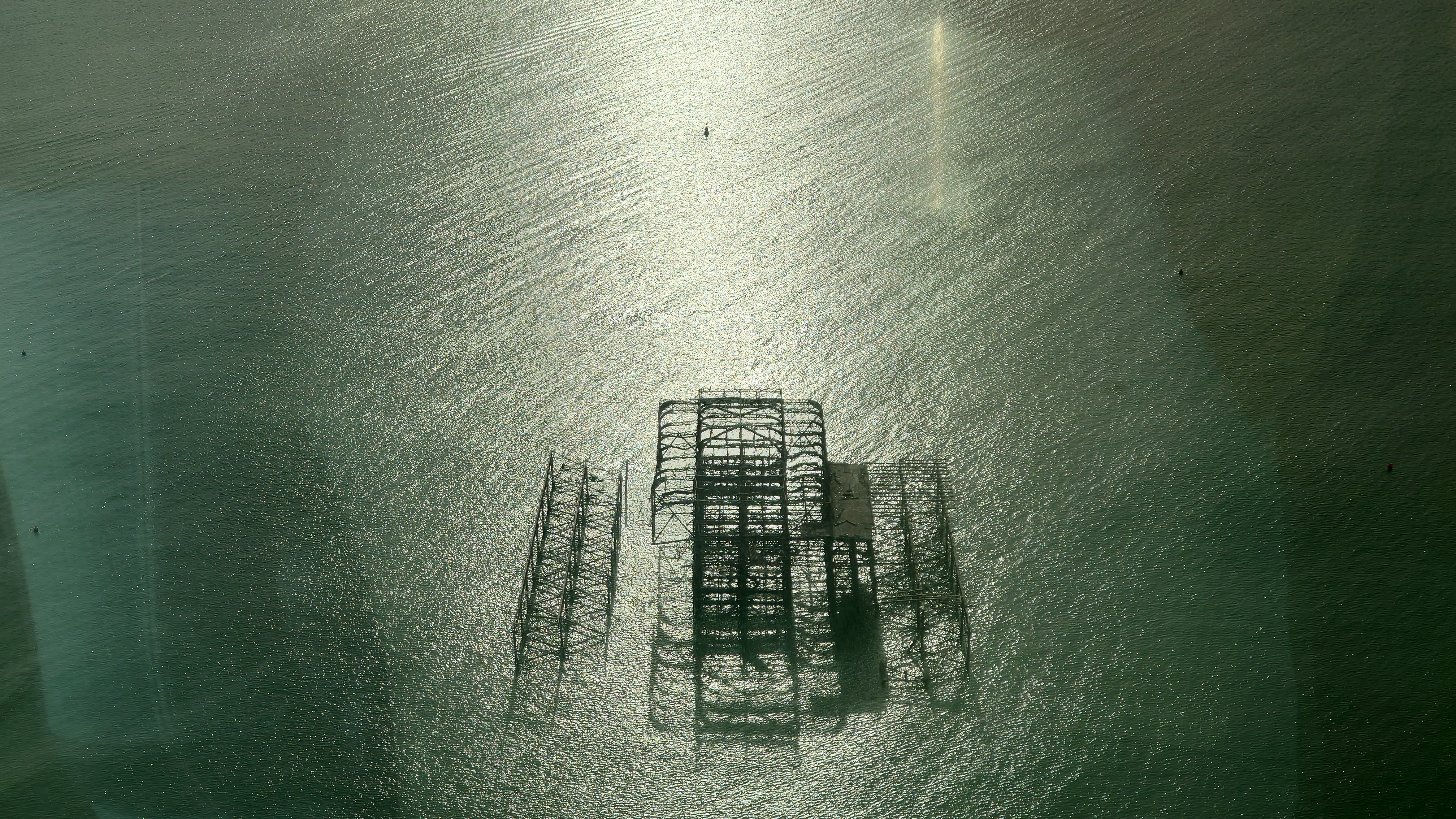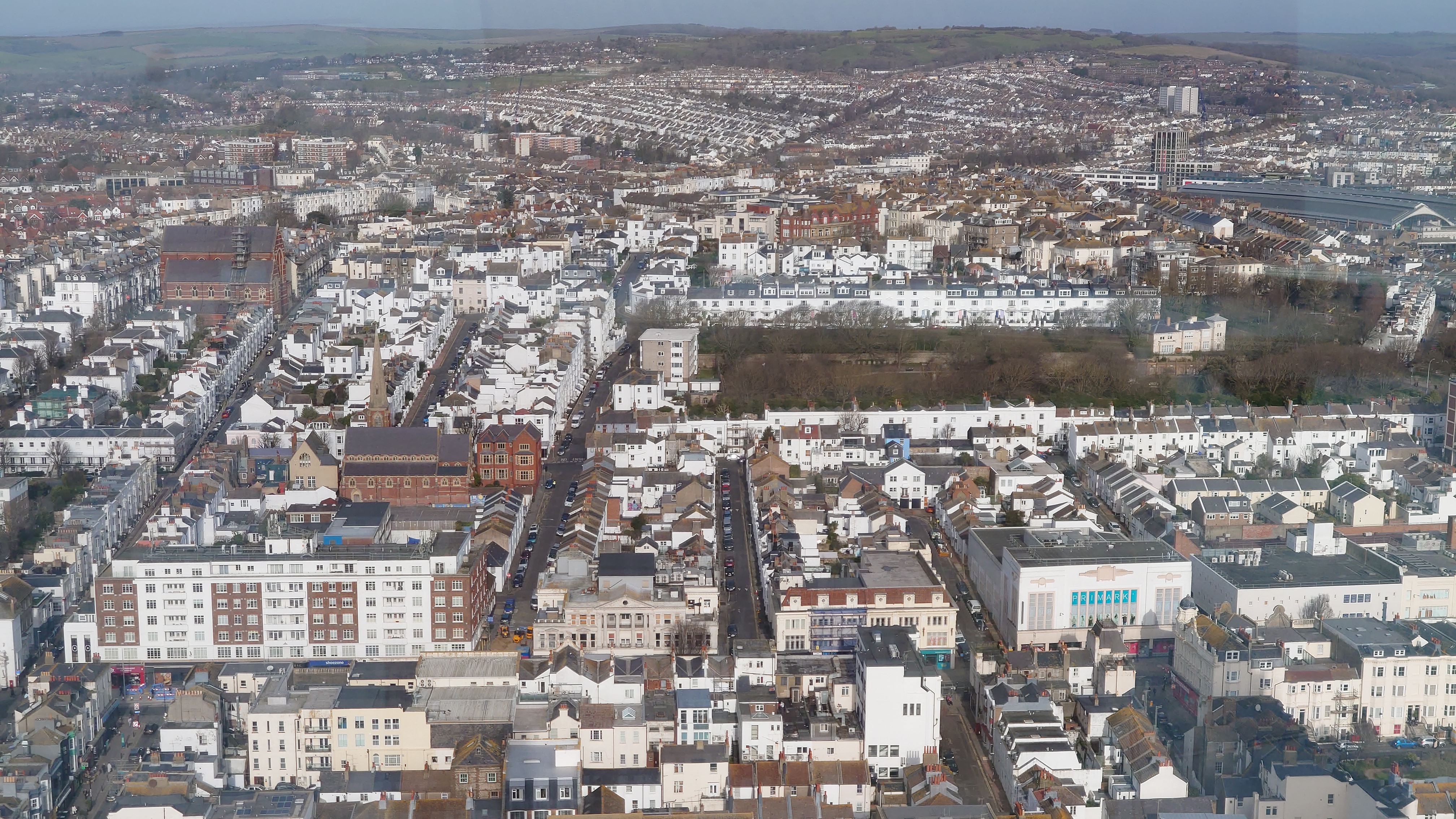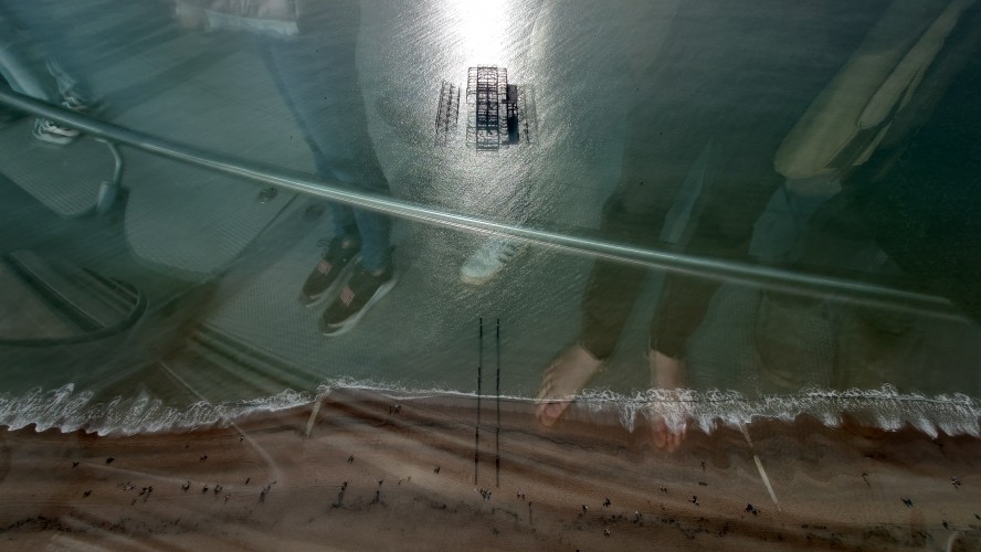 Uns zieht es nach dieser "Frische" im i360-Himmelslift vor dem West Pier in die Luft. Mal einen Überblick erhalten. Brighton ist kompakt und sieht sehr geplant aus. Ein Meer von Reihenhaus-Adern. Weit und breit keine Photovoltaik auf Dächern oder Windräder. Überhaupt sind nahezu alle Fenster einfach verglaste, verkantende, aufquellende Feuchtgebiete in Form von Schiebereglern für Frischluftzufuhr, die in Punkto Isolation nur den Zustand "offen" kennen. Energiewende? Hier nich so. Dafür Palmen und Südseeflora, die erahnen lassen, wie warm der Golfstrom den Süden Englands im Sommer werden lässt. Erstaunlich, dass das Nordsee sein soll. Kein Watt, nur riesige, runde Kieselsteine. Irgendwie unwirklich sauber alles, kein Treibgut, keine Alge.