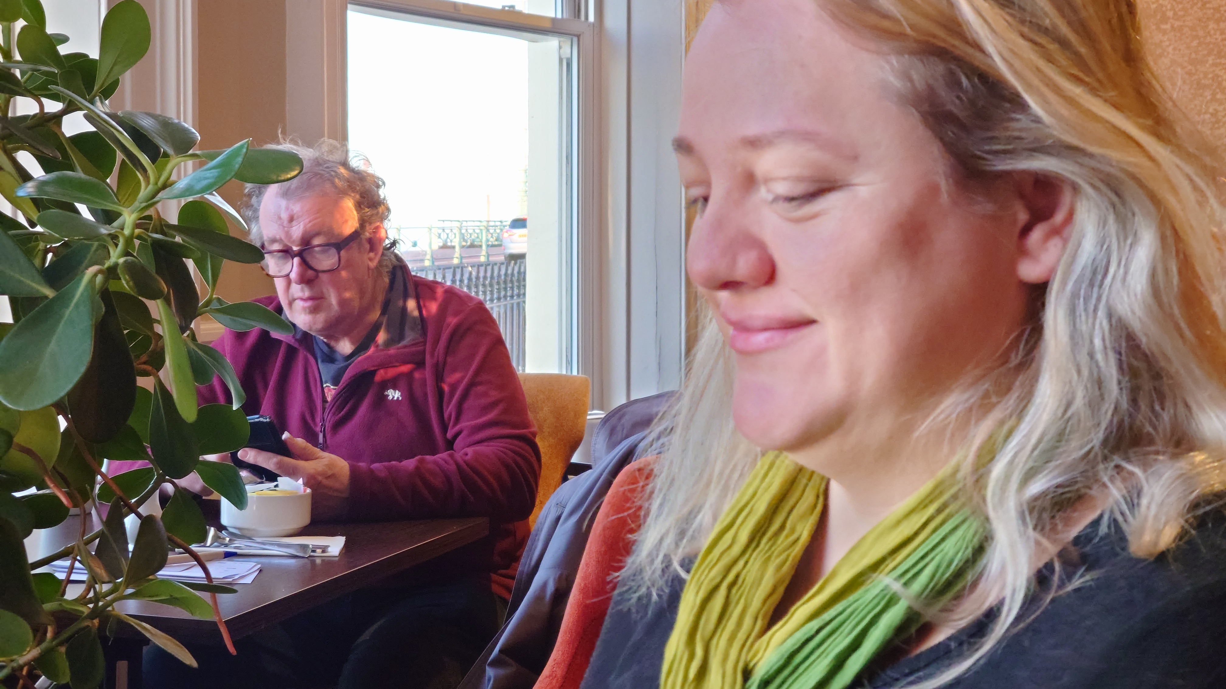 Ein Tag geht zuende. Ein neuer beginnt. Wir gehen früh zum Frühstück rüber ins Hotel. Ein musikalisch auffälliges Pfeifen am Nachbartisch begleitet unser Gekaue. Siehe da, die beiden Gitarristen residieren auch hier. Das wirkt irgendwie besonders, auch wenn es nur irgendwelche Sessionmusiker sind, so fallen sie in Gestik und Optik sofort auf. Dennoch, wir müssen wieder zurück. Wieder viel Zeit, um den GR 134 fertig zu planen. "Wie eine Etappe Jakobsweg", stellt Frances fest, während wir gegen 8 Uhr unsere royale Unterkunft gen Bahnhof verlassen. Mich erinnert es eher an Kerry & Dingle. 7 Jahre ist das her. Jetzt haben wir einen Leander. Bald gehen wir ganz andere Wege zu dritt.