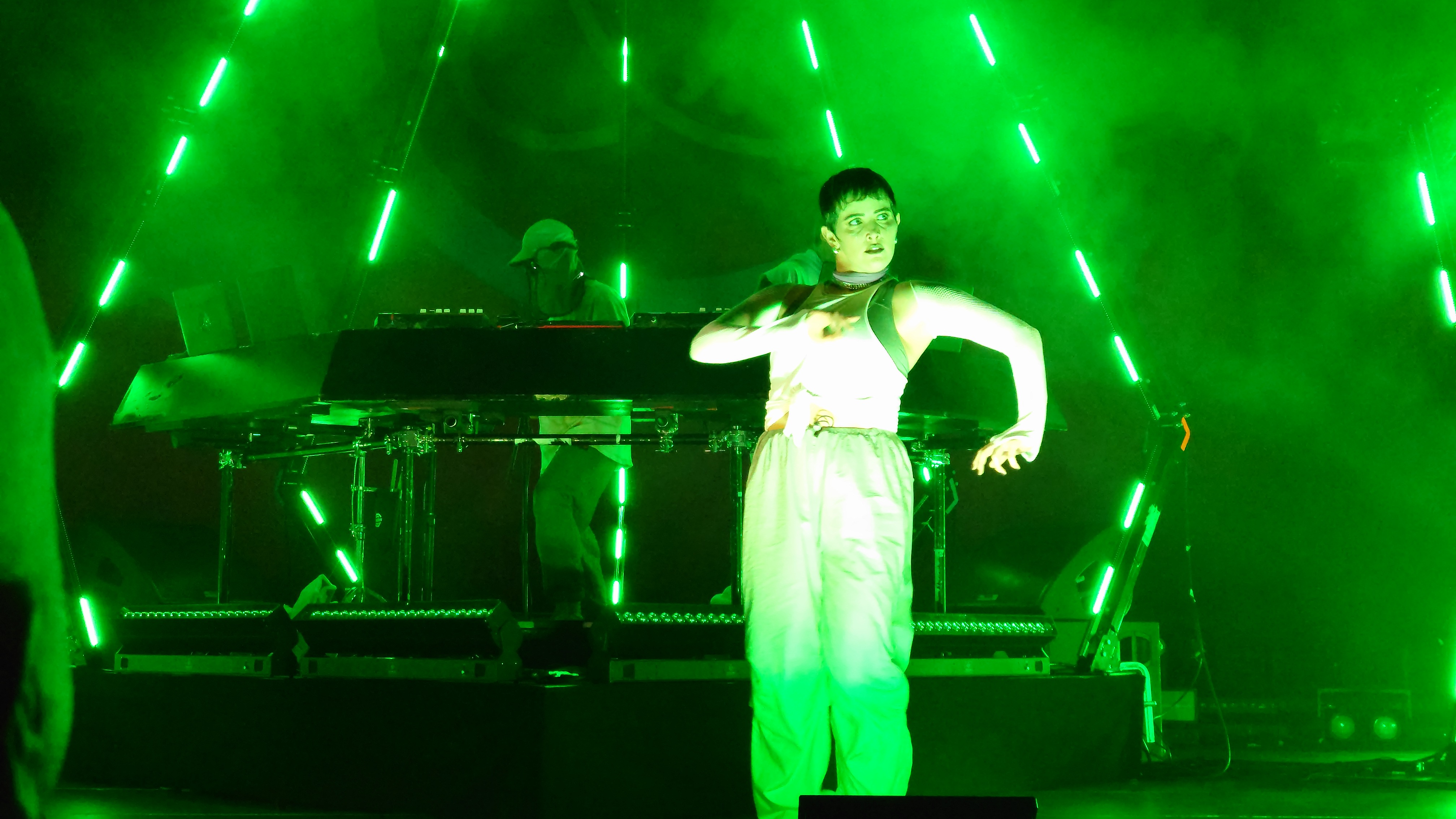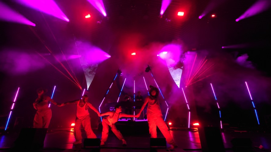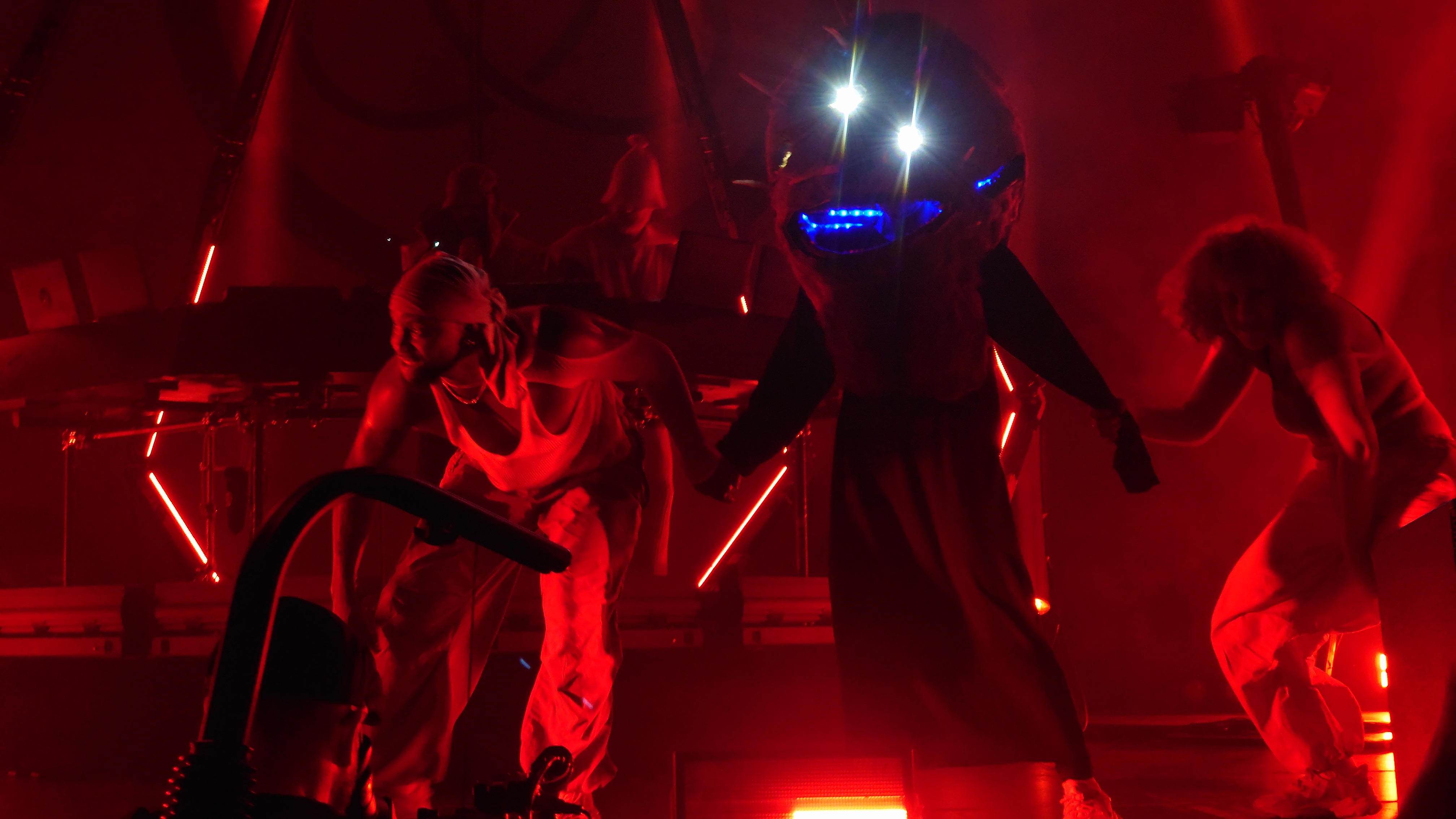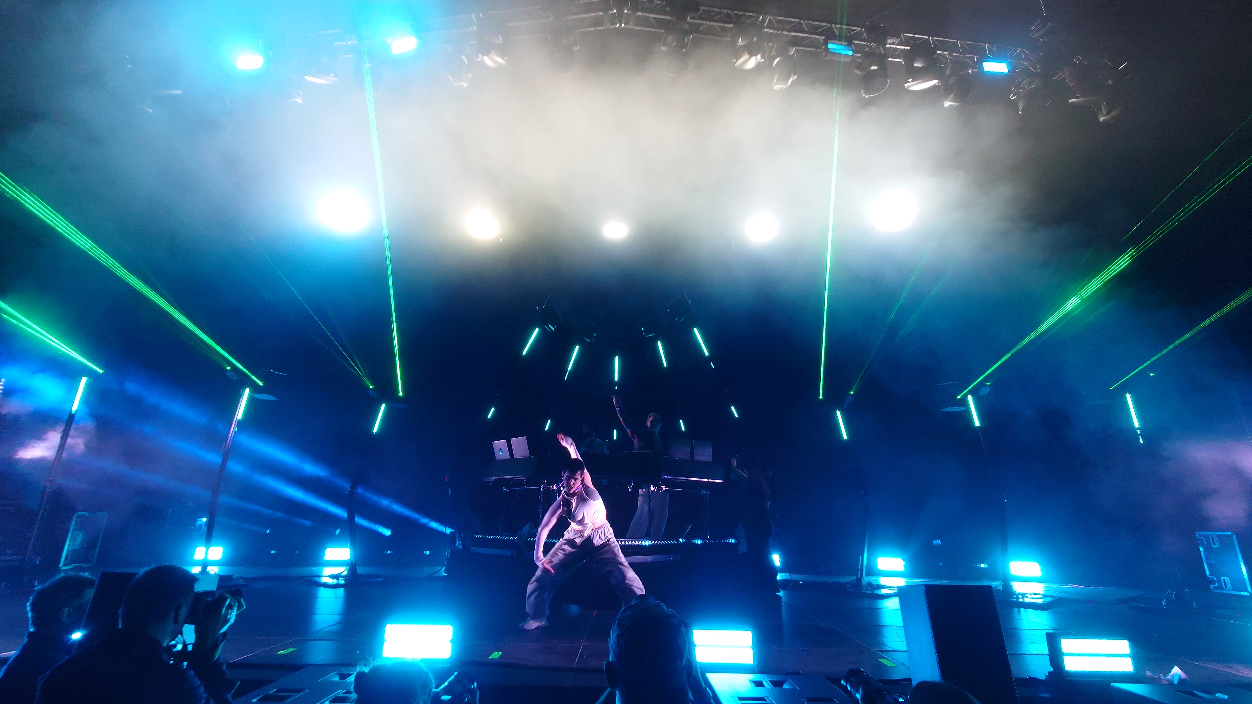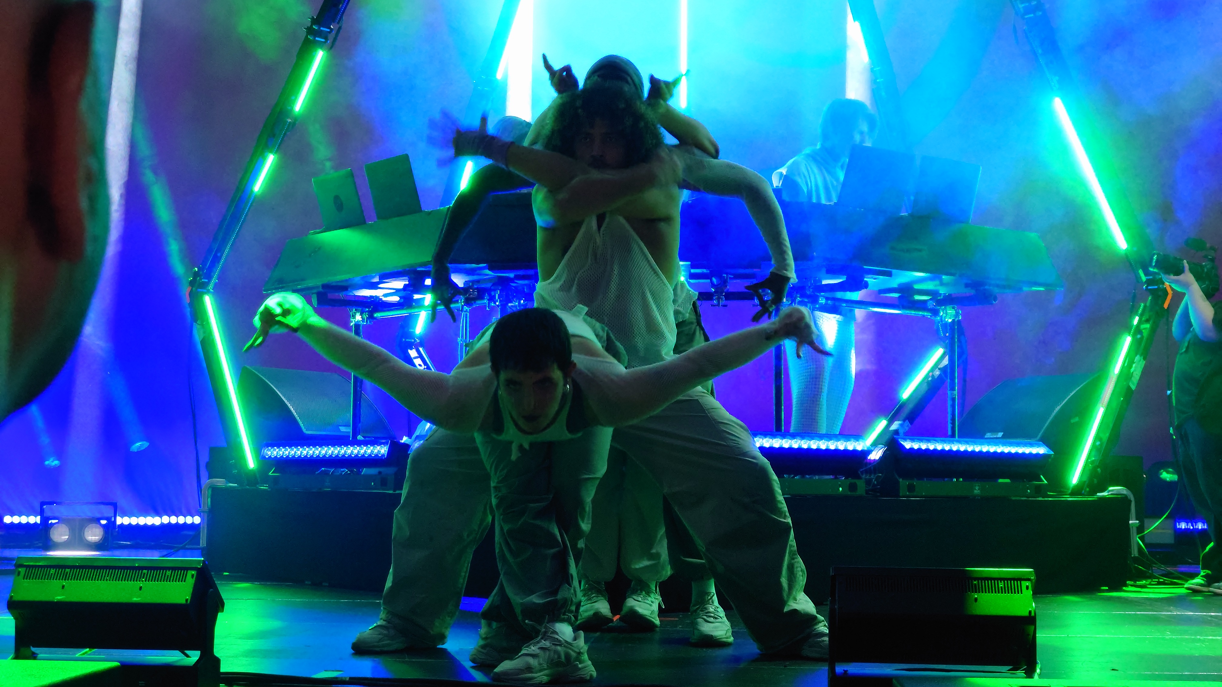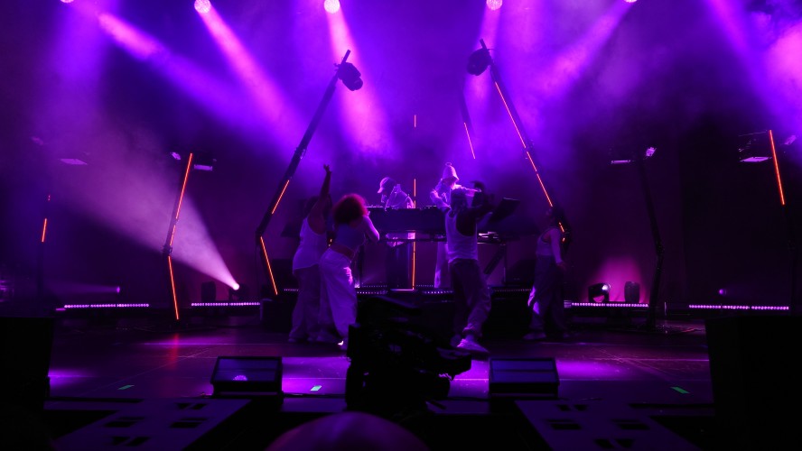 Wir stehen direkt am Wellenbrecher und es wird heiß, laut, bunt, regenbogig und vor allem basslastig. Zwei jugendhafte Gestalten mit Bart aus Tromsø pusten uns im 4/4-Takt die Birne weg mit feinstem Indie-Trip-Hop, geben sich sarkastisch jovial in ihren lächerlich überzogenen Kostümen und umgeben sich mit vier hochakrobatisch biegsamen Tänzer:innen. Und :innen ist wichtig. Schwarz, weiß, dick, dünn, Mann, Frau... tanzen eine gemeinsame Choreographie. Da ist er wieder, der Regenbogen. Auf der Bühne, im Saal, überall, selbst die Kellner im Liquidrom. Diversität wird in allen Facetten gezeigt und zelebriert, erst recht jetzt, wo die Pandemie als beendet deklariert wurde und Masken aus dem Alltagsleben wieder verschwinden. Eine neue Neue Normalität hält einzug, die doch die nicht mehr die Alte Normalität ist. Menschliches Miteinander wird zumindest im Moment zelebriert, als hätte es 3 Jahre lang keinen Raum zum entfalten gehabt... hmm... was daran liegen könnte, dass es 3 Jahre lang keinen Raum zum Entfalten gab.