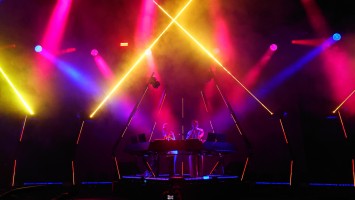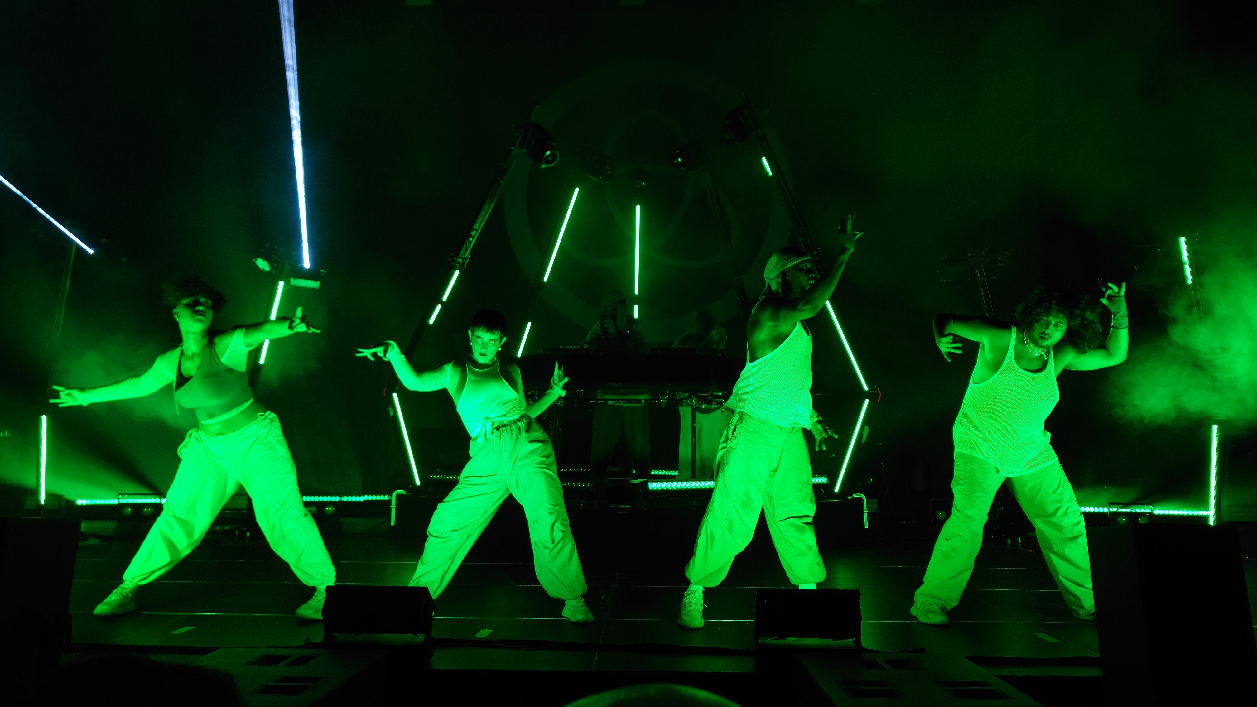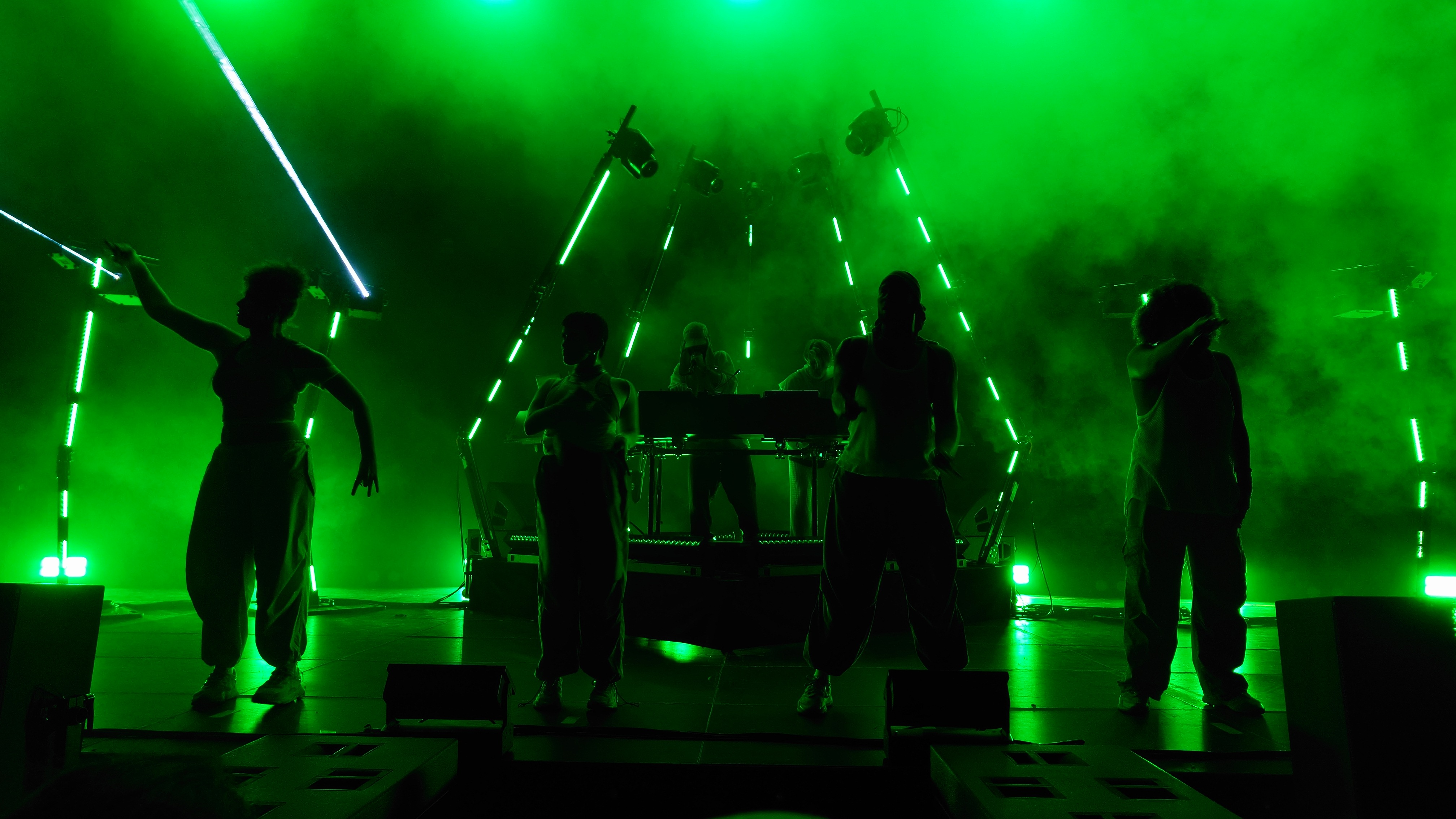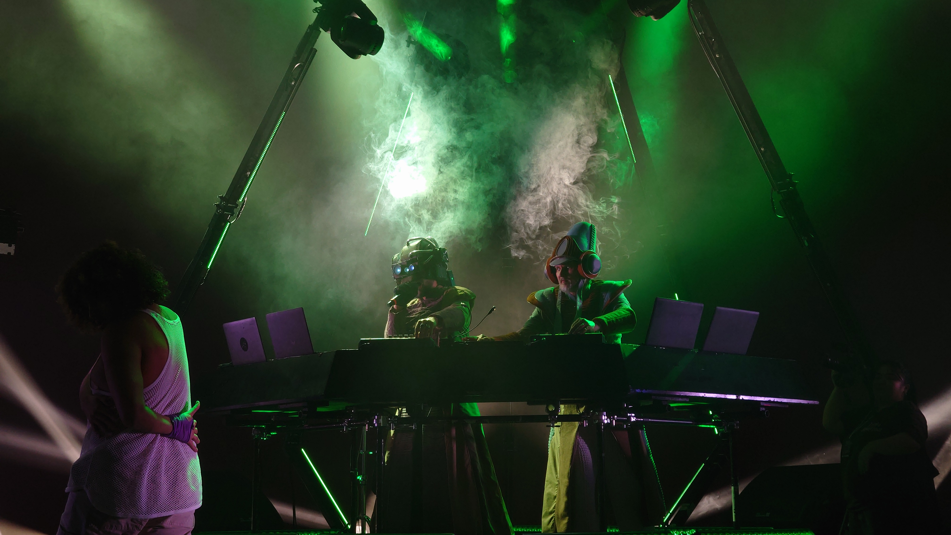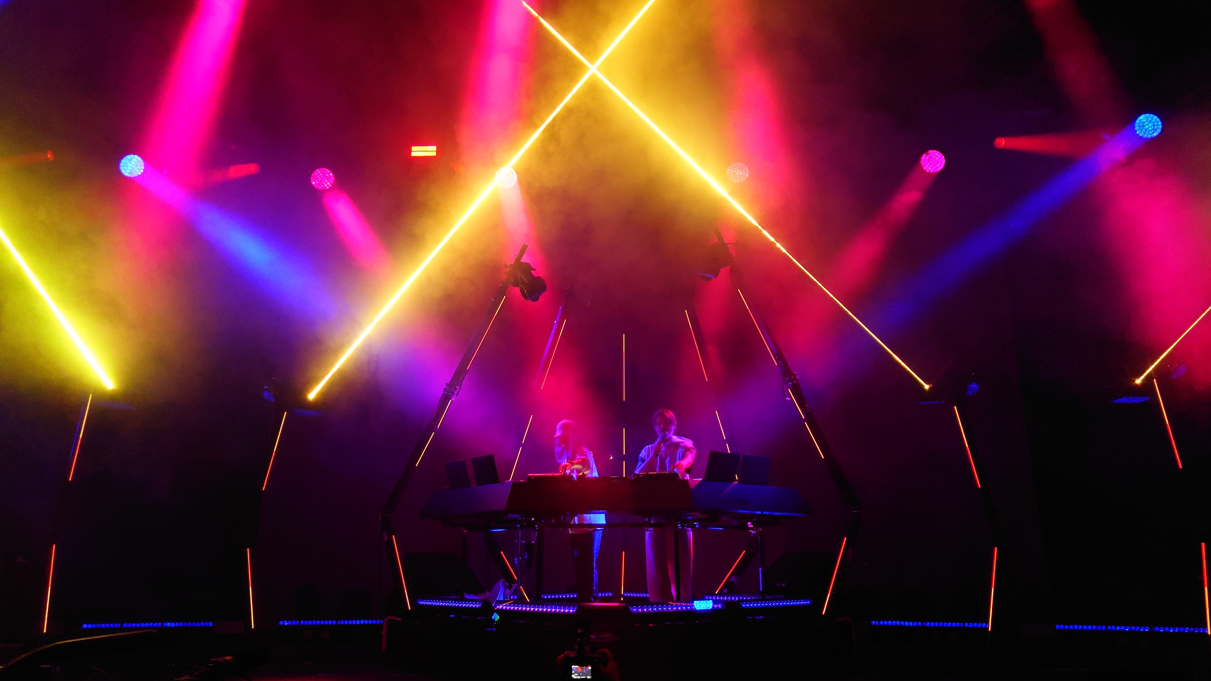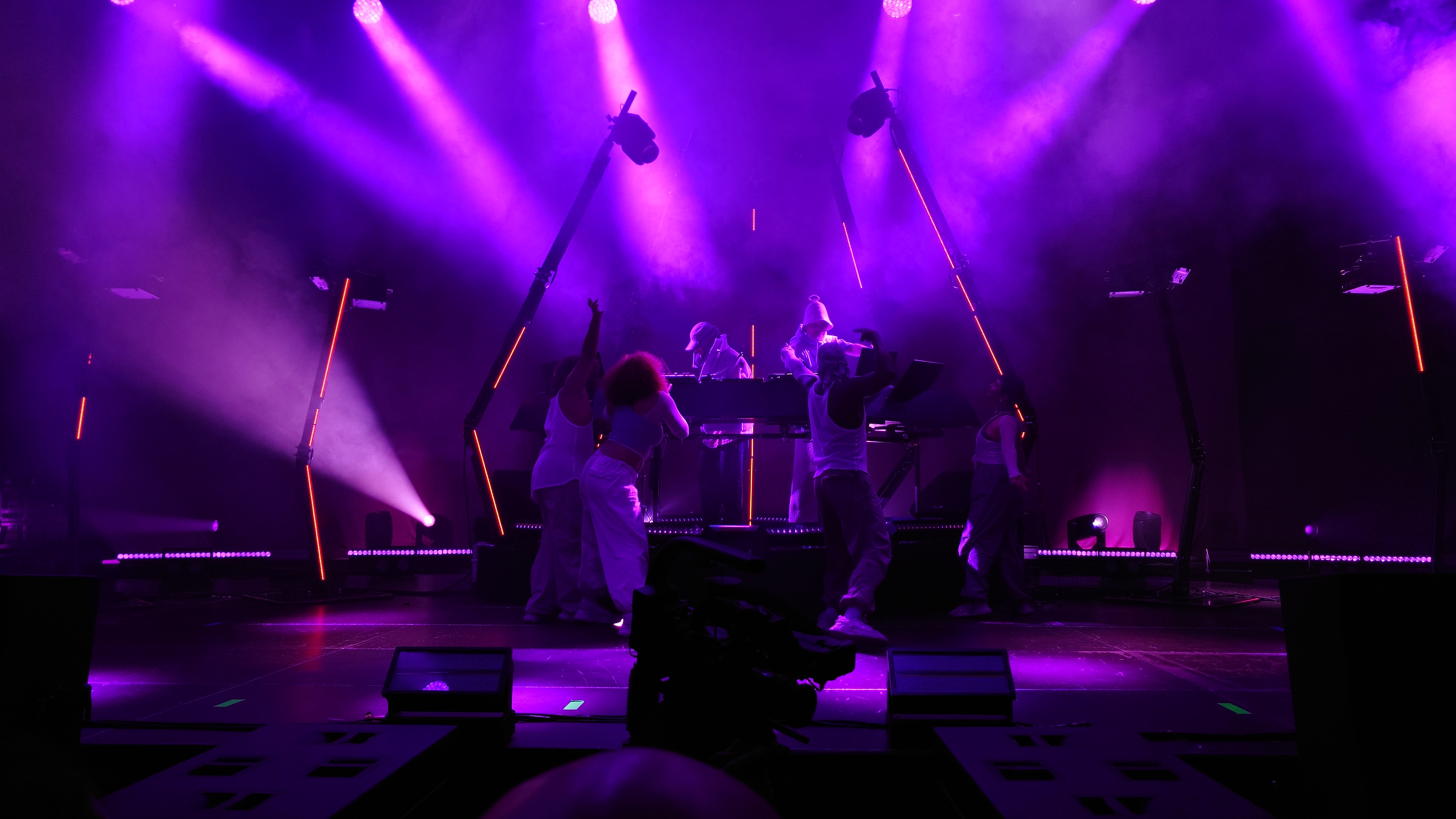 Wir stehen direkt am Wellenbrecher und es wird heiß, laut, bunt, regenbogig und vor allem basslastig. Zwei jugendhafte Gestalten mit Bart aus Tromsø pusten uns im 4/4-Takt die Birne weg mit feinstem Indie-Trip-Hop, geben sich sarkastisch jovial in ihren lächerlich überzogenen Kostümen und umgeben sich mit vier hochakrobatisch biegsamen Tänzer:innen. Und :innen ist wichtig. Schwarz, weiß, dick, dünn, Mann, Frau... tanzen eine gemeinsame Choreographie. Da ist er wieder, der Regenbogen. Auf der Bühne, im Saal, überall, selbst die Kellner im Liquidrom. Diversität wird in allen Facetten gezeigt und zelebriert, erst recht jetzt, wo die Pandemie als beendet deklariert wurde und Masken aus dem Alltagsleben wieder verschwinden. Eine neue Neue Normalität hält einzug, die doch die nicht mehr die Alte Normalität ist. Menschliches Miteinander wird zumindest im Moment zelebriert, als hätte es 3 Jahre lang keinen Raum zum entfalten gehabt... hmm... was daran liegen könnte, dass es 3 Jahre lang keinen Raum zum Entfalten gab.