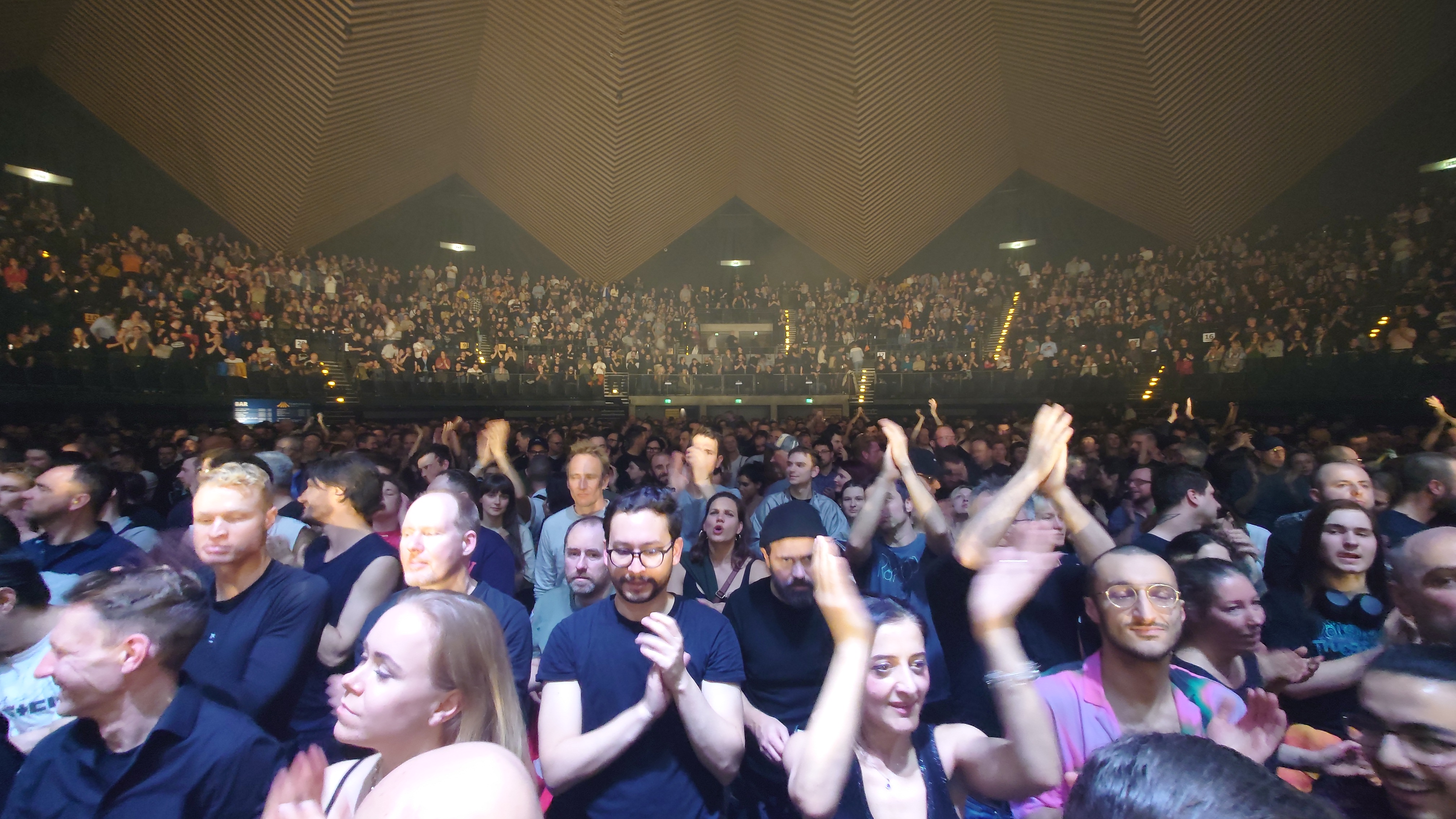 19 Uhr betreten wir die Halle. Extrem entspannte Atmosphäre. Viele sind weit älter als ich. Die waren damals alle 30. Der Durchschnittsnerd trägt Islandpulli hier und schwingt ihn um die Hüften, um sein Netzhemd zu entblößen, sobald es wärmer wird. Alle 3800 Fans hier sind etwas nerdig. Mich würde nicht wundern, wenn das alle Fans Deutschlands sind. 38.000 Follower zählt die Gruppe auf Instagram. Naja, wenn man nach 14 Jahren endlich die Gelegenheit hat, kommt man gern mal von weit her, so wie wir auch.