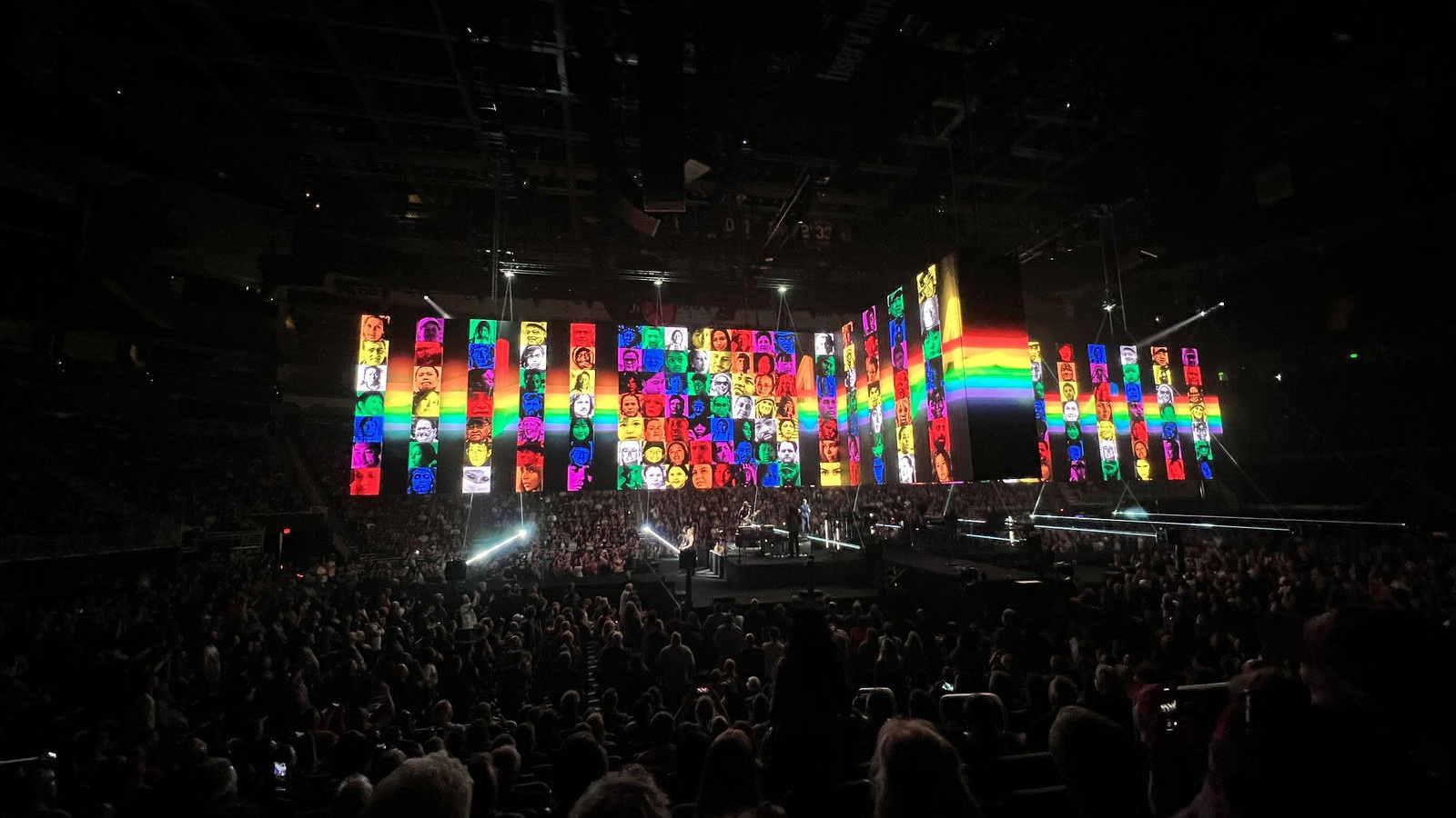 Ein Fan fragt draußen einen Protestierenden, ob er die Musik kenne. Er kennt sie nicht und müsse es nicht. Er ist aber gegen Antisemitismus. Waters selbst zeigt sich auf der Bühne verblüfft über das Echo, das ihm in Deutschland entgegenschlägt. Das wäre nur hier so. Das stimmt mich nachdenklich am Ende des Tages. Wissen wir wirklich, was wir da anprangern oder haben wir nur das Buzzword "Antisemitismus" gehört, das reflexartig ein anerlerntes Antivirenprogramm in uns startet? Ich kann es mir nicht beantworten. Ich weiß aber, dass das Thema in Deutschland das Sensibelste ist, das man thematisieren kann. Als Künstler muss einem das einfach bewusst sein. Zum Ende der Show zelebriert auch Roger Waters den Regenbogen wie viele andere Stars heutzutage... und nicht nur als weißes Licht, das durch ein Prisma in Spektralfarben aufgefächert wird, sondern als Symbol des Respekts vor Diversität. Das alles lässt wirkt bipolar wie der Dm maj7 Akkord aus "Us and Them". Ich bin ratlos und beschließe keine Position einzunehmen. Aber ich habe das Gefühl, die Intention der Musik Pink Floyds über das musikalische Können hinaus zum ersten Mal erfasst zu haben.