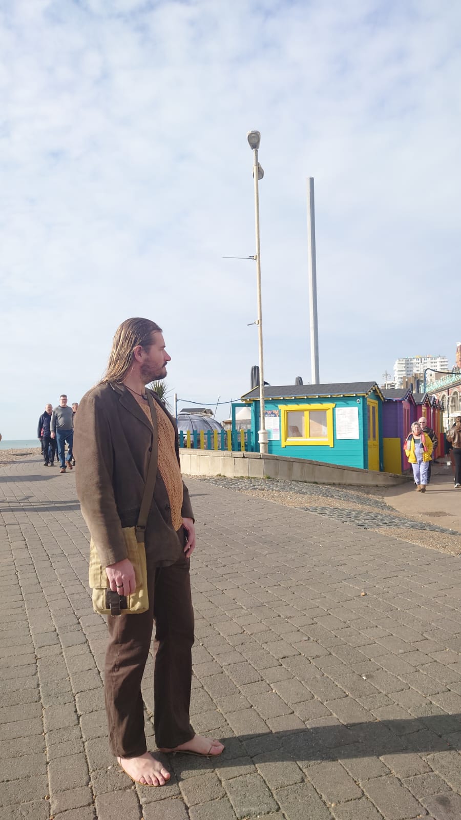 Wir schlendern entlang der Küste bis zu einer Residential Area namens Sussex Square. Nick Cave hat hier 20 Jahre lang gewohnt. Wir wollen schauen, was das heißt, hier ein 3,2 Millionen Pfund teures Objekt zu beziehen. Wir finden es nicht. Nur ein junger, androgyner Mann im Mary-Poppins-Kostüm mit verschleiertem Gesicht und Plateauschuhenkreuzt läuft uns über den Weg, die Augen starr an uns vorbei gerichtet geradeaus, verleiht seinem Antlitz Ernsthaftigkeit und Unnahbarkeit. Er fühlt sich bestimmt very special.