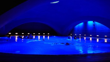 Ich beschließe meine Schwester noch etwas in die Irre zu führen. Wir steuern zum Tempodrom... und an ihm vorbei... zu einen Seiteneingang, dsr unter die Halle führt. Liquidrom verkündet ein Schild darüber. Eine urbane Grottentherme mit Sauna direkt im Kellergeschoss des Tempodroms. "Komm, wir entspannen erstmal!" Meine Schwester ist komplett verwirrt. Nach Berlin fahren für eine Therme? Nicht ganz, sage ich, und gebe ihr die Röyksoppkarten. Die Augen fliegen weit auf. Sigur Ros? Nein, ich meine.... ooooooh! Breites Grinsen. Ja genau, und das hier ist unsere Art von liquidem Loungebereich, bevor wir hoch- und abgehen.