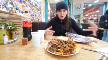 Erstmal einchecken im Three Little Pigs Hostel um die Ecke beim Lidl. Eine alte Klosteranlage bzw. ein Vinylbodenparadies der 60er Jahre, das dem Kex Hostel in Reykjavik Konkurrenz machen kann. Es ist 16 Uhr. Und jetzt? Fragendes Gesicht. Ich muss mir vorstellen, ich würde jetzt gar keinen Plan haben und nur sagen: "Guck mal: regnerisches Berlin im Winter. Freust du dich?" Das Gesicht möchte ich mal sehen. Aber so ist es ja nicht.