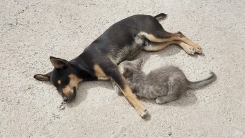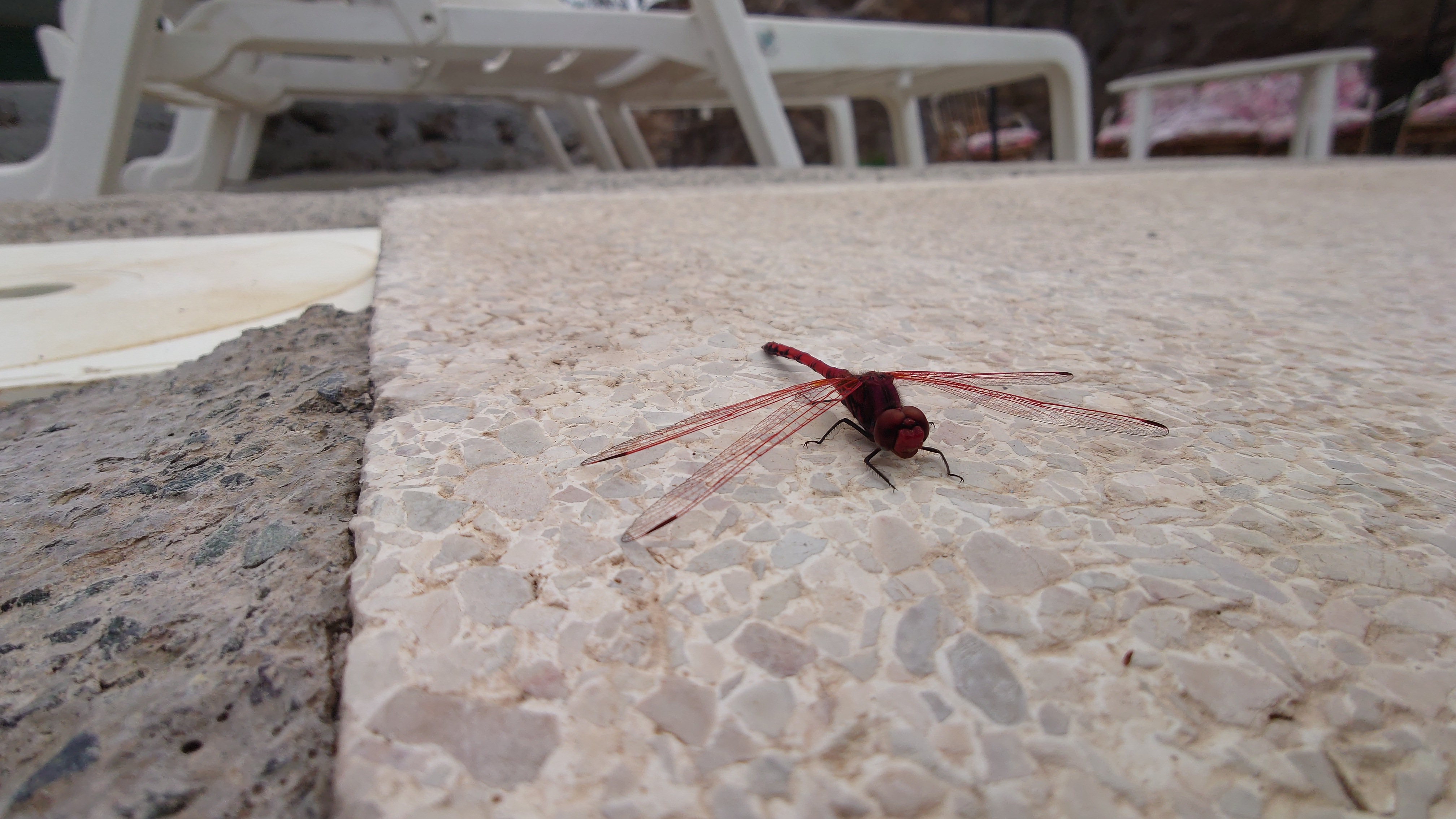 Meine heutige Unterkunft ist die bislang teuerste und liegt etwas außerhalb. Es war ein notwendiger Kompromiss, wenn ich heute nicht 40 Kilometer bis an die Küste rennen wollte. Das macht wenig Freunde, weiß ich. Also gönne ich mir das einzige Zwischenziel für gnadenlose 146 Euro. Was mich erwartet ist, gelinde gesagt, das Selbe wie gestern in Stein, nur für den fünffachen Preis. Mein Zimmer hat Pensionsniveau. Draußen blubbert ein Pool in der Farbe Waldmeister. Drumherum sind ausrangierte Sofas als Sitzgelegenheiten drapiert. Nikolas, der Besitzer, ist freundlich, aber ich weiß nicht recht, was ich sagen soll. Das muss ich sacken lassen. Für 40 Euro wäre das in Ordnung gewesen..Aber nicht für den Preis, der den des Parador Hotels bei Weitem überschreitet. Er muss wissen, dass er der Platzhirsch im Umkreis von 20 Kilometern ist, dass er sich das leistet. Ich bin selten undankbar. Aber das hier ist dreist. Fürs Internet hat er sein Anwesen ordentlich geputzt... und danach wohl nie wieder. Am Pool liegt ein kleiner Hund. Ein junges Kätzchen versucht Milch an ihr zu saugen. Das wird wohl nicht funktionieren. Alles wirkt hier irgendwie falsch.