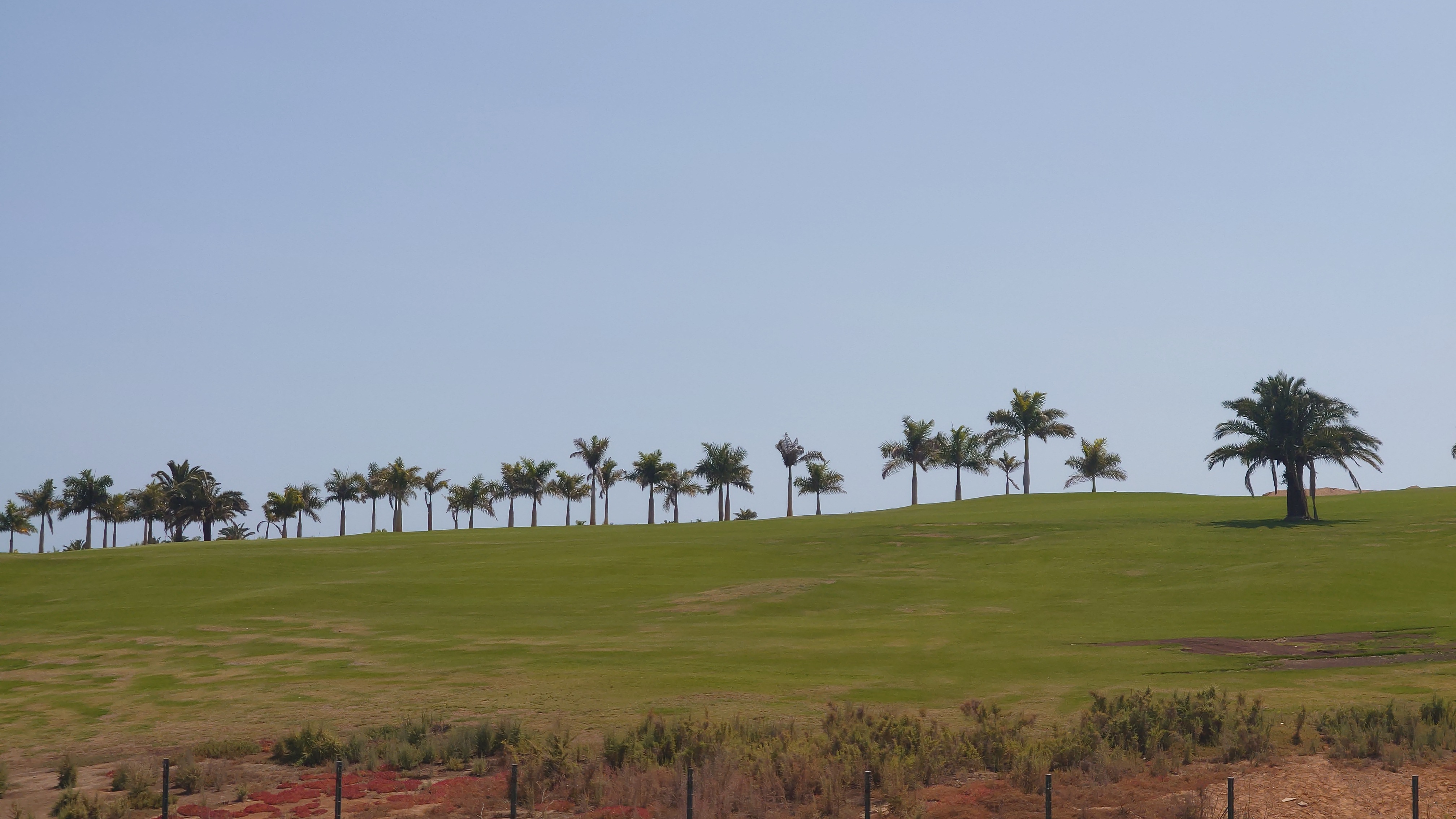 Weitere 8 Kilometer später erreiche ich einen gewaltigen Golfklub. Mit einem Schlag sind die Hänge grün. Was muss das für ein CO2-Abdruck sein, den diese Anlage erzeugt. Gras würde hier niemals von selbst gedeihen.