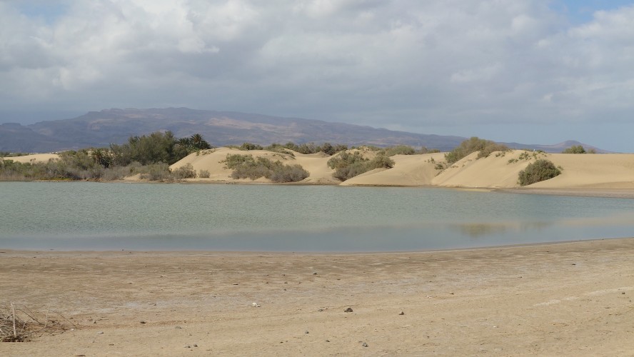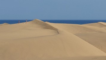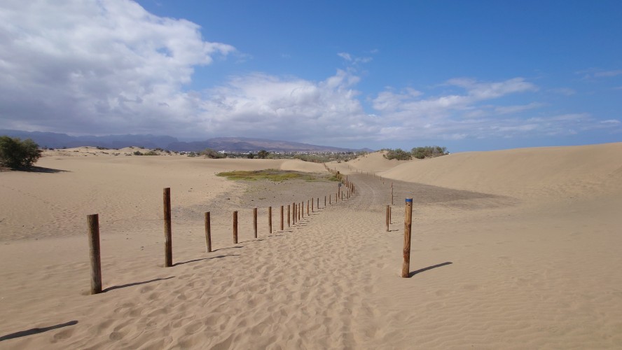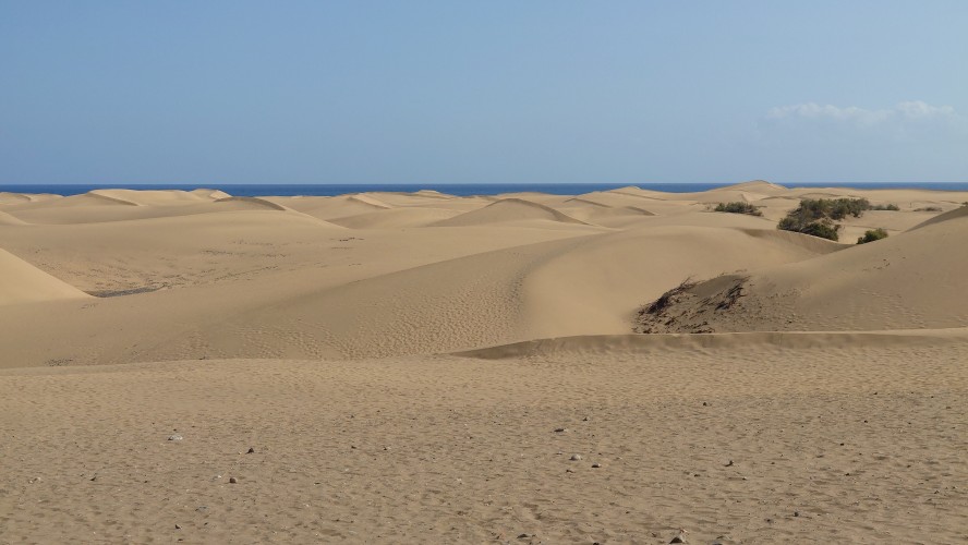 Der Leuchtturm der Südspitze taucht auf. Hier endet auch der GR 131 von Agaete. Direkt dahinter beginnt eine großflächige Wüstenlandschaft und ein gewaltiger, weißer Sandstrand. Das muss alles Saharasand sein, der sich hier im äußersten Süden zu formvollendeten Wanderdünen auftürmt. Es wird heiß und das erste Mal in diesem Urlaub geht mein Wasser zur Neige. Egal. An Supermärkten mangelt es hier unten nicht. Also durchquere ich in der Diagonalen die Wüste. Es ist ein Vogelschutzgebiet. Doch anstatt, dass das Areal dahingehend respektiert wird, entdecke ich überall nackte Sonnenanbeter im Gebüsch, die die halbwegs abgeschiedene Atmosphäre dafür auszunutzen, nahtlos durchzubräunen. Es sind nur Männer. Auffällig viele Männerpärchen. Hmm... Vielleicht ist das eher ein Vögelschutzgebiet.