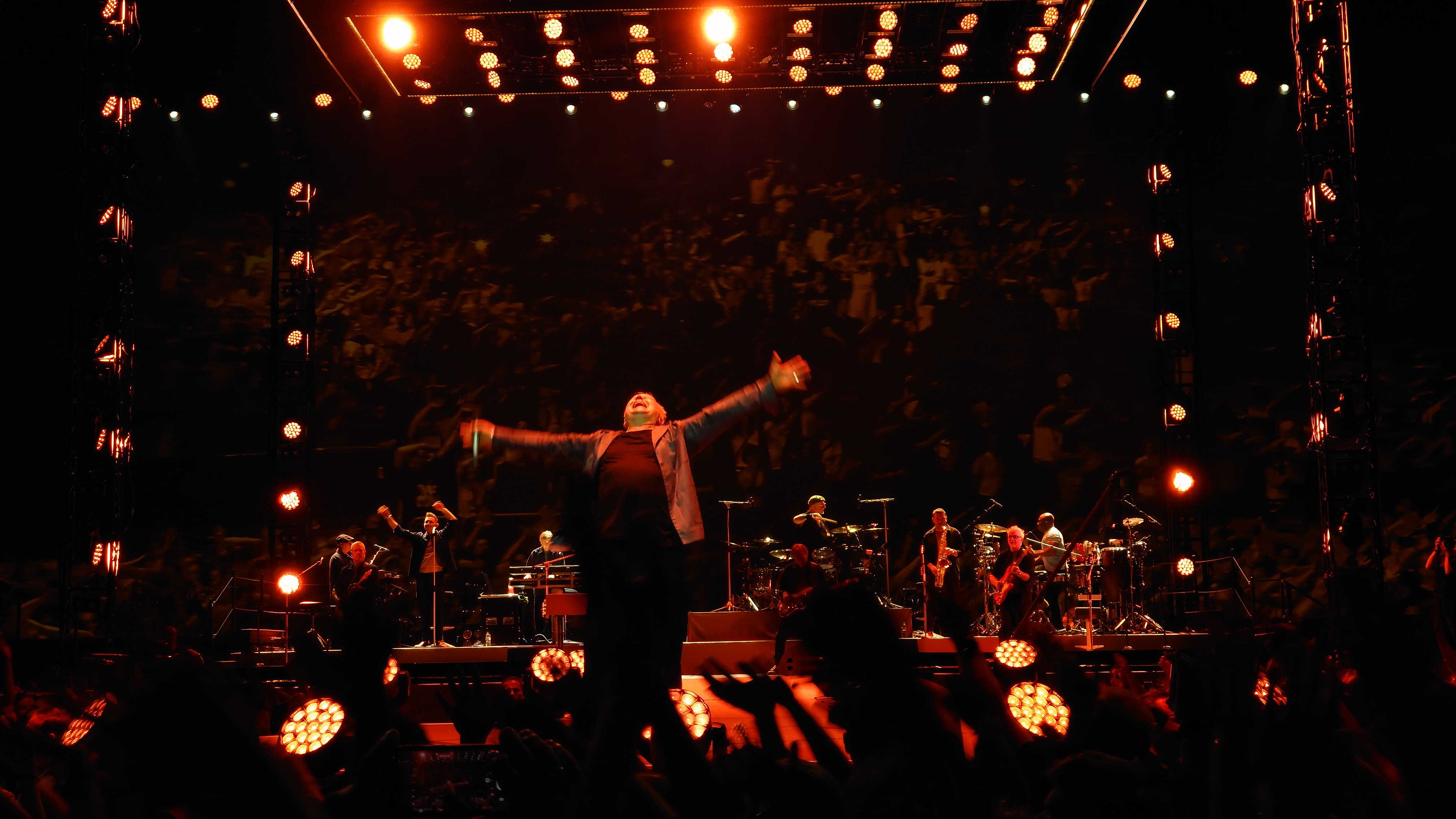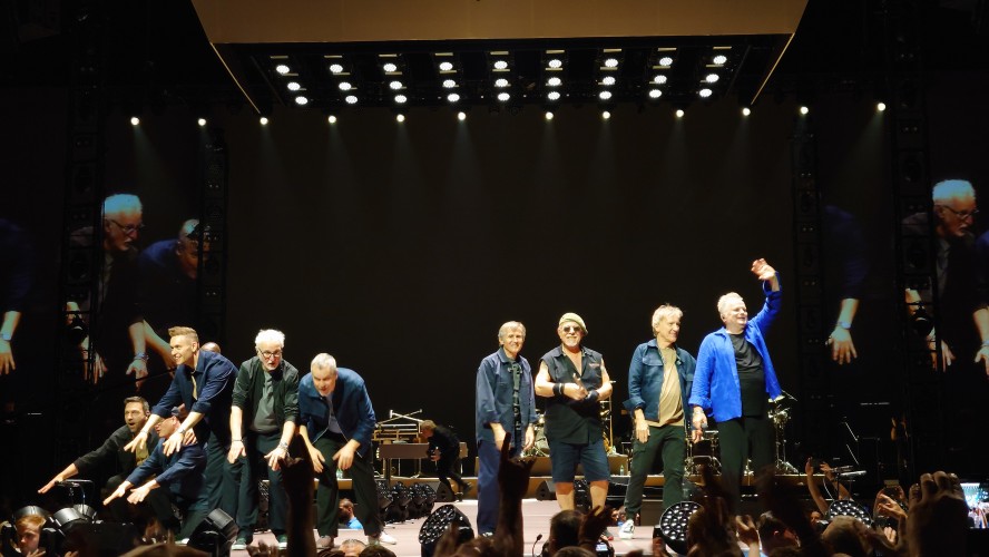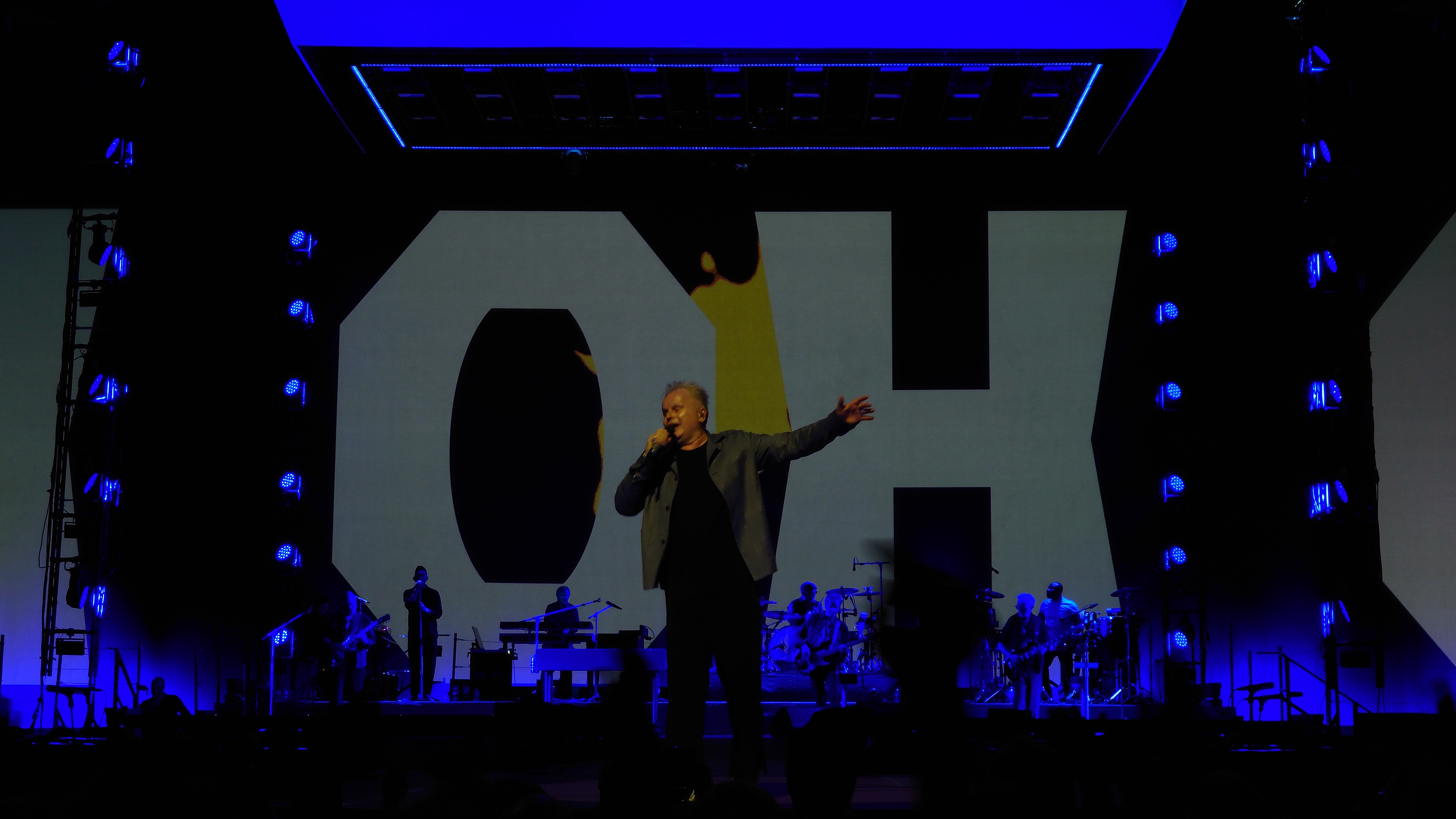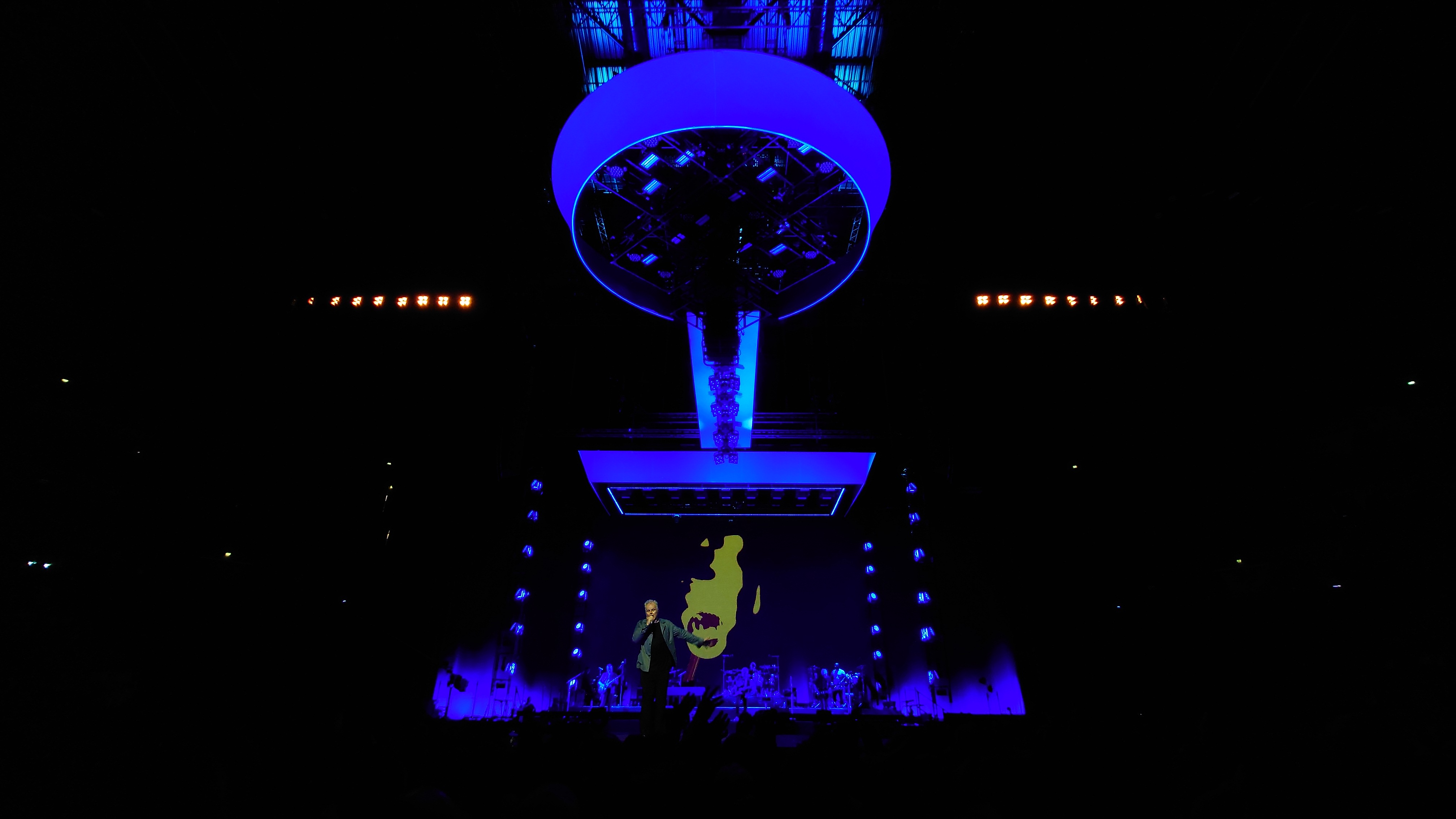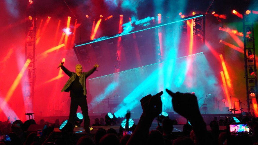 Markus und ich beenden meine Reise gemeinsam in Köln mit Herbert Grönemeyer, der passend am Folgetag nach meiner Landung aufspielt. Ich vertreibe mir noch die Zeit in der Claudius Therme. Meine Glieder brauchen jetzt ausgiebig Wellness und der Tempel unterhalb der Rheinseilbahn ist perfekt, um auf Markus zu warten. Wir arbeiten uns langsam hoch. Pet Shop Boys letztes Jahr waren gesponsert von WDR 4, heute wird's WDR 2. Wir werden jünger. Herbert anscheinend auch. Als ich vor einem Monat in Berlin Grönemeyer beim Zeit Online Podcast Festival vor ein paar hundert Besuchern beim Erzählen zuhörte, was er so am Wochenende macht, wirkte er zehn Jahre älter als jetzt in der Arena vor 18.000 Leuten. Dass der Kerl 67 ist, ist erstaunlich. Die Bühnenpräsenz ist enorm. Generationen jeden Alters feiern ihn und kaum ein Lied der dreistündigen Performance kann nicht komplett mitgesungen werden. Viel machdn müsste der Künstler selbst nicht mehr, nur das Mikro in die Halle halten. Der Rest kommt von allein. Alle sind da, nur wegen ihm. Das ist für beide Seiten beeindruckend. Warum funktioniert der Mensch so gut? Ich kenne ketzt zwei Seiten von ihm: eine Persönliche im kleinen Rahmen, eine ebenso Persönliche im gigantischen Rahmen einer Arena. Ich glaube, das Geheimnis ist, dass beide Persönlichkeiten kongruent sind und nahbar. Manchmal habe ich das Gefühl, man darf solche Konzerte nicht zu nah erleben, sonst geht die Aura des Unnahmbaren und damit der Reiz flöten. Hier ist das nicht so. Es klingt wie heim Fußballheimspiel inklusive "Oh, wie ist sas schön"-Gesängen. Ich bin ziemlich platt ob der Bühnenpräsenz und frage mich, ob der Mensch sich nicht manchmal vor sich selber erschrickt. "Die sind alle nur wegen mir hier". Mancht das stolz oder demütig? Er jedenfalls zeigt an dem Abend, dass wir etwas Besonderes zu sein scheinen und spielt ne ganze Schubkarre voller eher ungeplanter Zugaben. Currywurst gibt's auch, sowie eine Verion von "Der Mond ist aufgegangen", die man gut erträgt, wenn die Zeit reif fürs Bett ist.