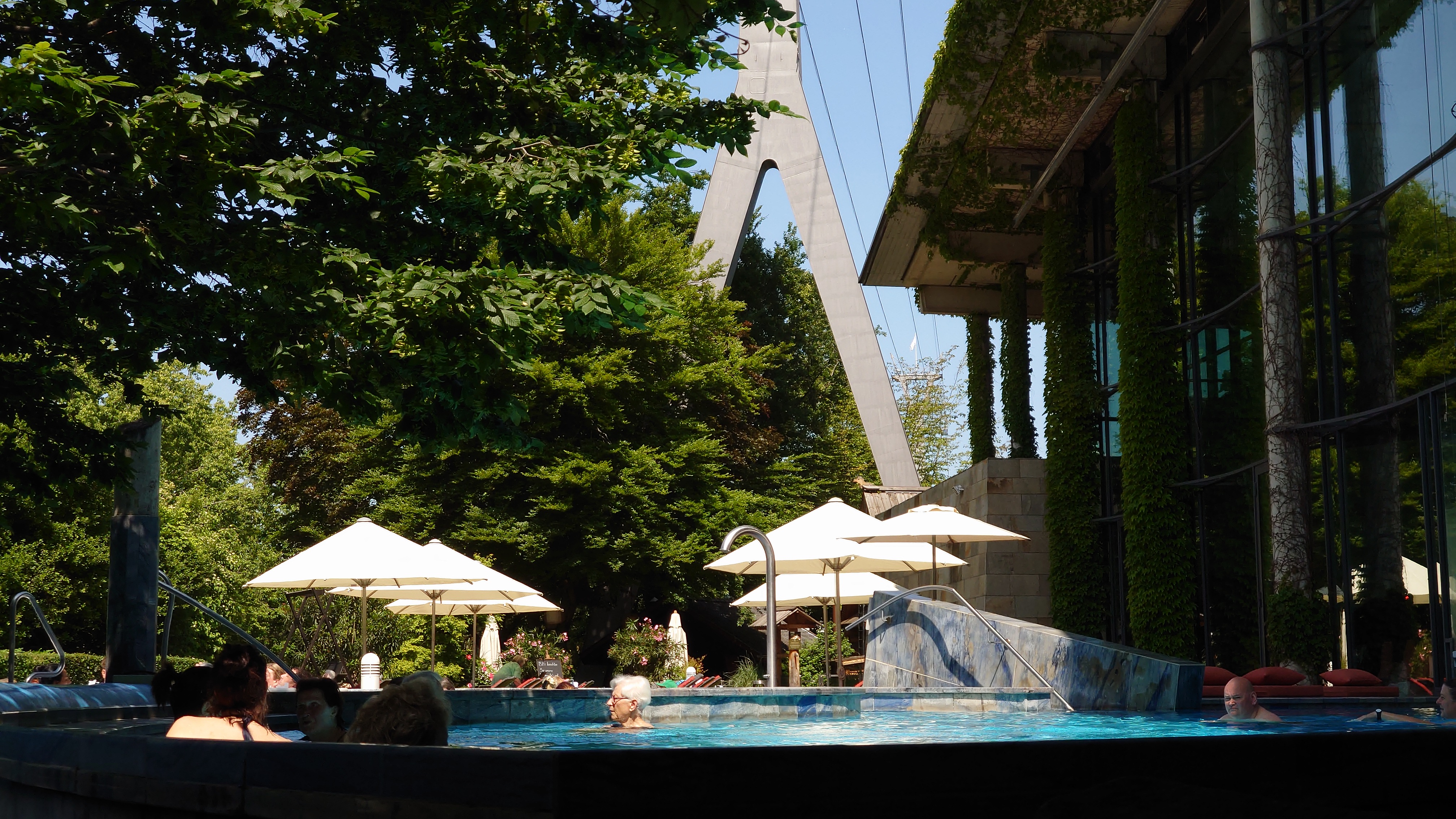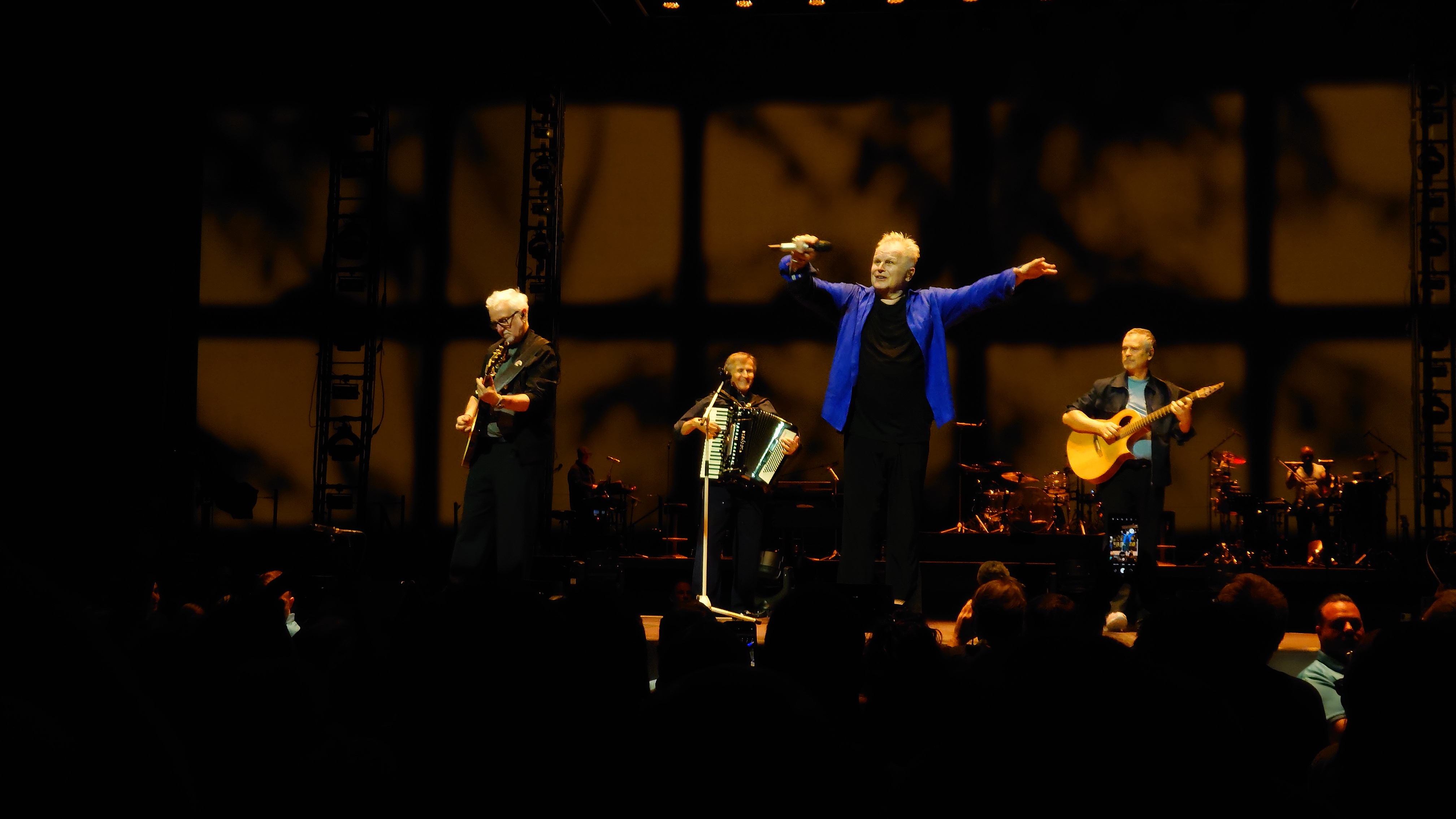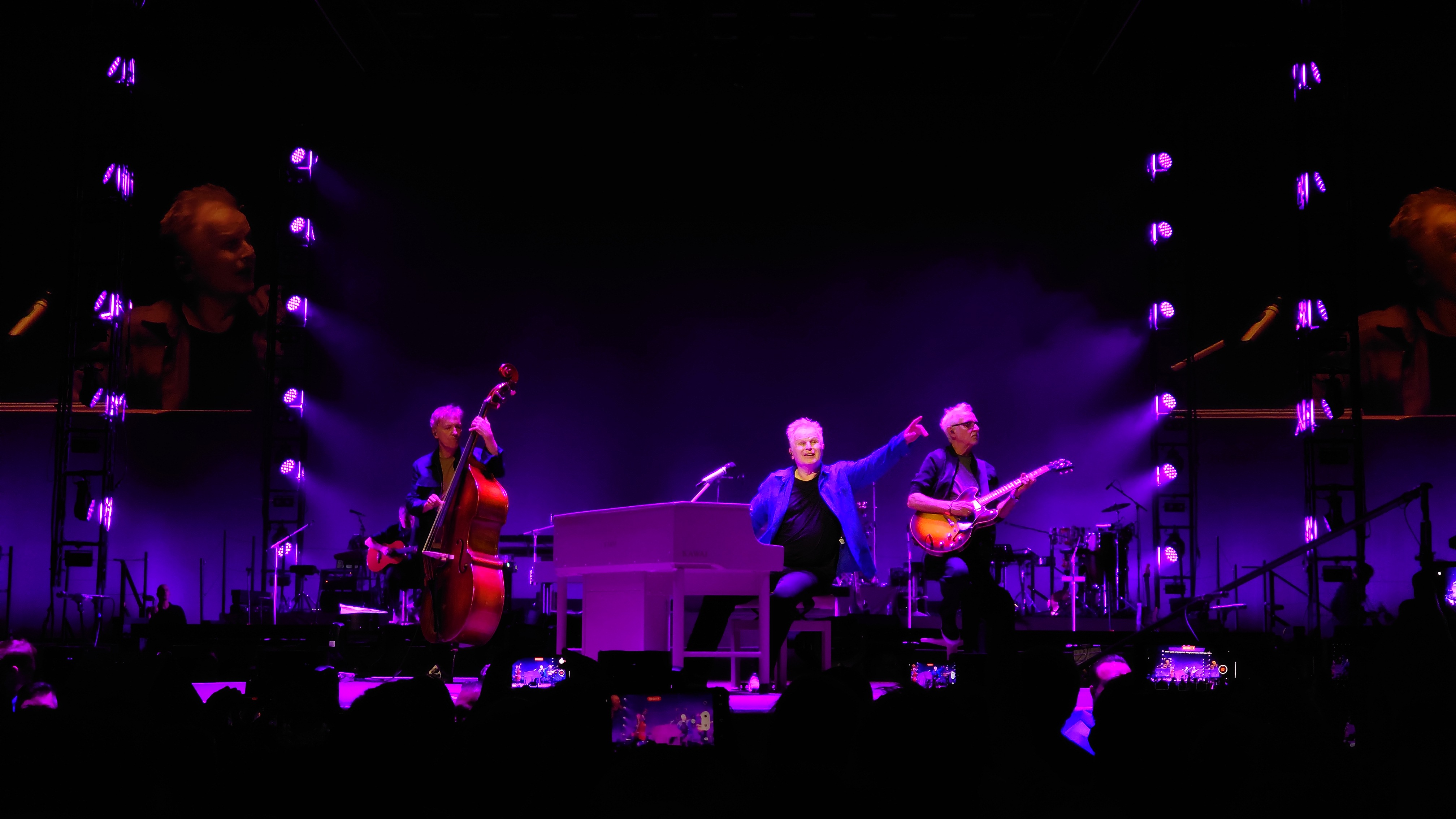 Markus und ich beenden meine Reise gemeinsam in Köln mit Herbert Grönemeyer, der passend am Folgetag nach meiner Landung aufspielt. Ich vertreibe mir noch die Zeit in der Claudius Therme. Meine Glieder brauchen jetzt ausgiebig Wellness und der Tempel unterhalb der Rheinseilbahn ist perfekt, um auf Markus zu warten. Wir arbeiten uns langsam hoch. Pet Shop Boys letztes Jahr waren gesponsert von WDR 4, heute wird's WDR 2. Wir werden jünger. Herbert anscheinend auch. Als ich vor einem Monat in Berlin Grönemeyer beim Zeit Online Podcast Festival vor ein paar hundert Besuchern beim Erzählen zuhörte, was er so am Wochenende macht, wirkte er zehn Jahre älter als jetzt in der Arena vor 18.000 Leuten. Dass der Kerl 67 ist, ist erstaunlich. Die Bühnenpräsenz ist enorm. Generationen jeden Alters feiern ihn und kaum ein Lied der dreistündigen Performance kann nicht komplett mitgesungen werden. Viel machdn müsste der Künstler selbst nicht mehr, nur das Mikro in die Halle halten. Der Rest kommt von allein. Alle sind da, nur wegen ihm. Das ist für beide Seiten beeindruckend. Warum funktioniert der Mensch so gut? Ich kenne ketzt zwei Seiten von ihm: eine Persönliche im kleinen Rahmen, eine ebenso Persönliche im gigantischen Rahmen einer Arena. Ich glaube, das Geheimnis ist, dass beide Persönlichkeiten kongruent sind und nahbar. Manchmal habe ich das Gefühl, man darf solche Konzerte nicht zu nah erleben, sonst geht die Aura des Unnahmbaren und damit der Reiz flöten. Hier ist das nicht so. Es klingt wie heim Fußballheimspiel inklusive "Oh, wie ist sas schön"-Gesängen. Ich bin ziemlich platt ob der Bühnenpräsenz und frage mich, ob der Mensch sich nicht manchmal vor sich selber erschrickt. "Die sind alle nur wegen mir hier". Mancht das stolz oder demütig? Er jedenfalls zeigt an dem Abend, dass wir etwas Besonderes zu sein scheinen und spielt ne ganze Schubkarre voller eher ungeplanter Zugaben. Currywurst gibt's auch, sowie eine Verion von "Der Mond ist aufgegangen", die man gut erträgt, wenn die Zeit reif fürs Bett ist.