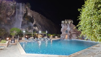 Irgendwann bin ich dann mit irgend einem Zug doch im Terminal angekommen und tue erstmal so, als wüsste ich nichts. Yaser, mein jordanischer "Freund" vom letzten Jahr schickt mir per WhatsApp schon ein Foto eines Papierschildes, das er am Flughafen hochhalten will, wenn ich komme, Wenn, dann wird das eher in der Nacht sein. Es stört ihn nicht, sagt er. Er fährt mich hinunter zu den heißen Quellen von Ma'in, wo ich den Weg morgen wieder aufnehmen will.
