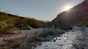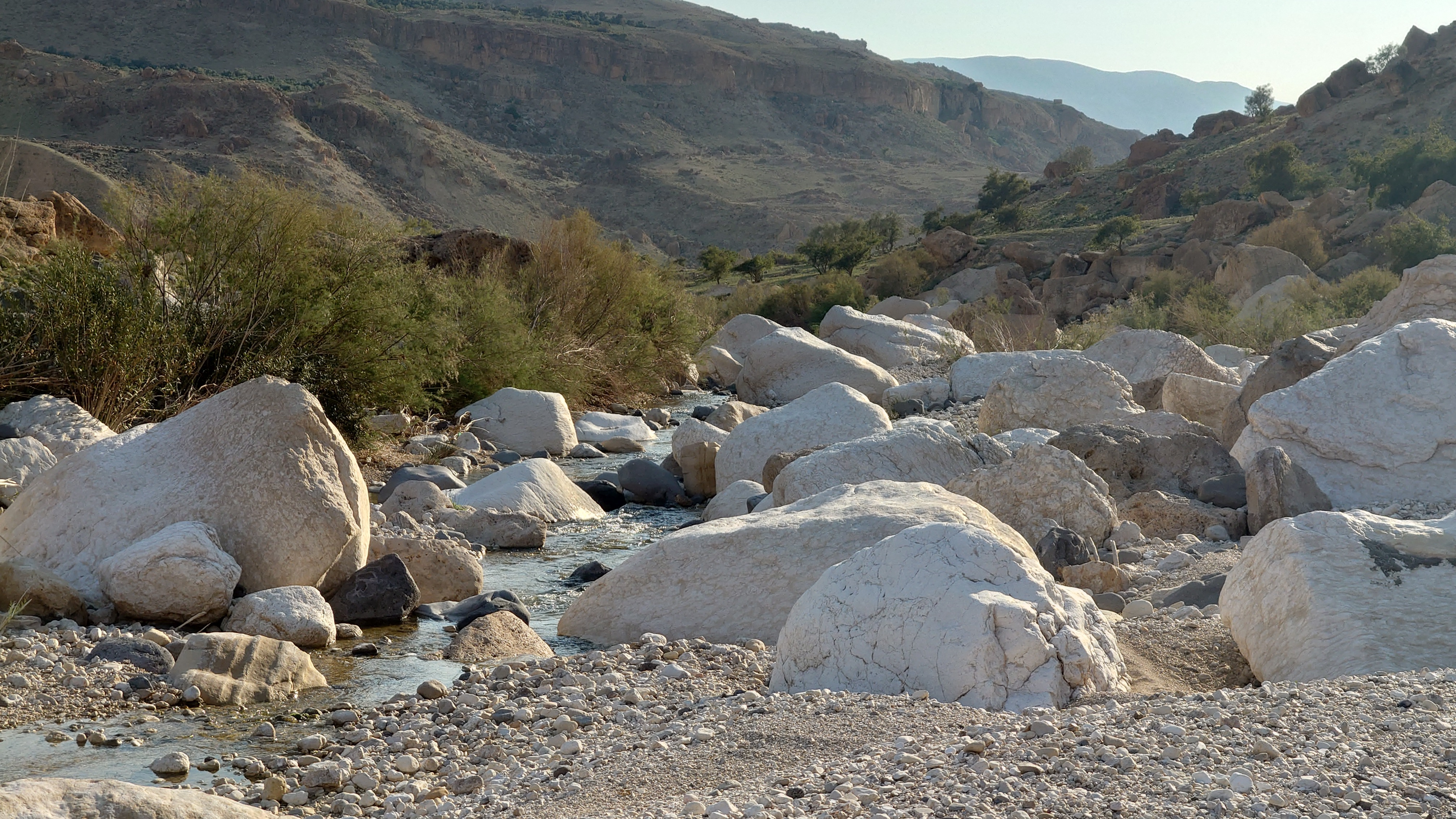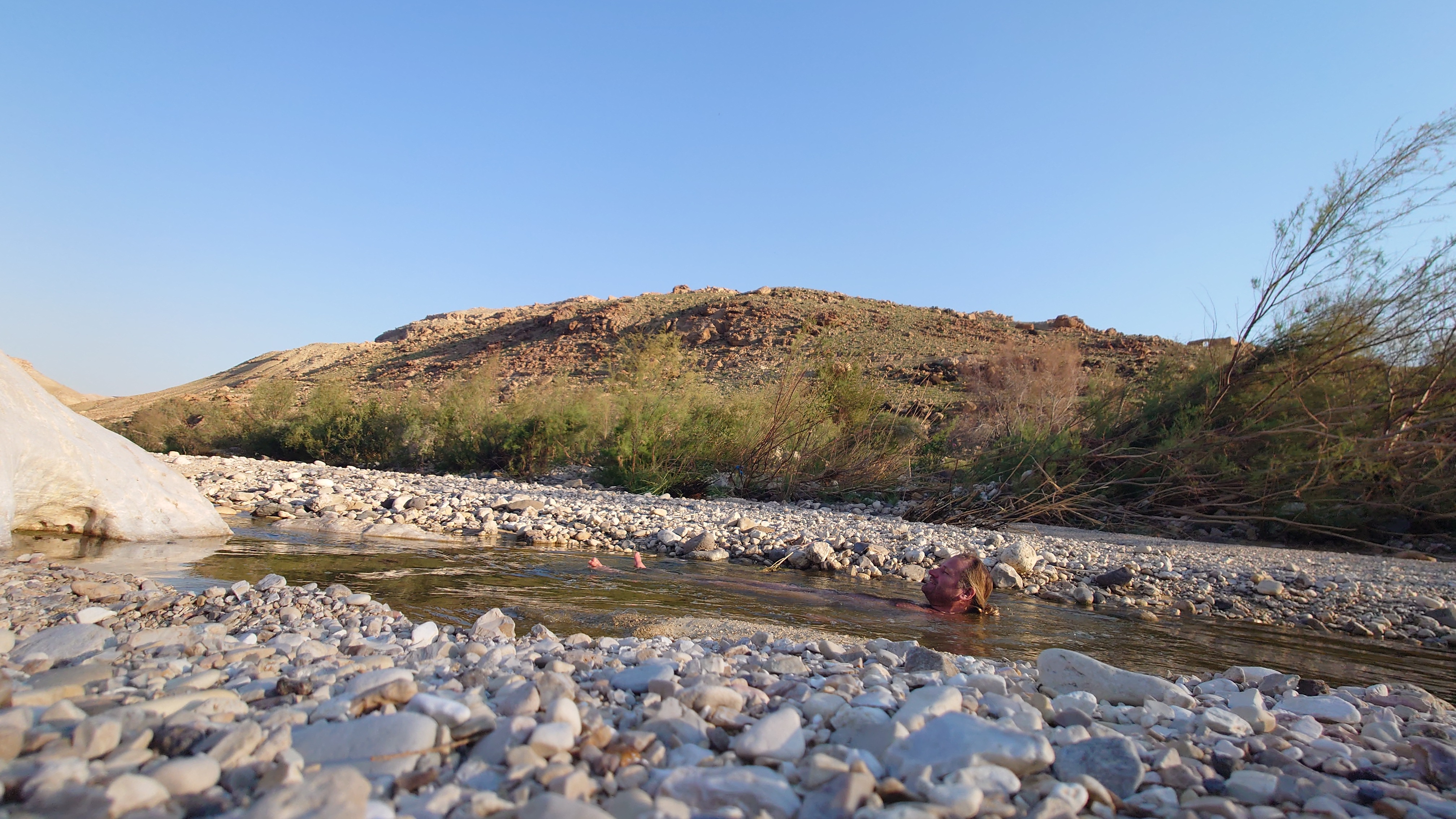 Wadi Murjib kenne ich schon vom letzten Jahr. Da bin ich von der entgegengesetzten Seite durch die Mündung zum toten Meer hin eingestiegen und die Wasserfälle hinauf geklettert. Hier oben ist es ein glasklarer Fluss, in dem weiße Kalkfelsen liegen wie Seerobben. Vor den Gebilden sind durch die Verwirbelungen kleine Pools entstanden. Rings herum sind weiche Sandbänke entstanden. Bis zu meinem Ziel ist es noch 600 Meter, aber das hier ist einfach zu herrlich. Ich bleibe genau hier und schlage mein Zeit auf. Und dann baden. Boaaaah das ist einfach sehr befriedigend, sauber zu werden. Aber die Sonne versinkt schon hinter den Schluchthängen. Also noch schnell Klamotten waschen, bevor es wieder kalt wird. Ich freue mich richtig auf mein kleines Zu Hause jetzt. Ein tolles Gefühl, alles, was man braucht, auf dem Rücken zu haben und nachts darin zu verschwinden wie eine Schildkröte. Und dann noch an einem so herrlichen Platz. Daran könnte ich mich gewöhnen.
