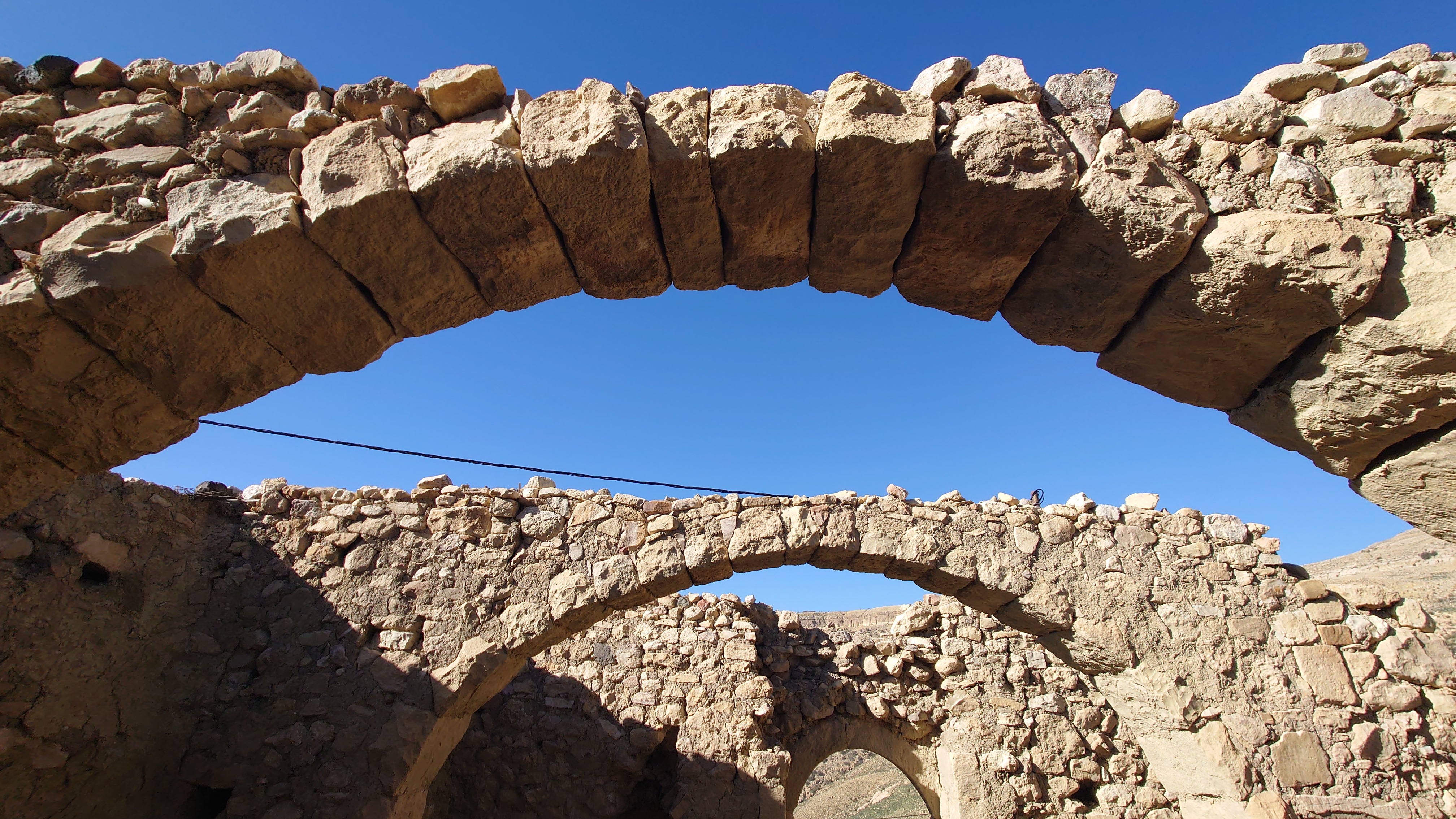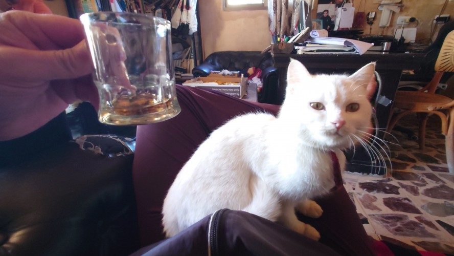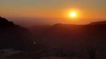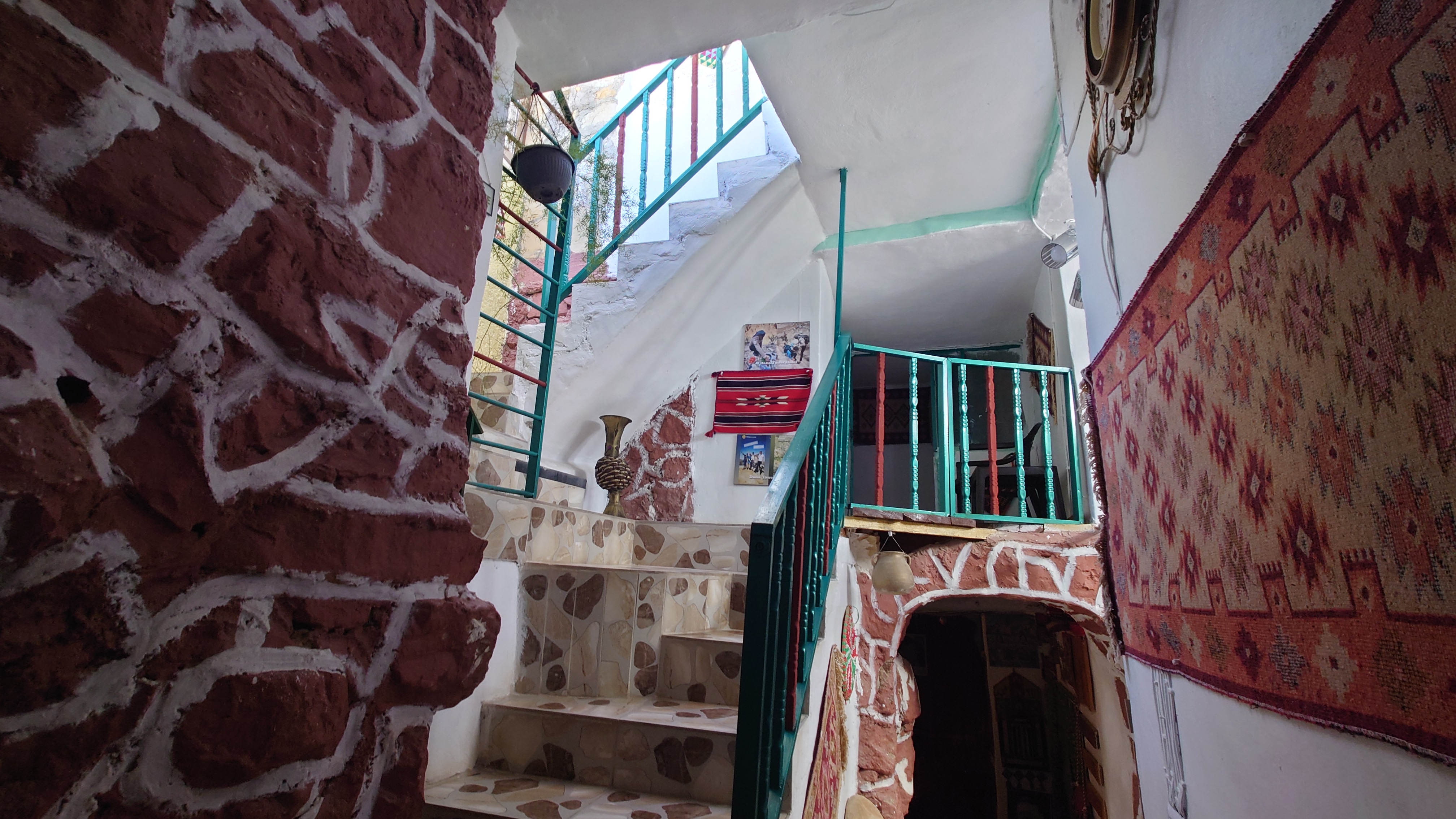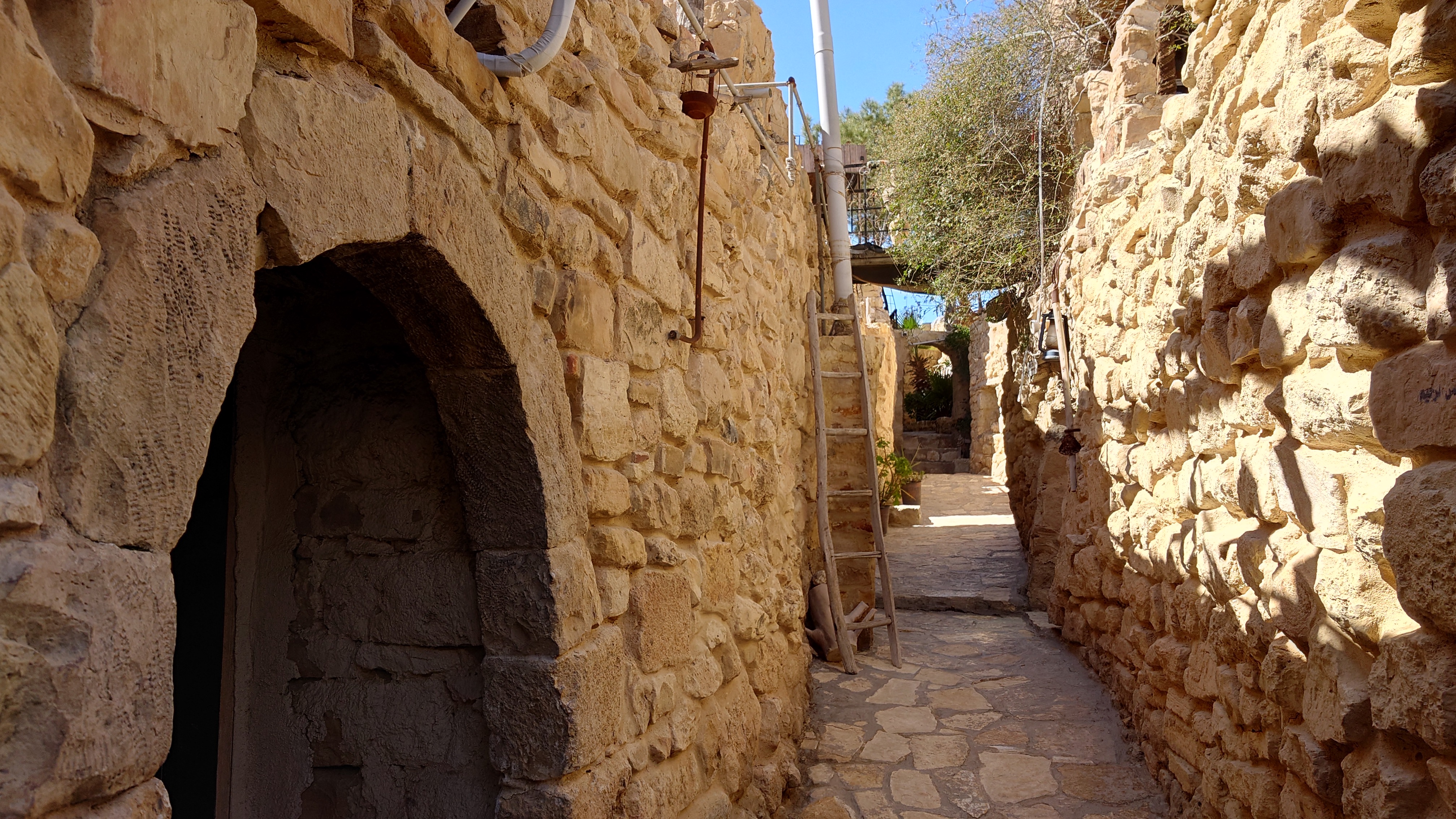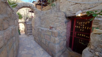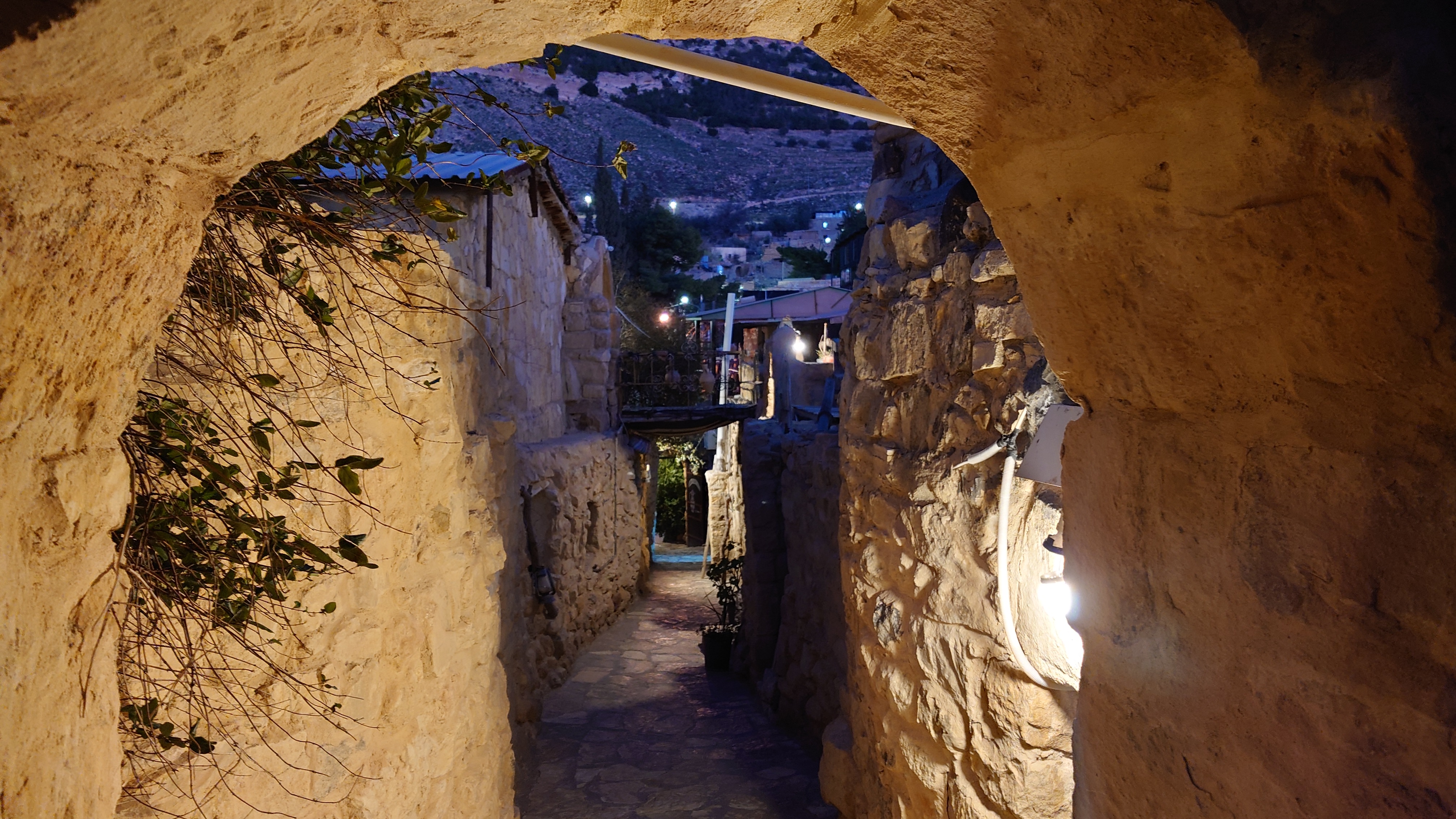 Der Ort ist relativ verlassen, besteht aber fast ausschließlich aus Fremdenunterkünften. Hiér ist an wärmeren Tagen - bzw. wenn gerade kein Krieg ist - sicherlich viel Wandertourismus. Ich habe mich für gnadenlose 10 JD ist Dana Tower Hotel eingebucht. Es ist ein Klötzchenwirrwar aus Mini-Zimmerchen, die man über schmale Treppen und Leitern erreicht. Auch ein Turmzimmer gibt mit Blick auf das imposante Tal. Tatsächlich bin ich nicht der einzige Gast heute.