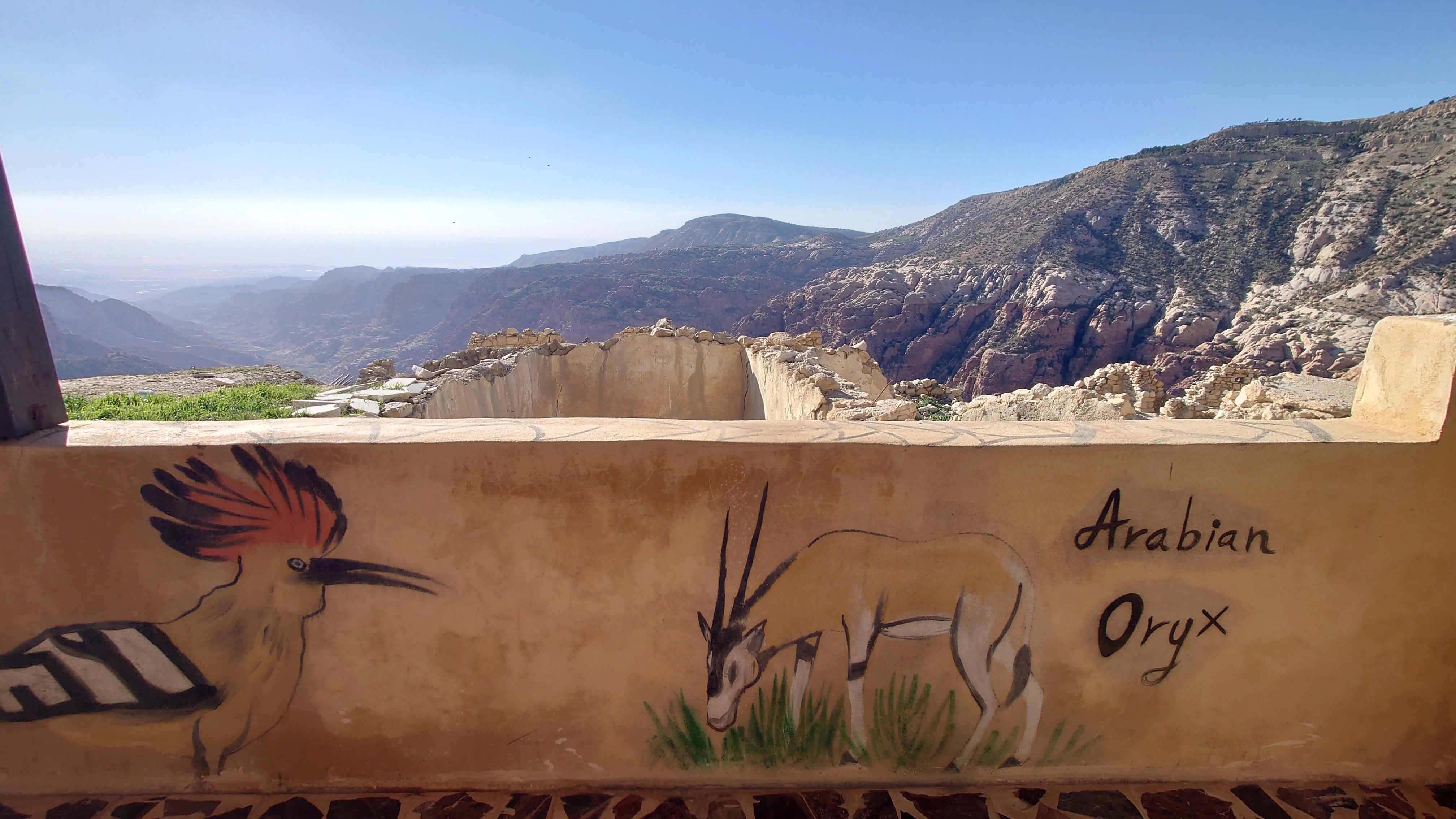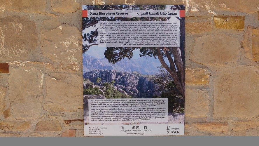 Danach besuche ich das hiesige Visitors Center des Dana Reservats, das diesmal deutlich professioneller geführt ist und auch geöffnet hat. Ich erfahre, dass Wadi Dana eine einzigartige Biosphäre ist mit vier unterschiedlichen Zonen und hunderten Arten, von denen drei sogar endemisch sind. Boah ich würde da so gerne rein. Ein Blick auf den Trail zeigt, dass die morgige Strecke tatsächlich lang und 1000 Meter abwärts hindurchführt. Genial. Eigentlich müsste ich eine Gebühr dafür zahlen. Weil ich aber den Trailpass habe, darf ich einfach so hinein.