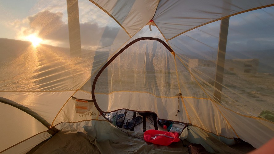 Das Abendessen hat Selma gekocht. Sie ist Köchin aus Bangladesch und vor 8 Jahren mit 20 ausgewandert, um hier ihr Glück zu suchen. Sie kocht für drei. Neben mir wohnt ein Ehepaar. Wolfram und Iris aus Chemnitz hat das selbe Schicksal wie mich ereilt. Sie sind am 27.2. aus Frankfurt angereist. Da war der Luftraum über Israel noch geöffnet. Jetzt sind sie ebenfalls hier, allerdings mit Mietwagen und nehmen es gelassen. Beim Essen kommen wir lange ins Gespräch. Sie sind beide Rentner und gut dabei, Sie bleiben mehrere Tage in Dana als Basislager und gehen viele Tagestouren von hier aus. Seit sie jung waren erwandern sie,.was geht. Ich nehme mir die beiden zum Vorbild. Wenn ich so drauf bin mit 60, dann ist alles gut. Sie verraten mir, dass es an meinem morgigen Zielort eine antike Kupfermine geben soll.
