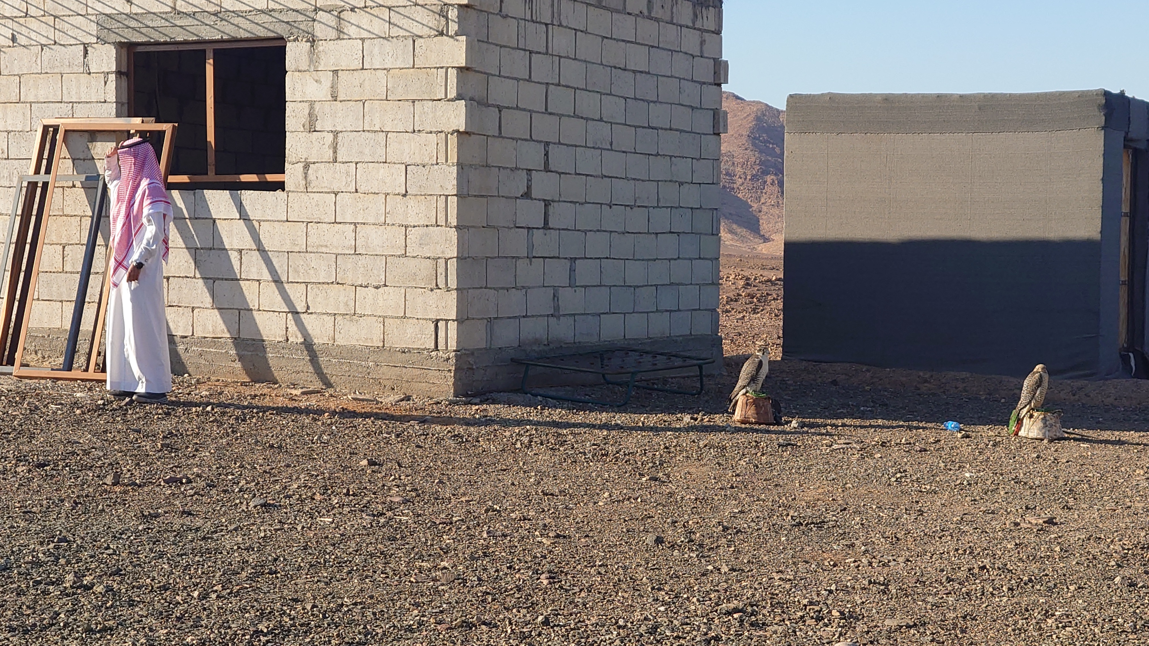 Wir verabschieden uns und ich mache mich auf den Weg. Die Jordanier kommen gerade auch aus ihren Würfeln und drapieren ihre Vögel. Scheint wohl ein Volkssport zu sein.